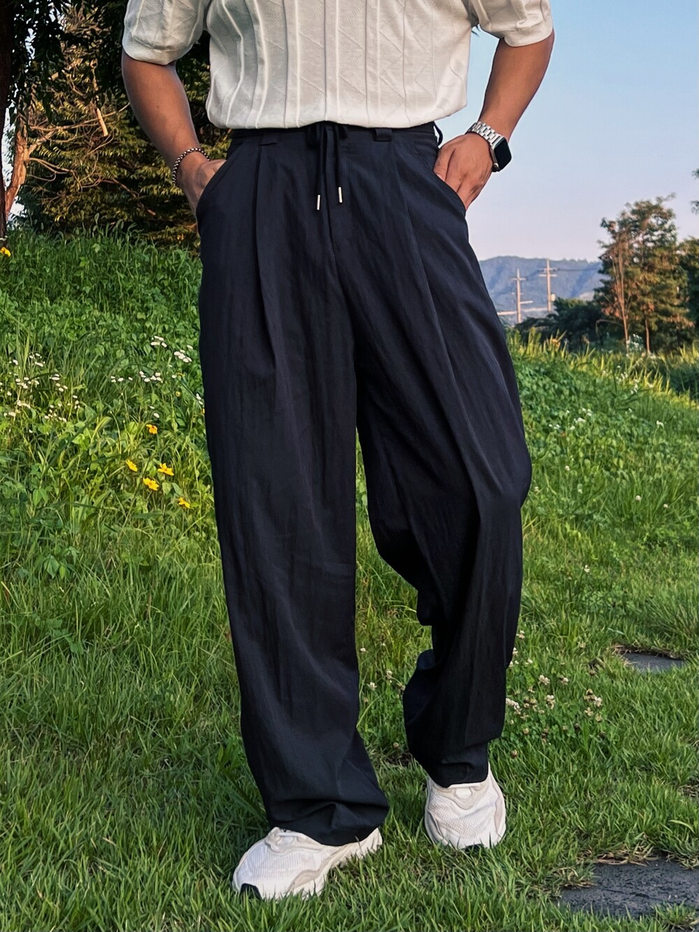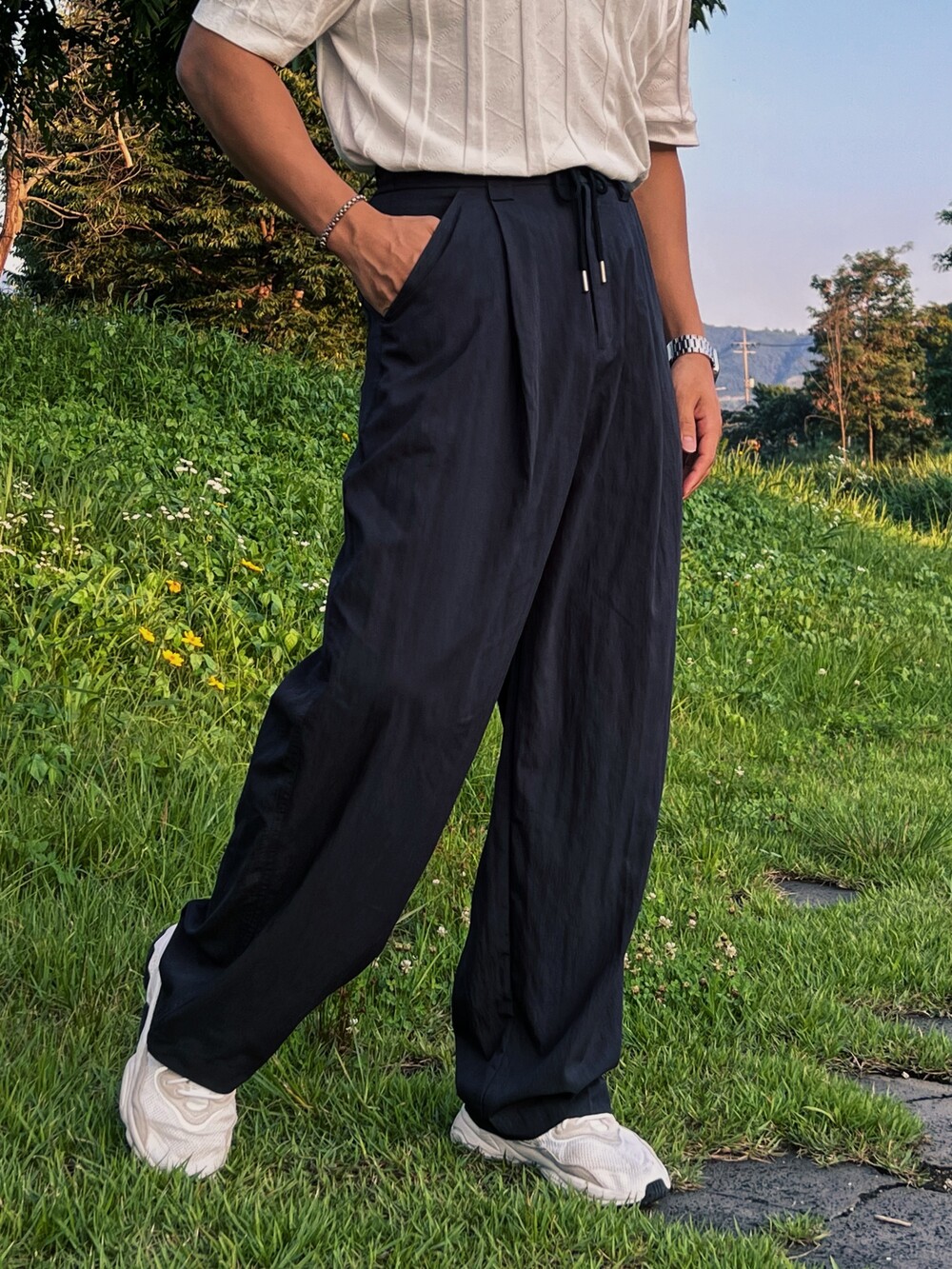 M _ 총장 107cm l 허리 30-40cm l 허벅지 29cm l 밑단 23cm