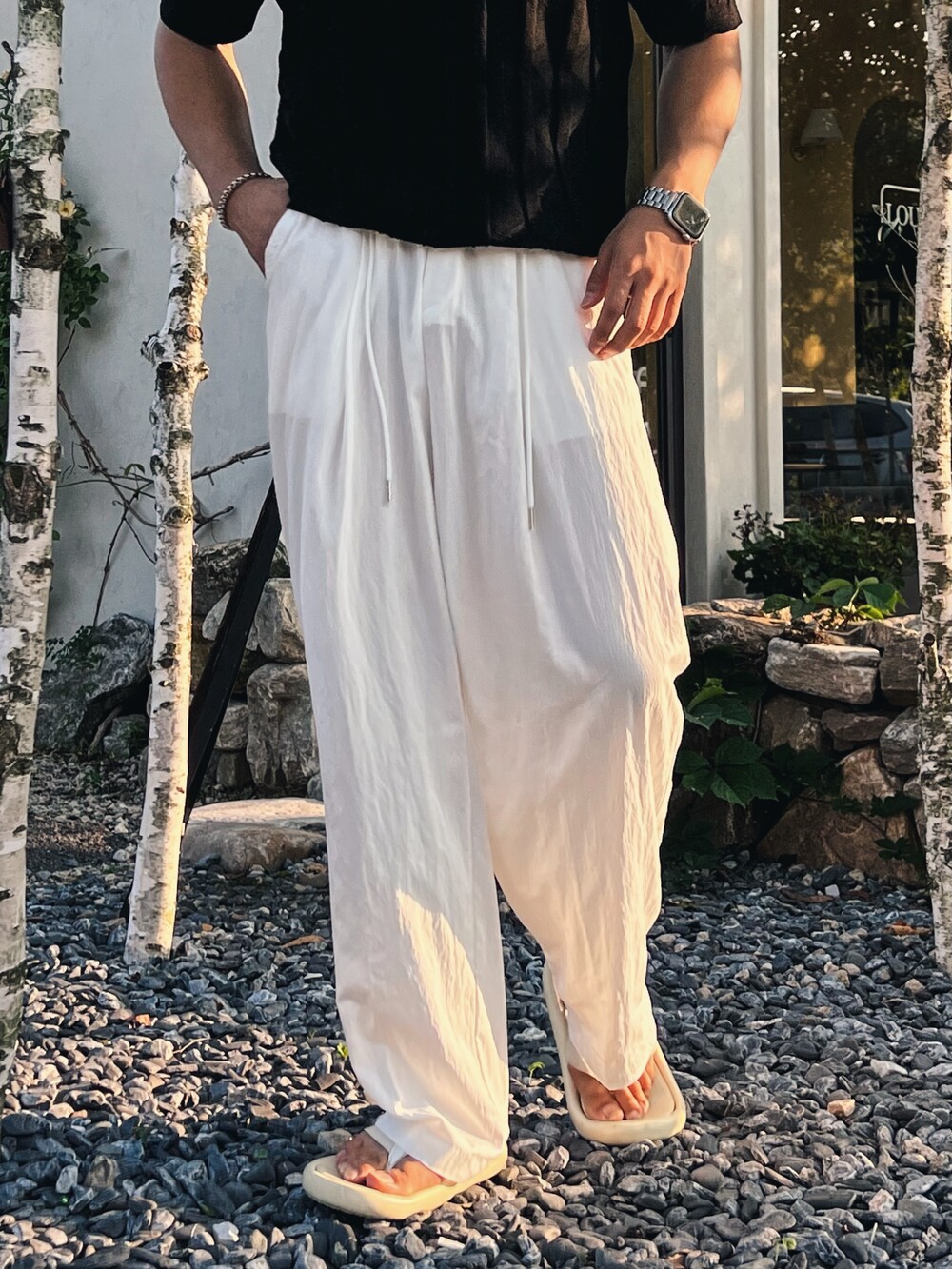 reference _ 두께 얇음 / 신축성 살짝 / 안감 없음 / 비침 없음 / 촉감 좋음