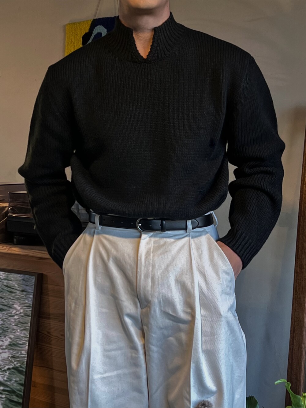 [Tomtyler] Wool Half Pollar Vneck Knit [2color]