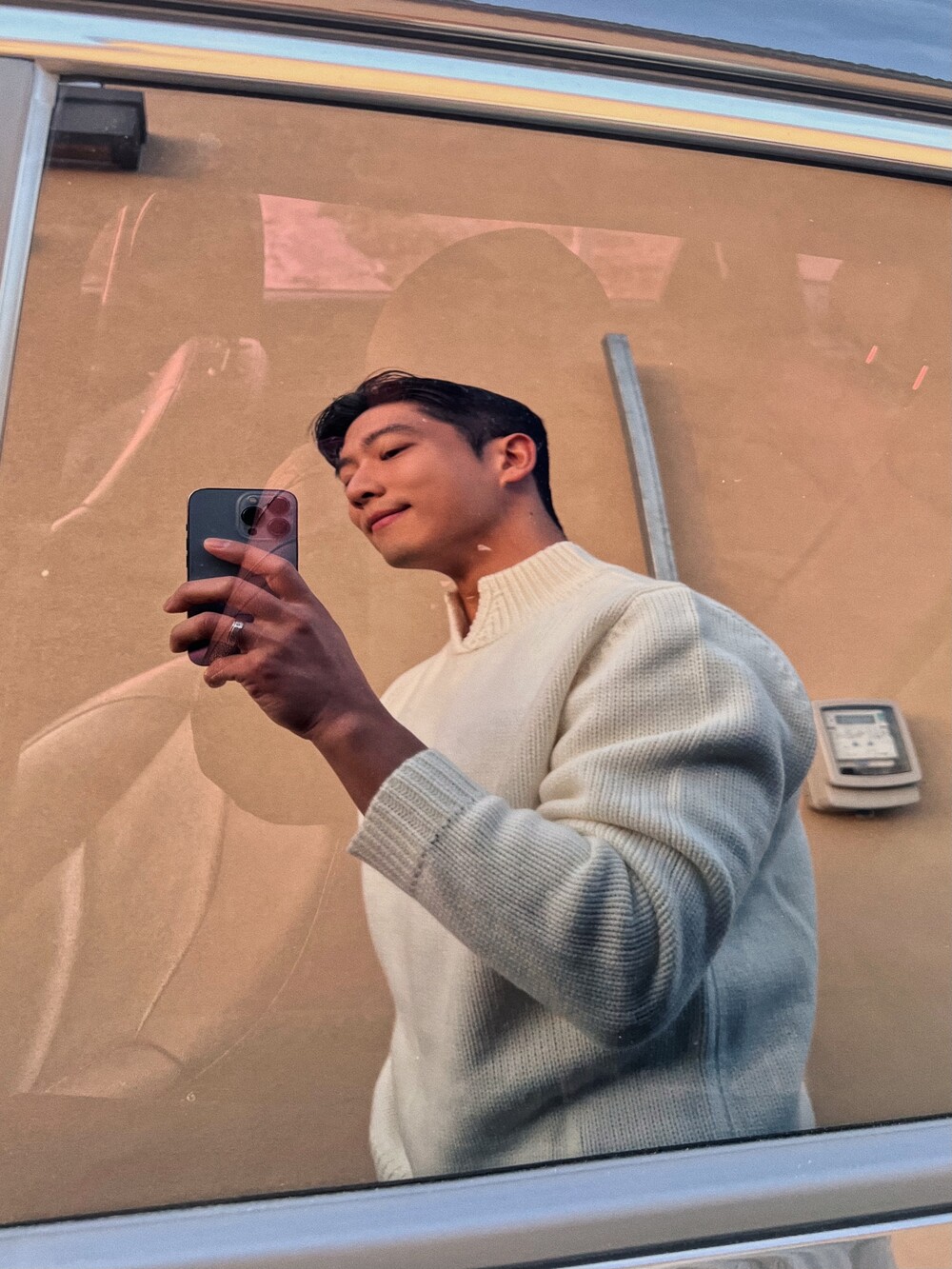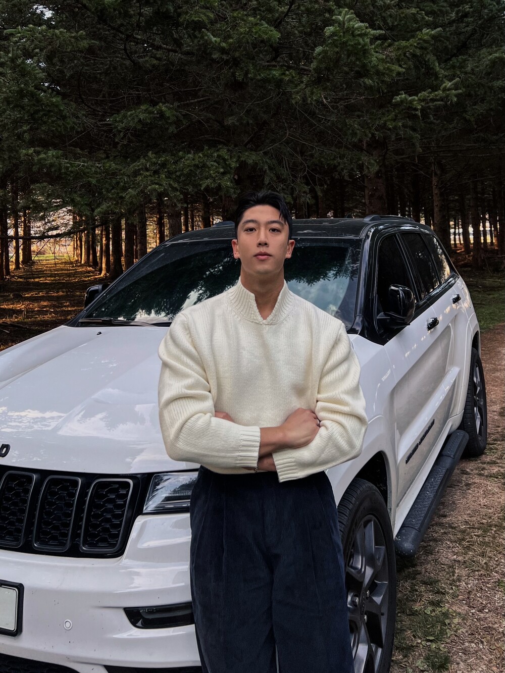 - 반폴라 넥 부분 절개로 브이넥 마감 포인트