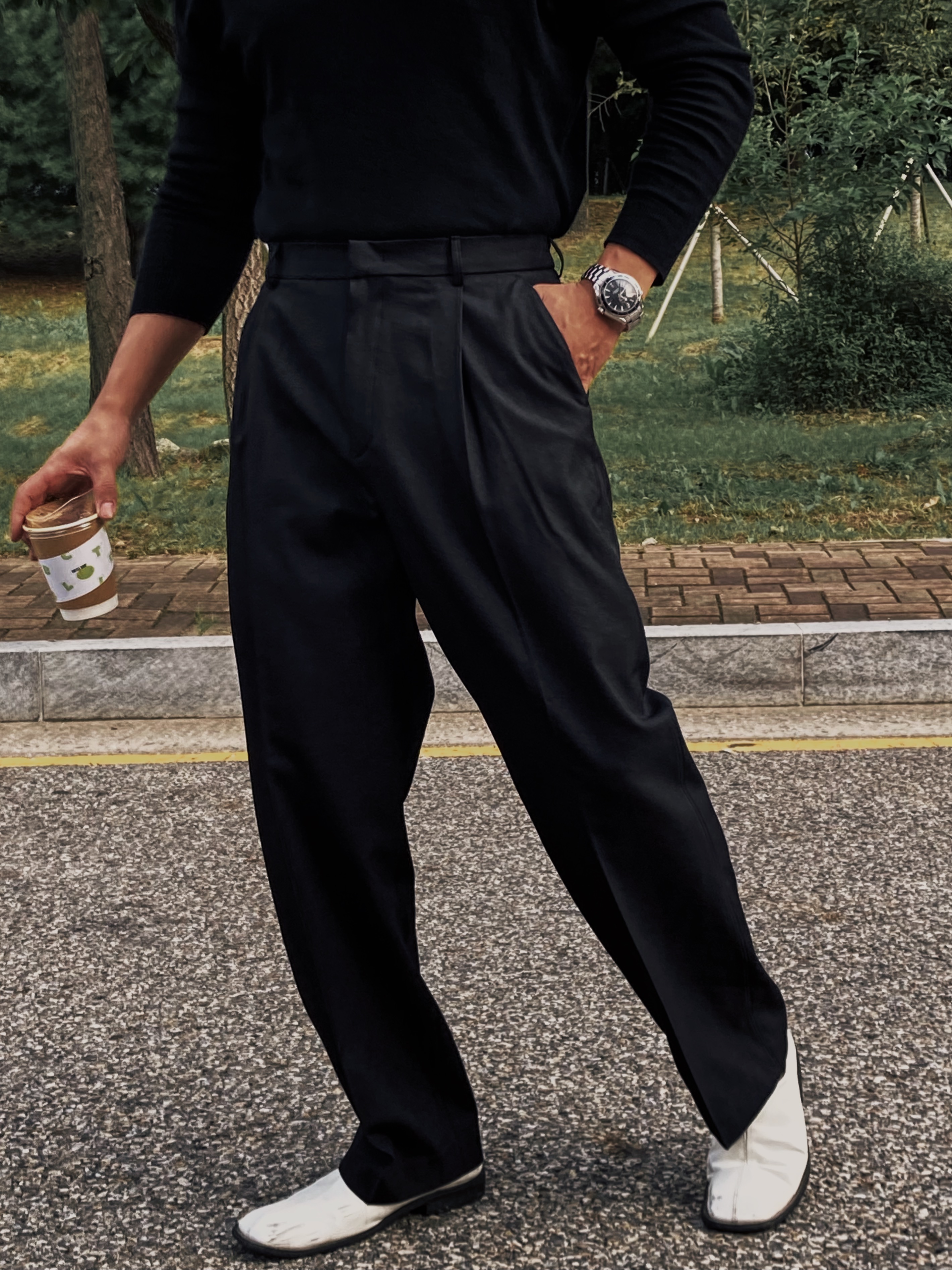 - 원턱 포인트의 일자로 떨어지는 세미 와이드핏