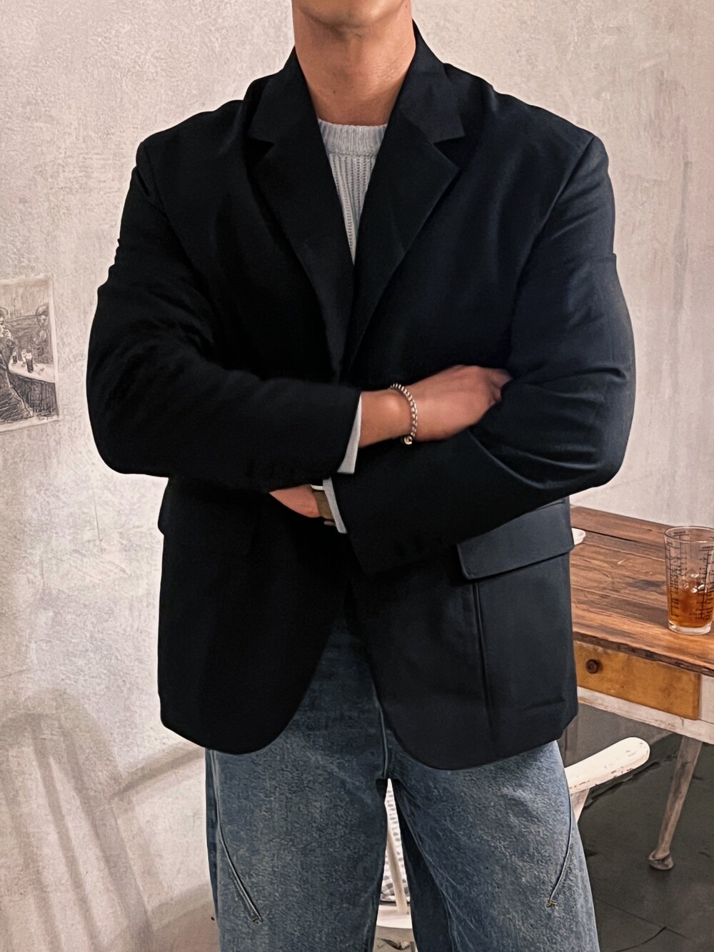 - 암홀라인부터 주머니까지 이어지는 커브 봉제 마감 라인 포인트
