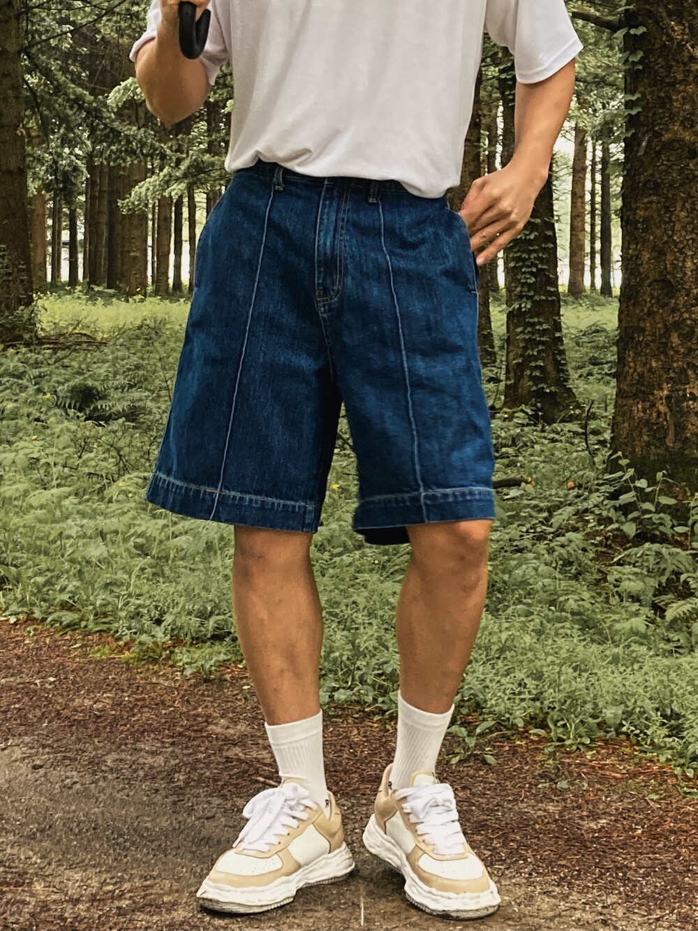 [Tomtyler] Dott Pintuck Wide Half Denim pt [2color]