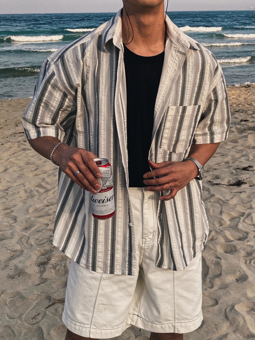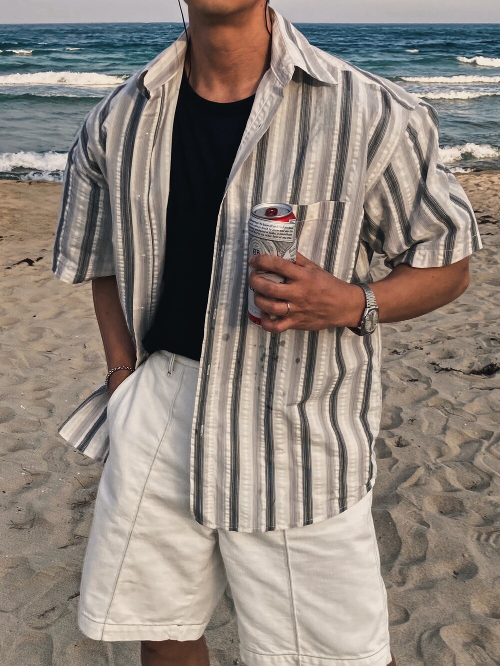 [Tomtyler] Leon Stripe Half Shirts [1color]