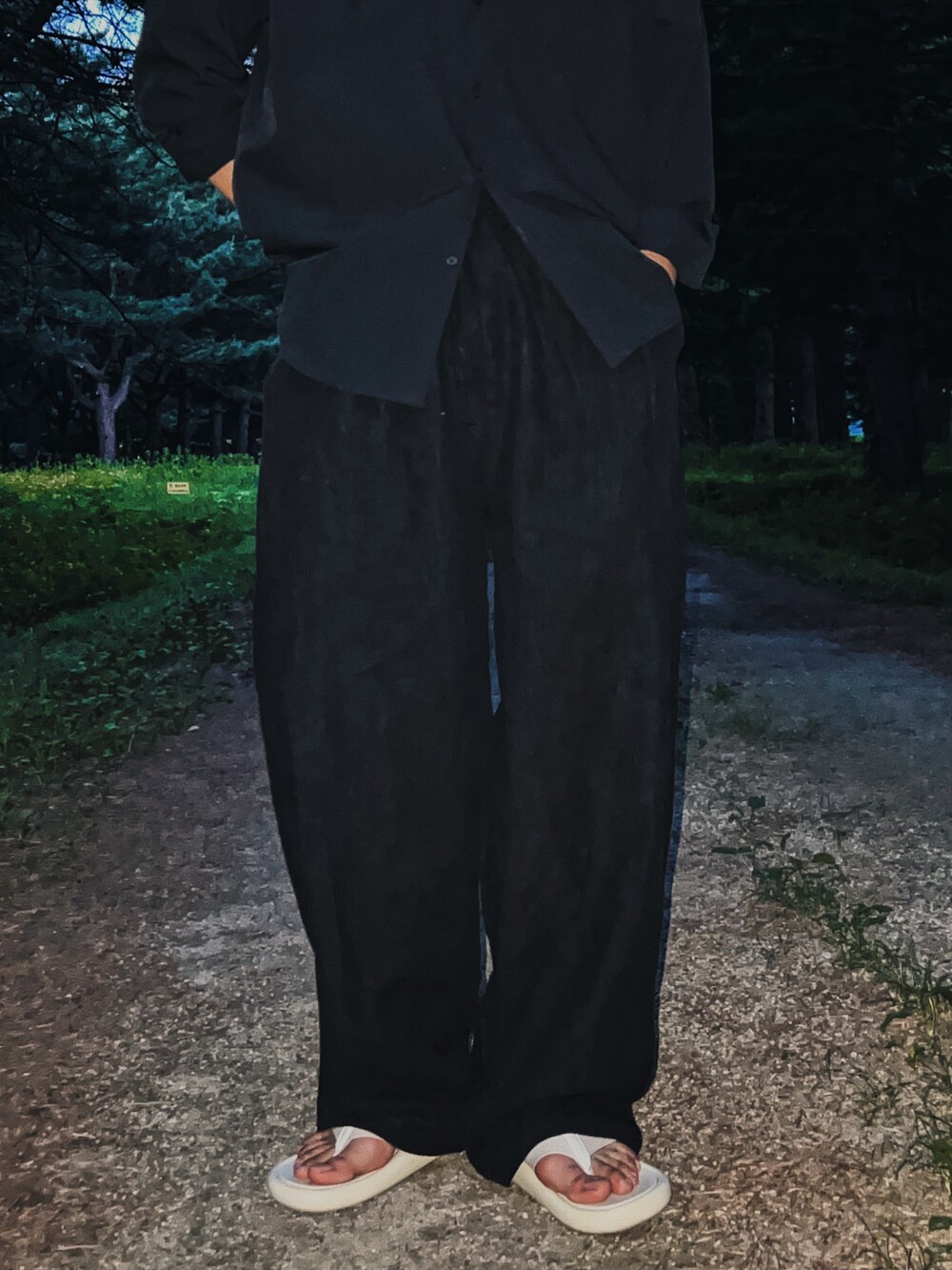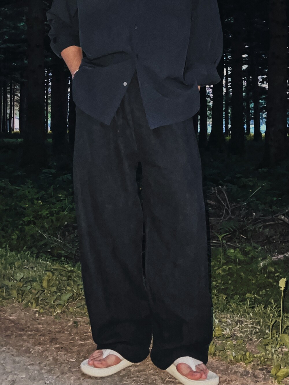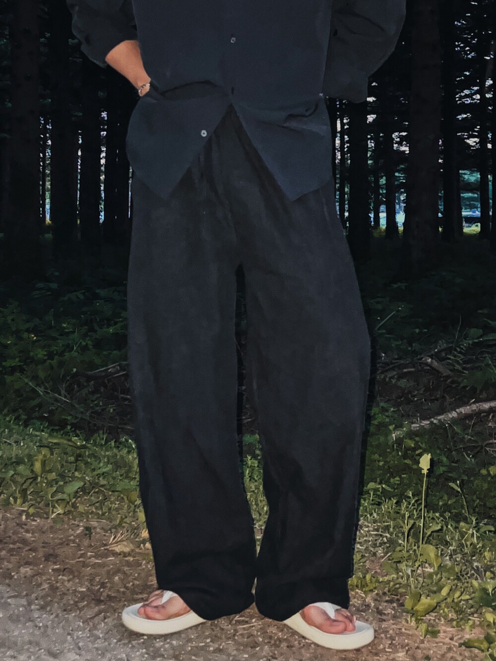 - 와이드 핏의 허리 전체 밴딩으로 데일리한 착용 가능