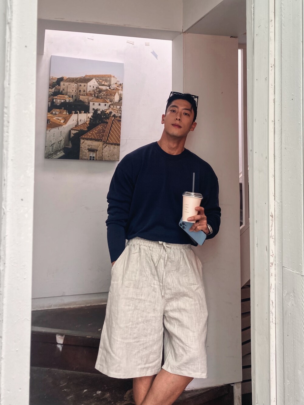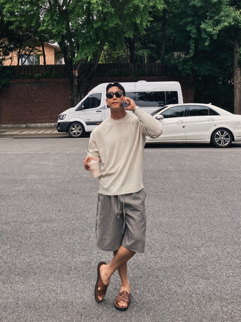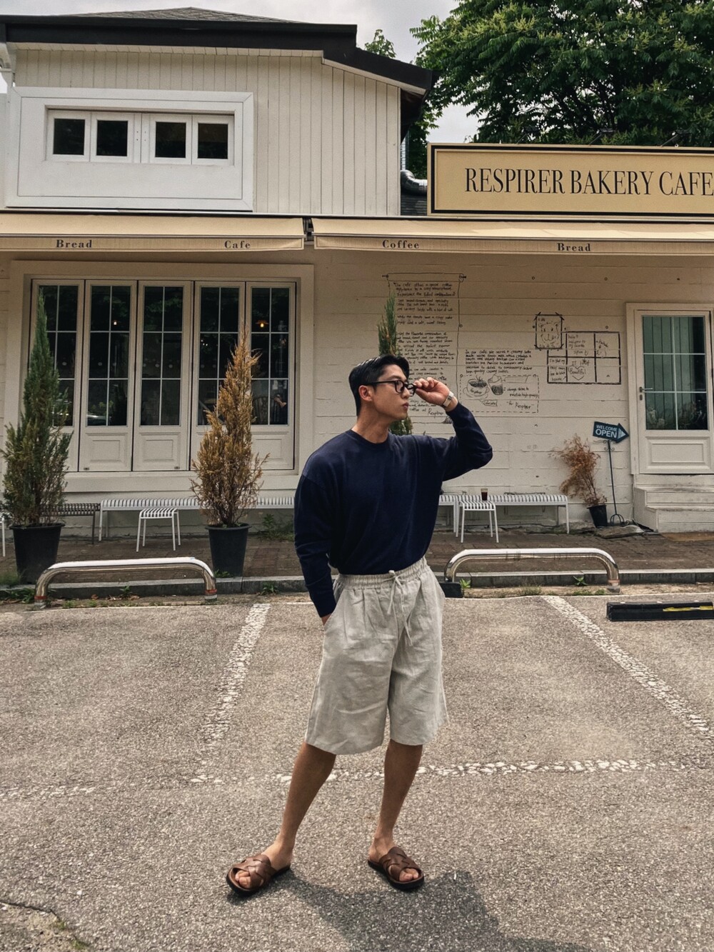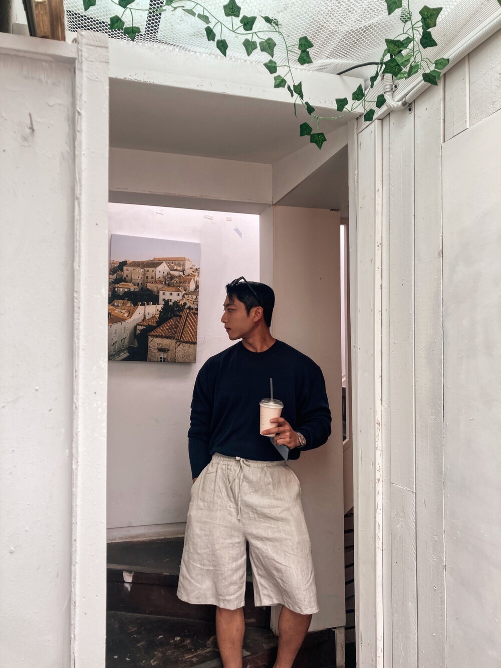 - 적당히 긴 기장감의 버뮤다 팬츠