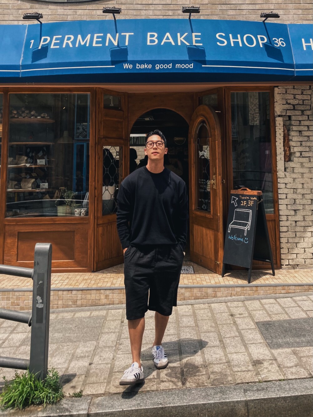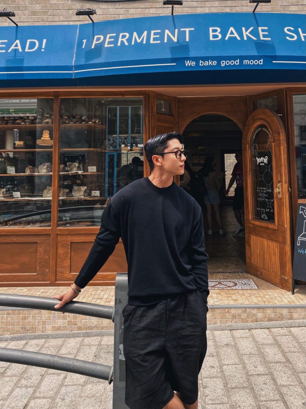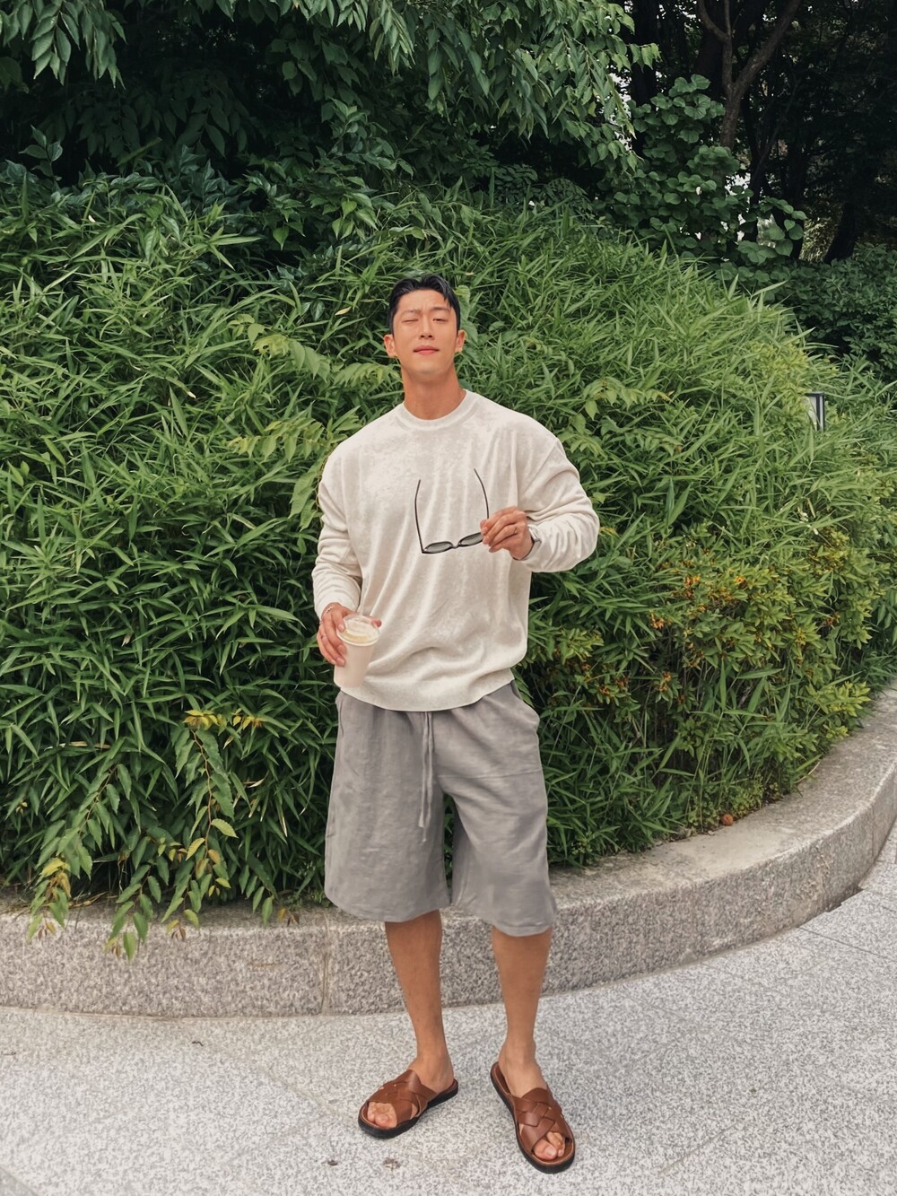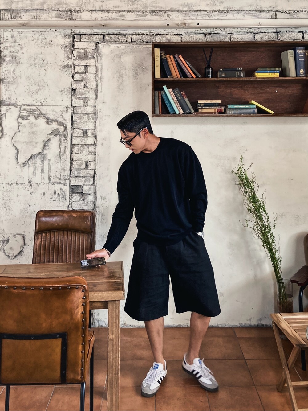 - 적당히 긴 기장감의 버뮤다 팬츠