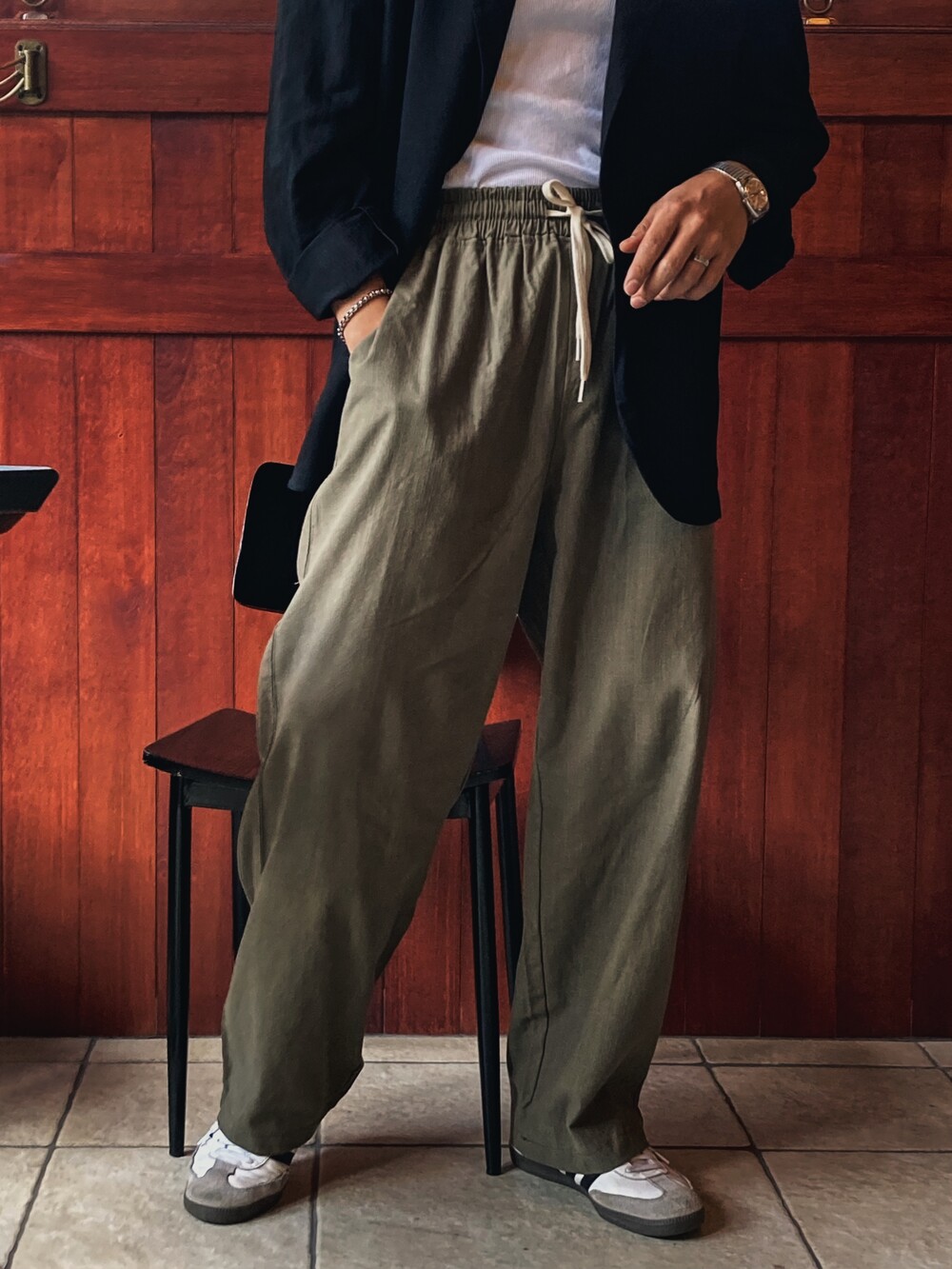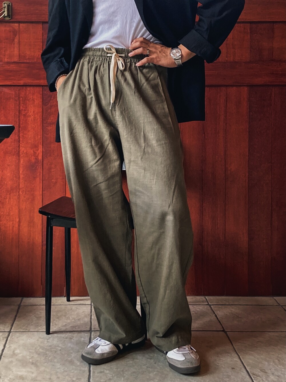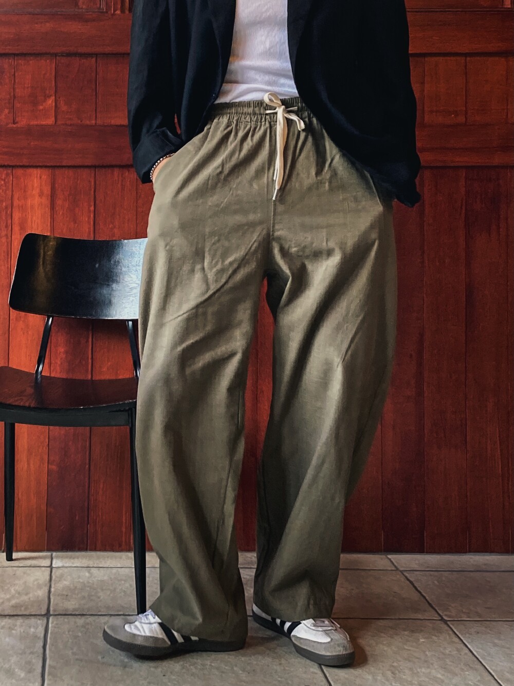 - 허리 전체 밴딩 와이드 핏 프리사이즈