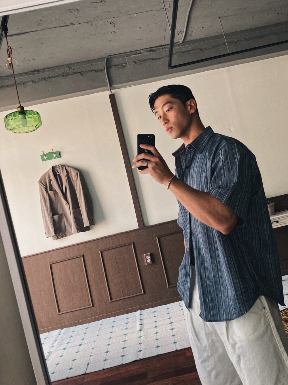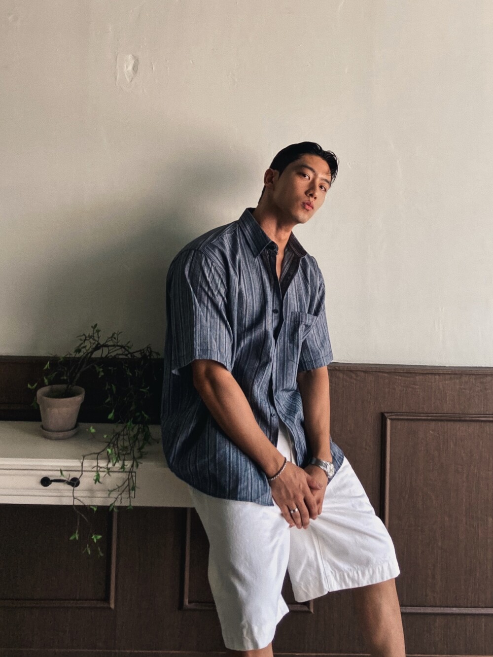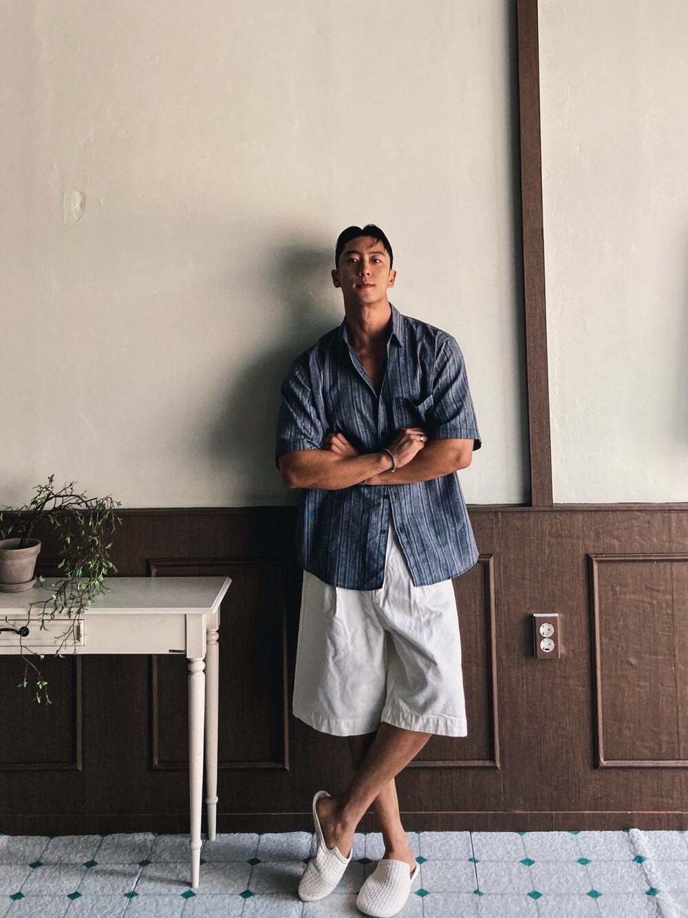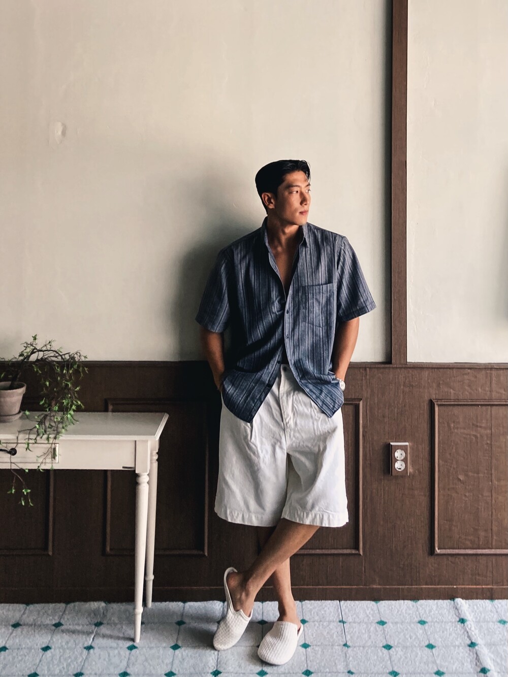 - 얇은 린넨/코튼 원단에 반팔 오버핏 셔츠