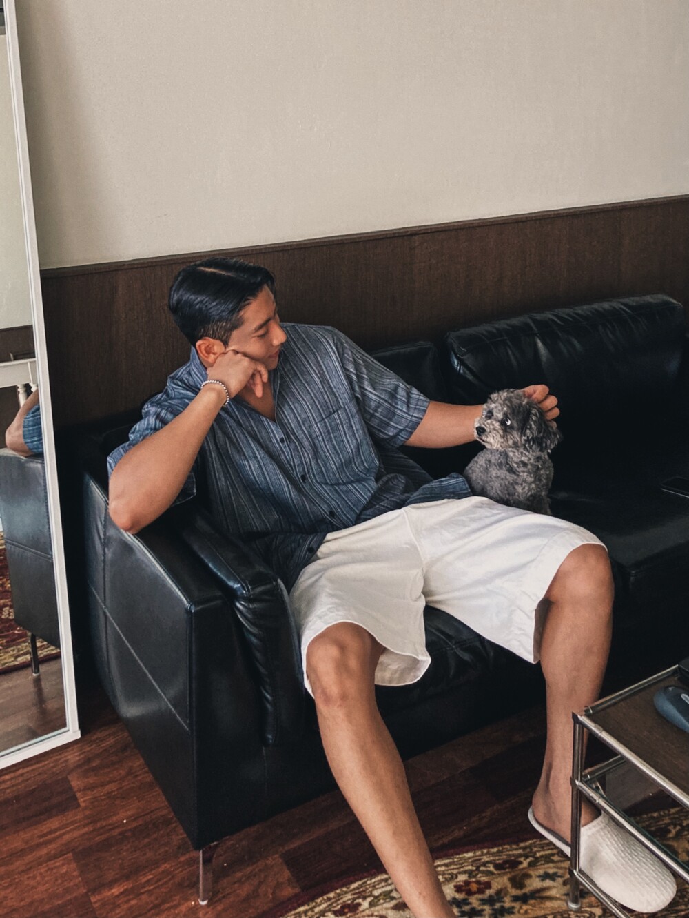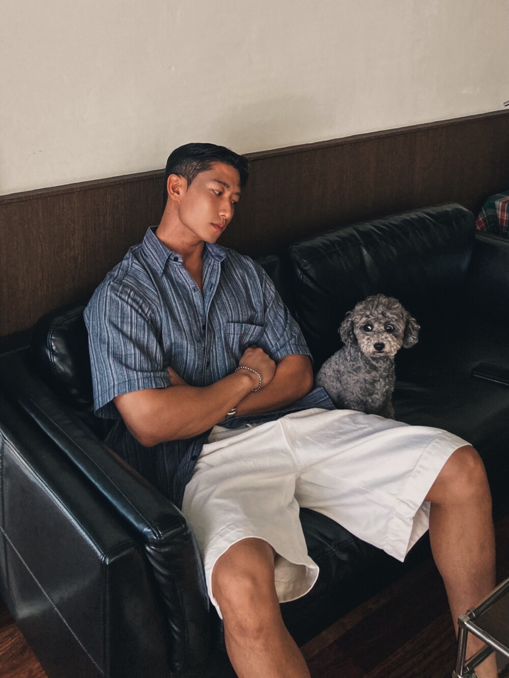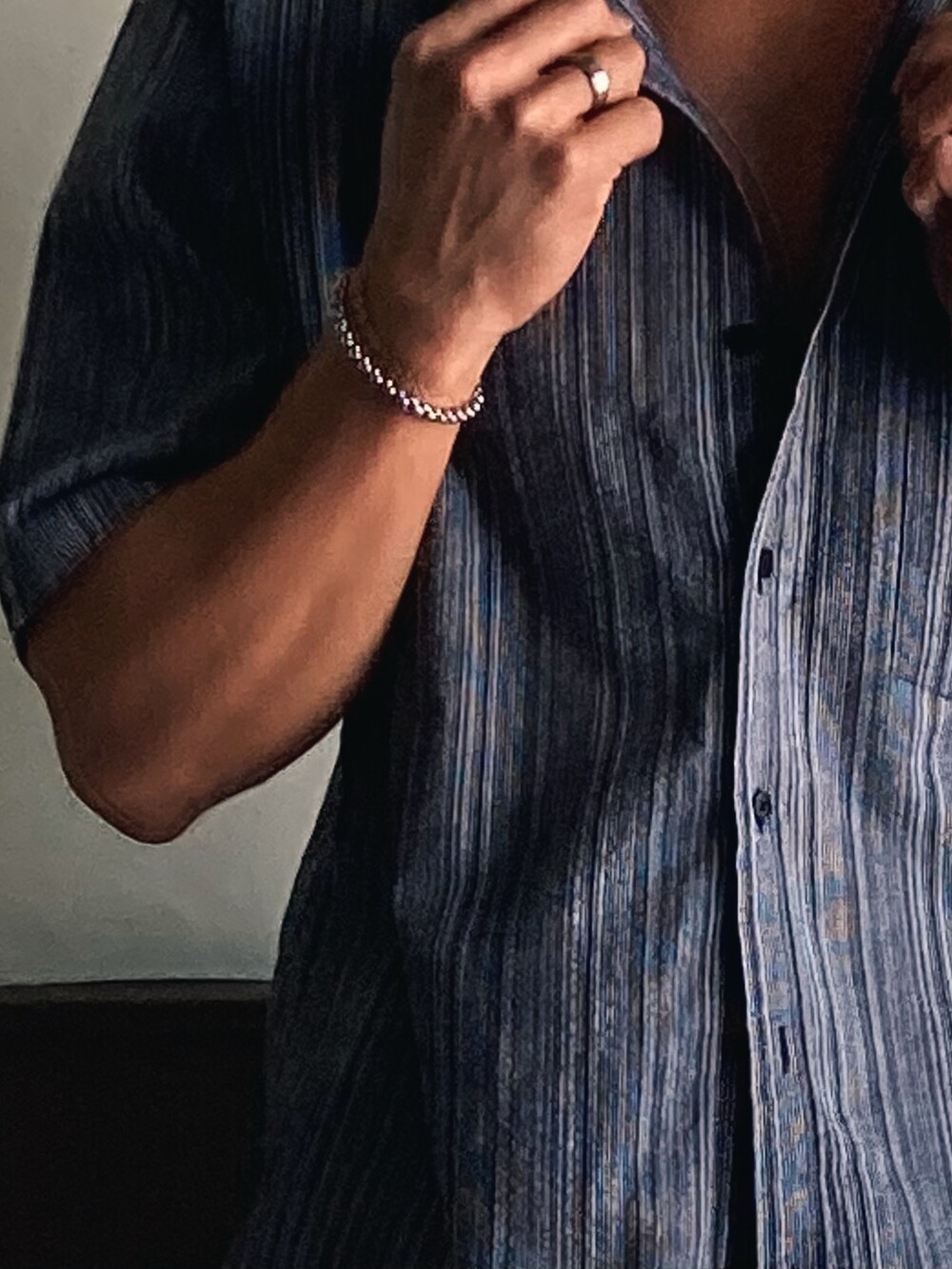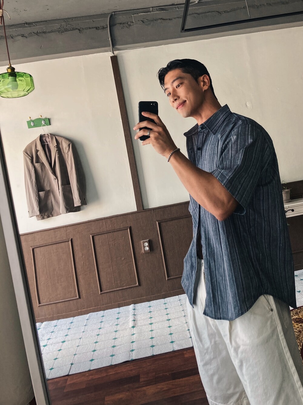 - 얇은 린넨/코튼 원단에 반팔 오버핏 셔츠