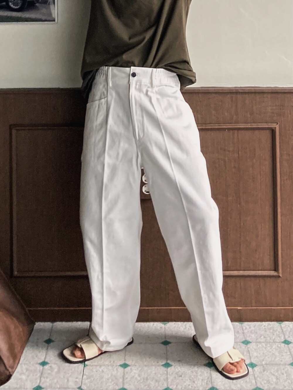 - 옆 사이드 부터 뒤까지 들어가는 허리 반밴딩, 편안한 착용감