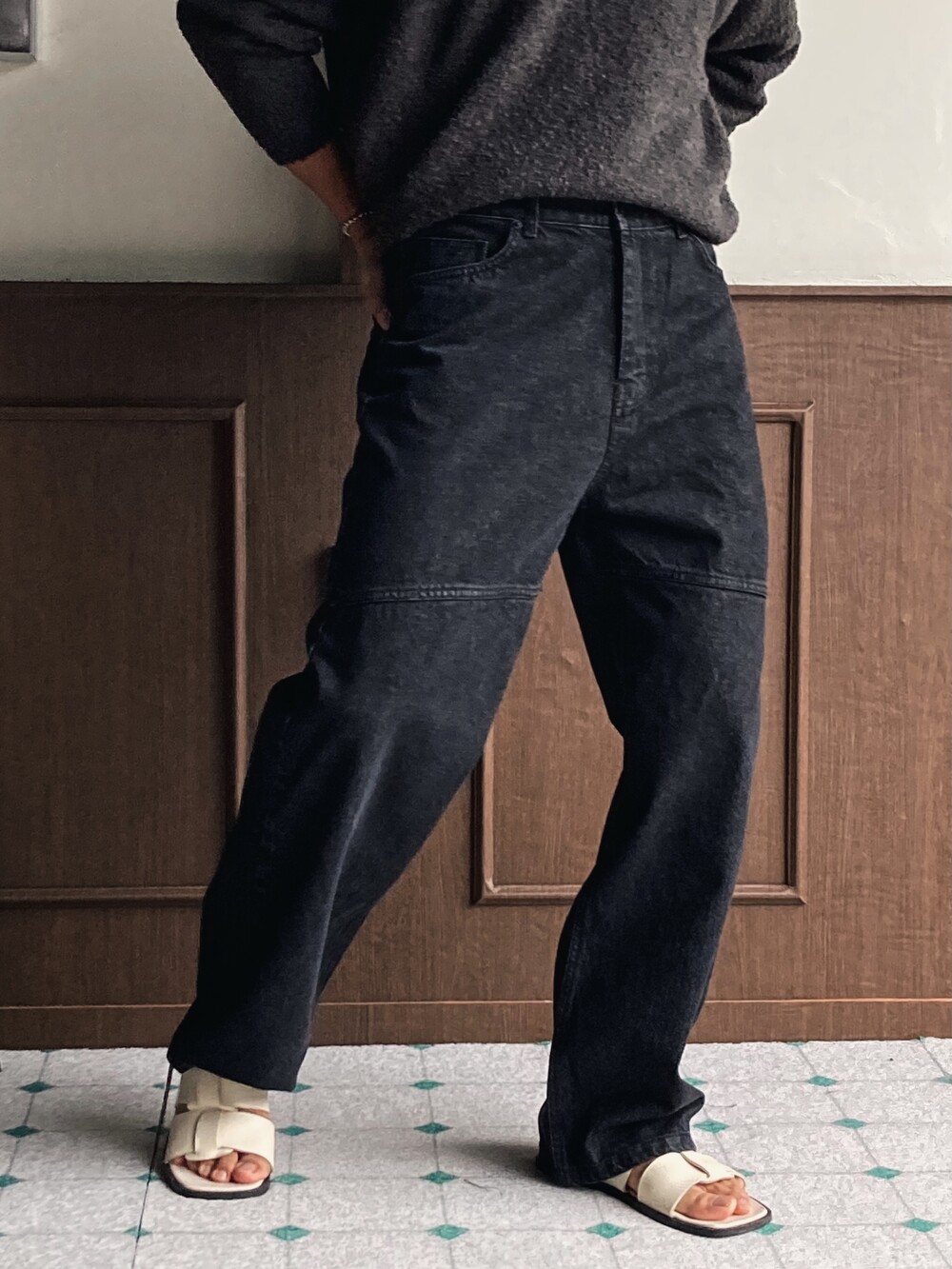 - 무릎 부분 절개 디테일