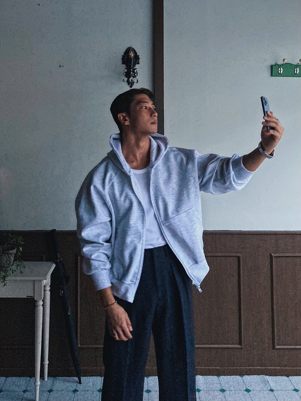 - 허리부터 내려오는 투턱 포인트