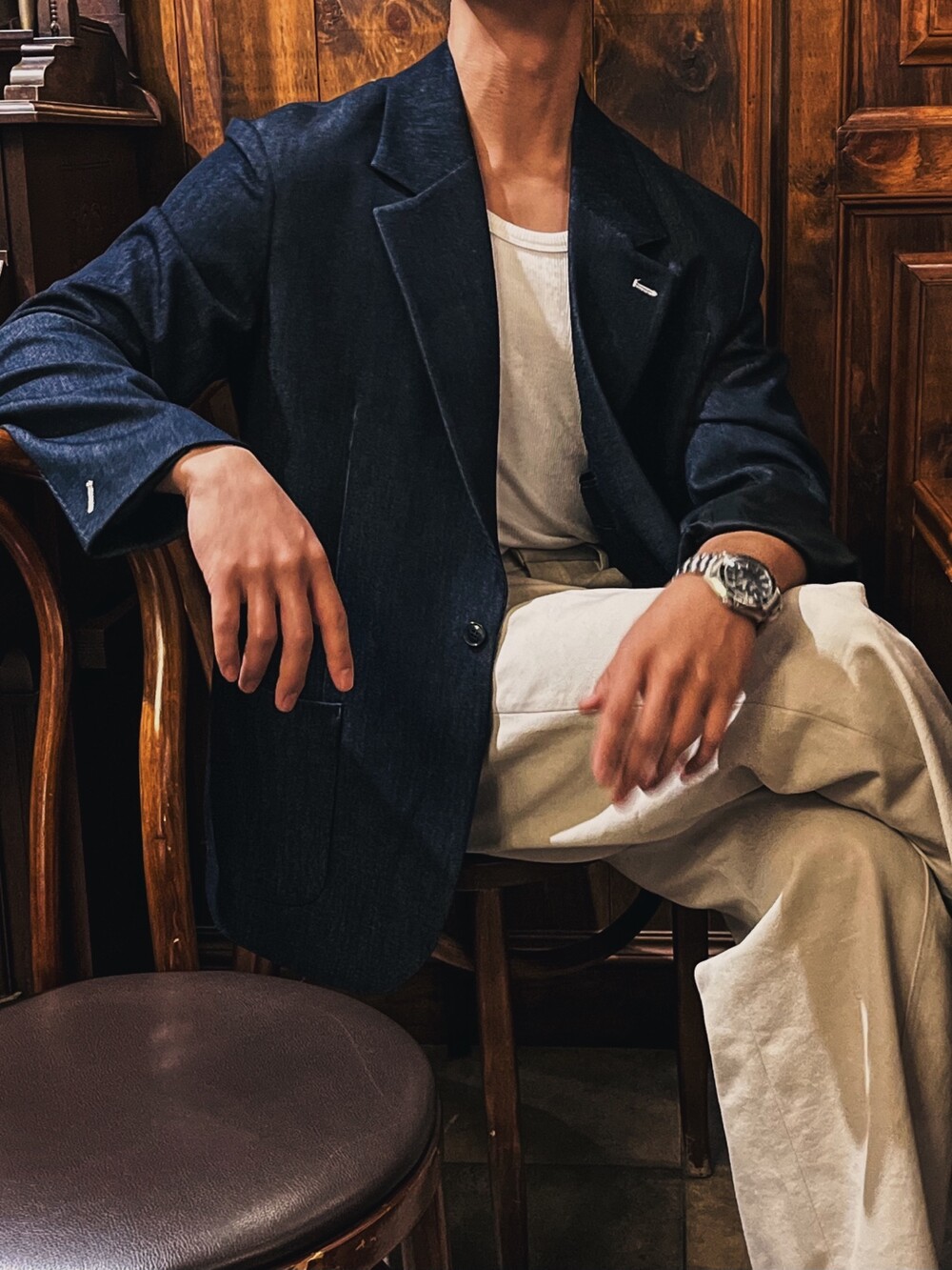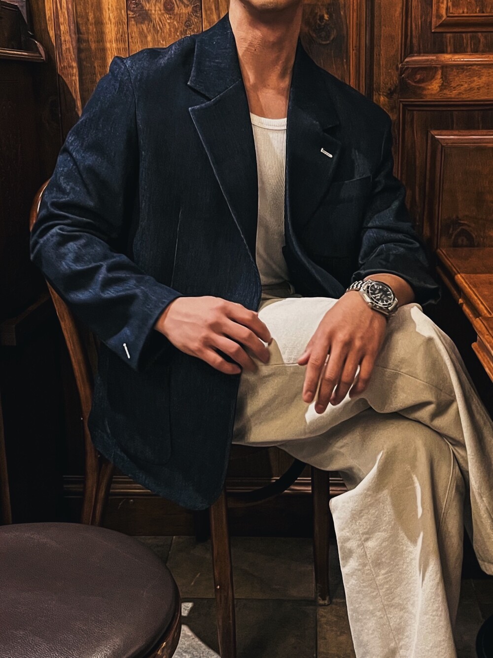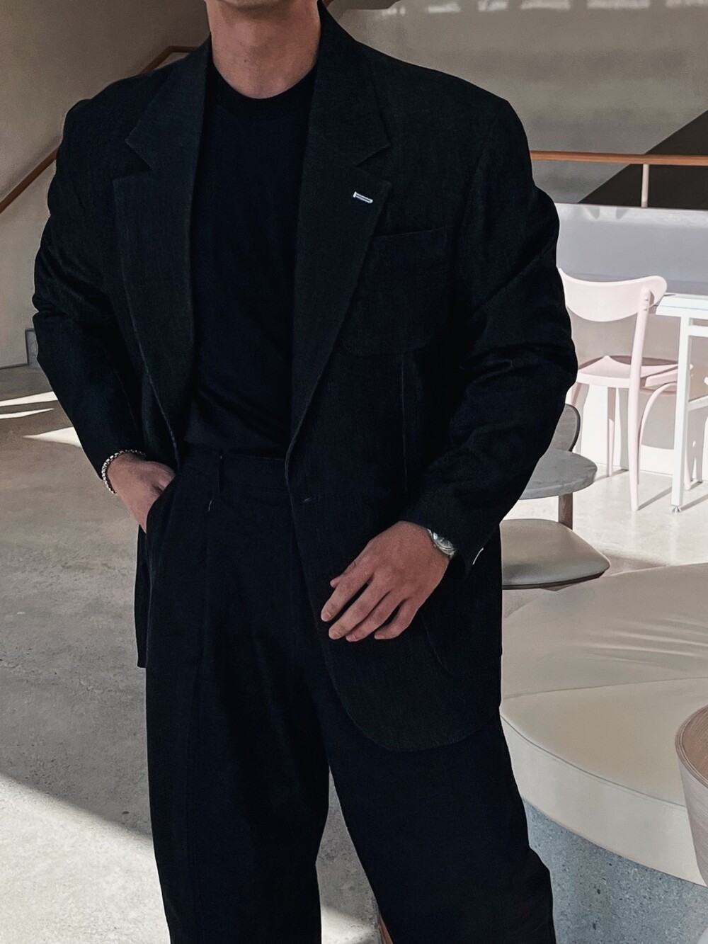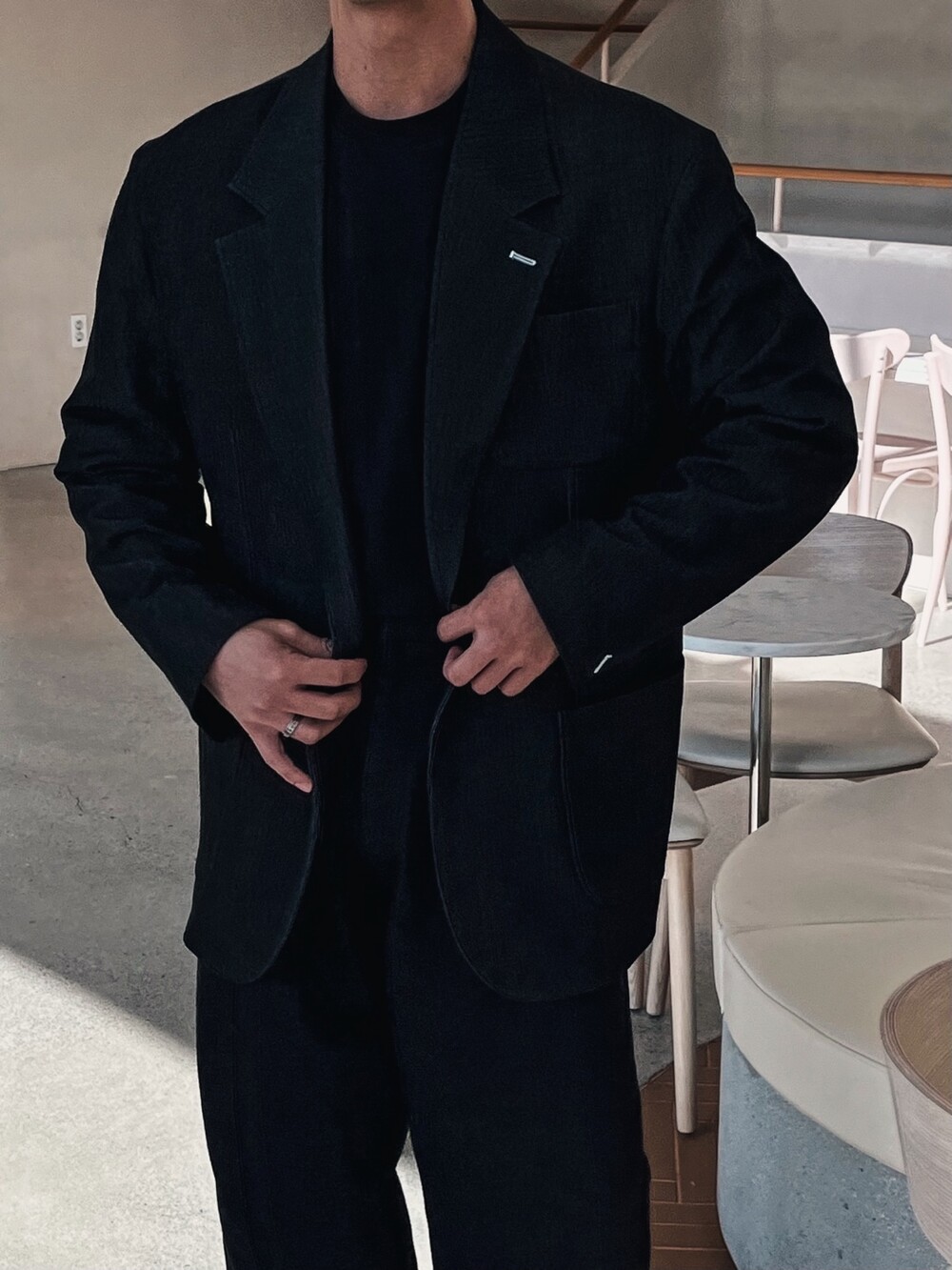 - 가볍지 않은 중량감으로 고급스럽게 떨어지는 착용실루엣