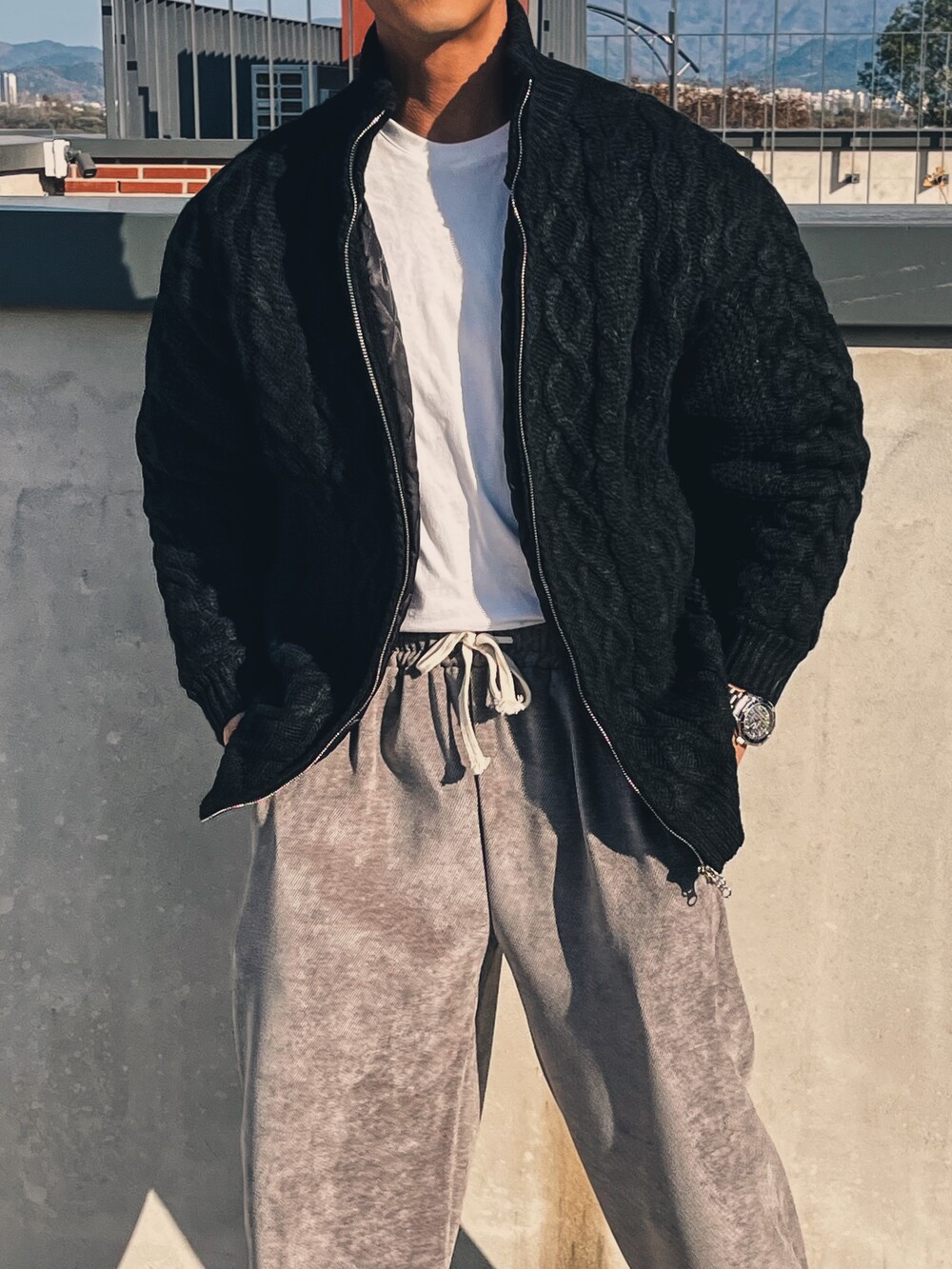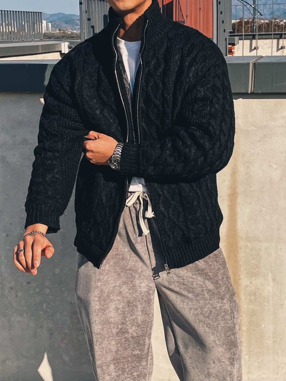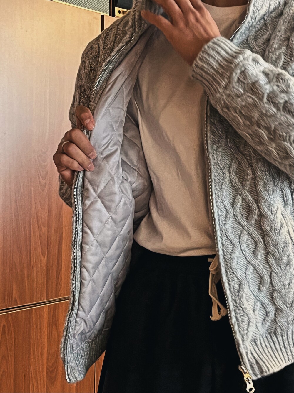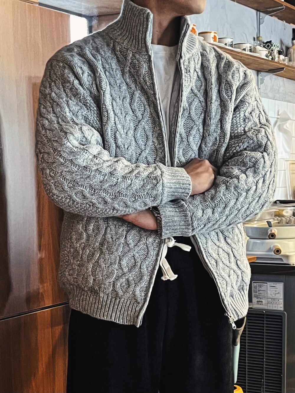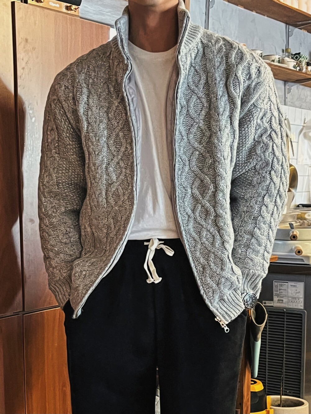 - 패딩 안감의 꽈배기 니트 하이넥 집업