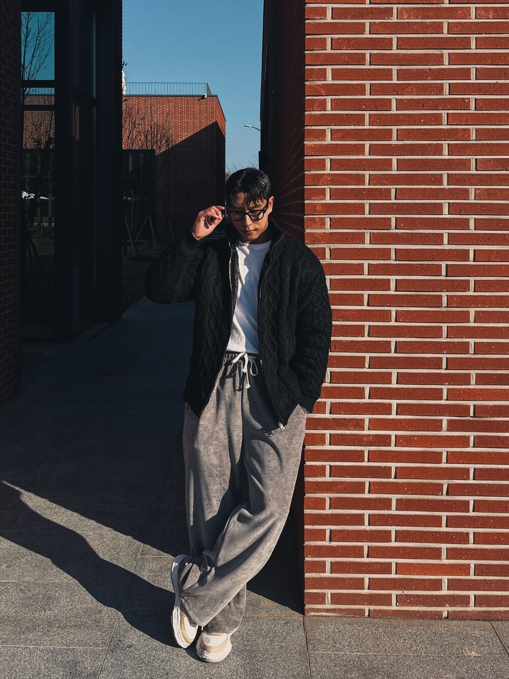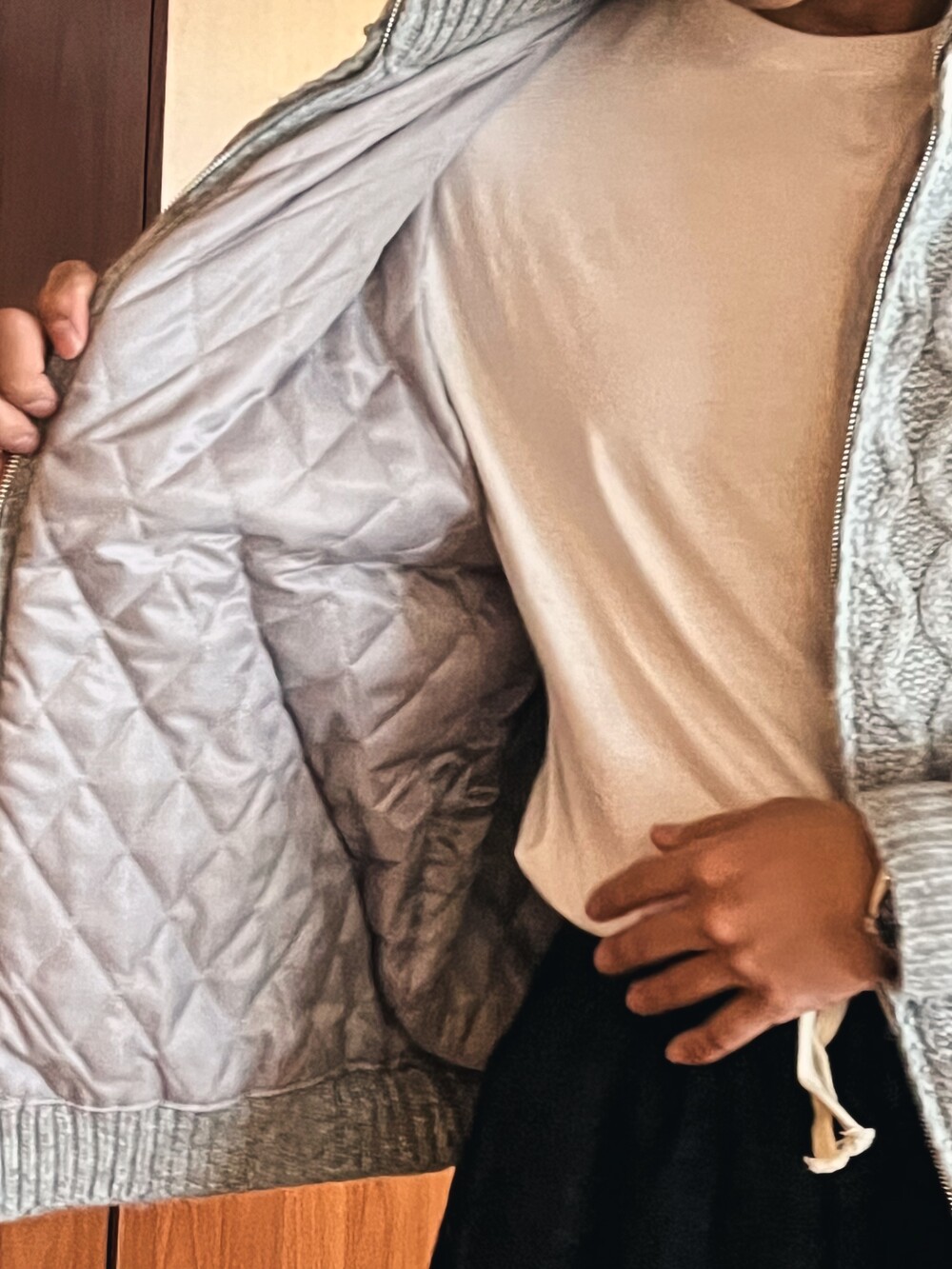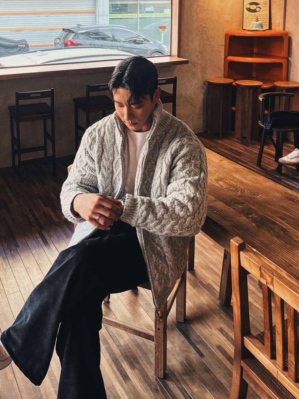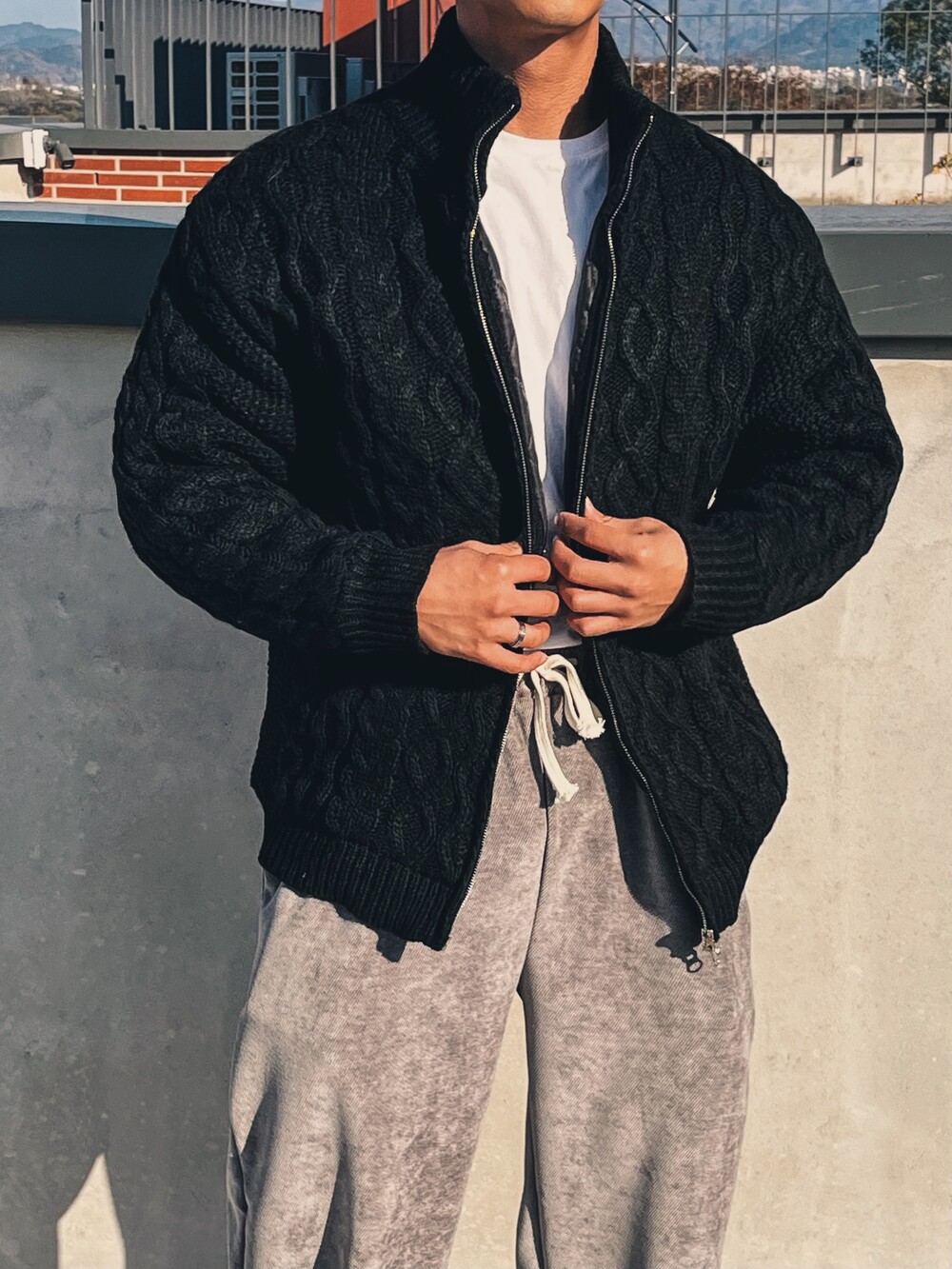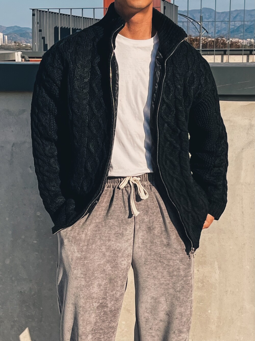 - 패딩 안감의 꽈배기 니트 하이넥 집업
