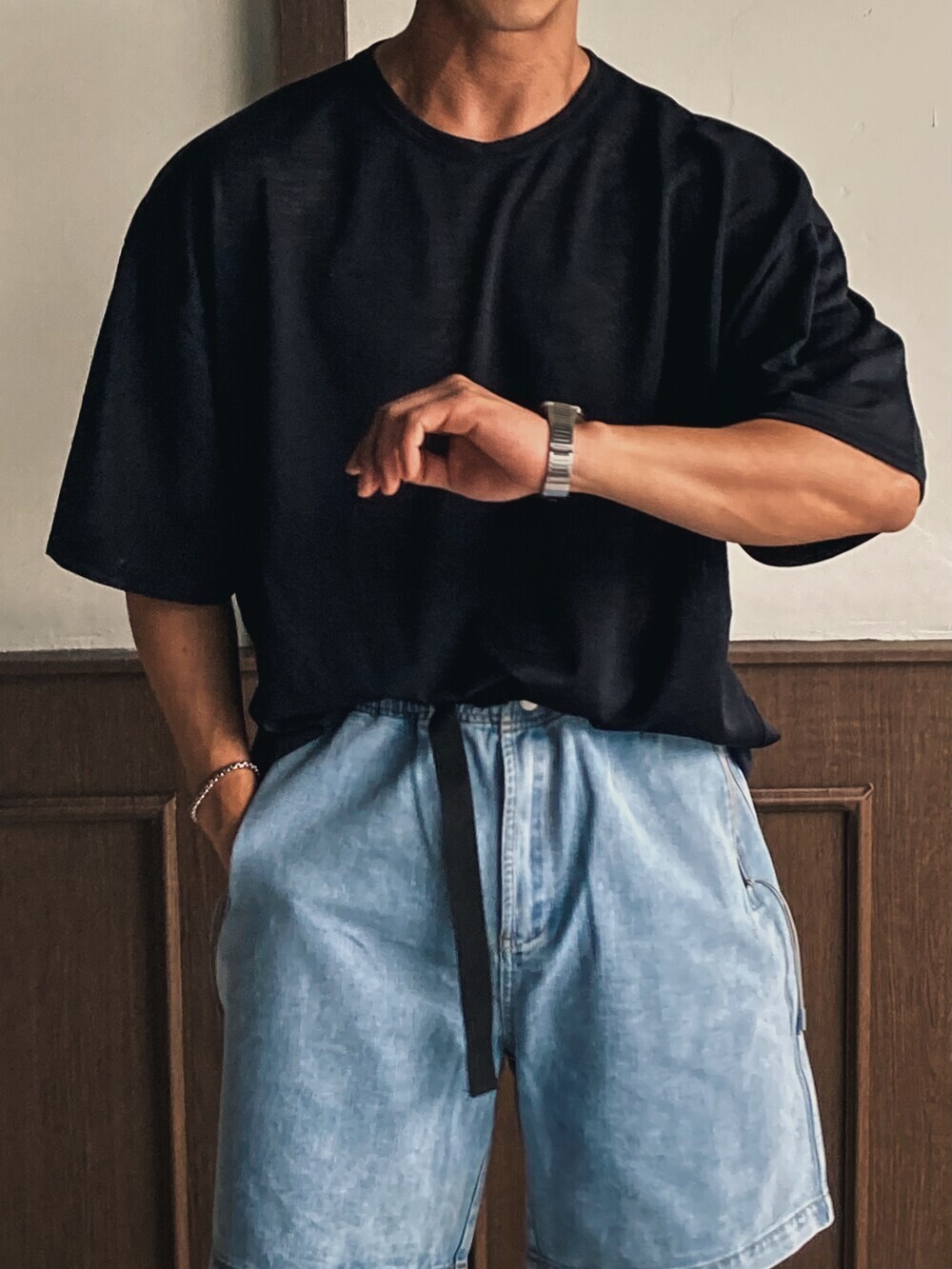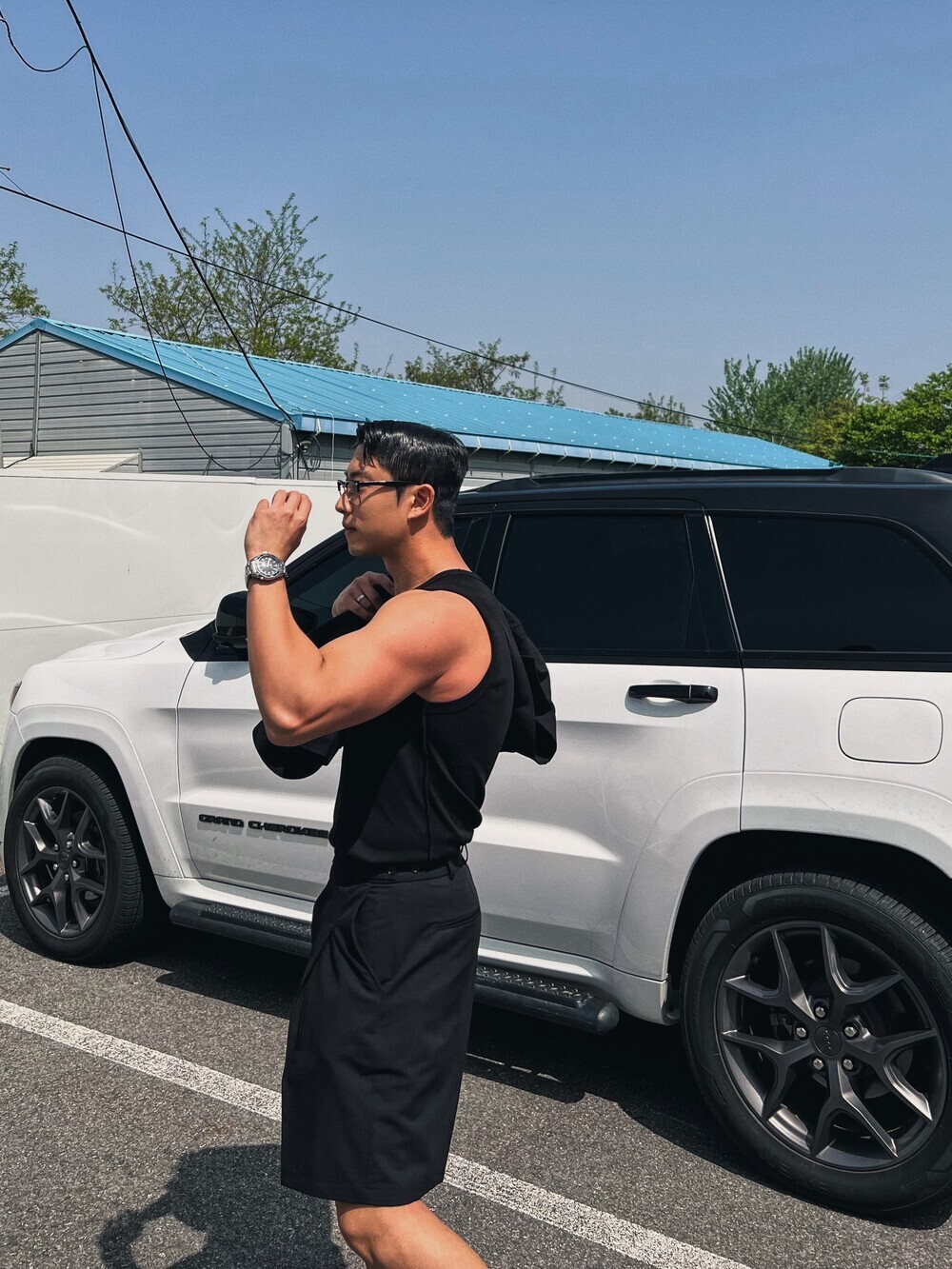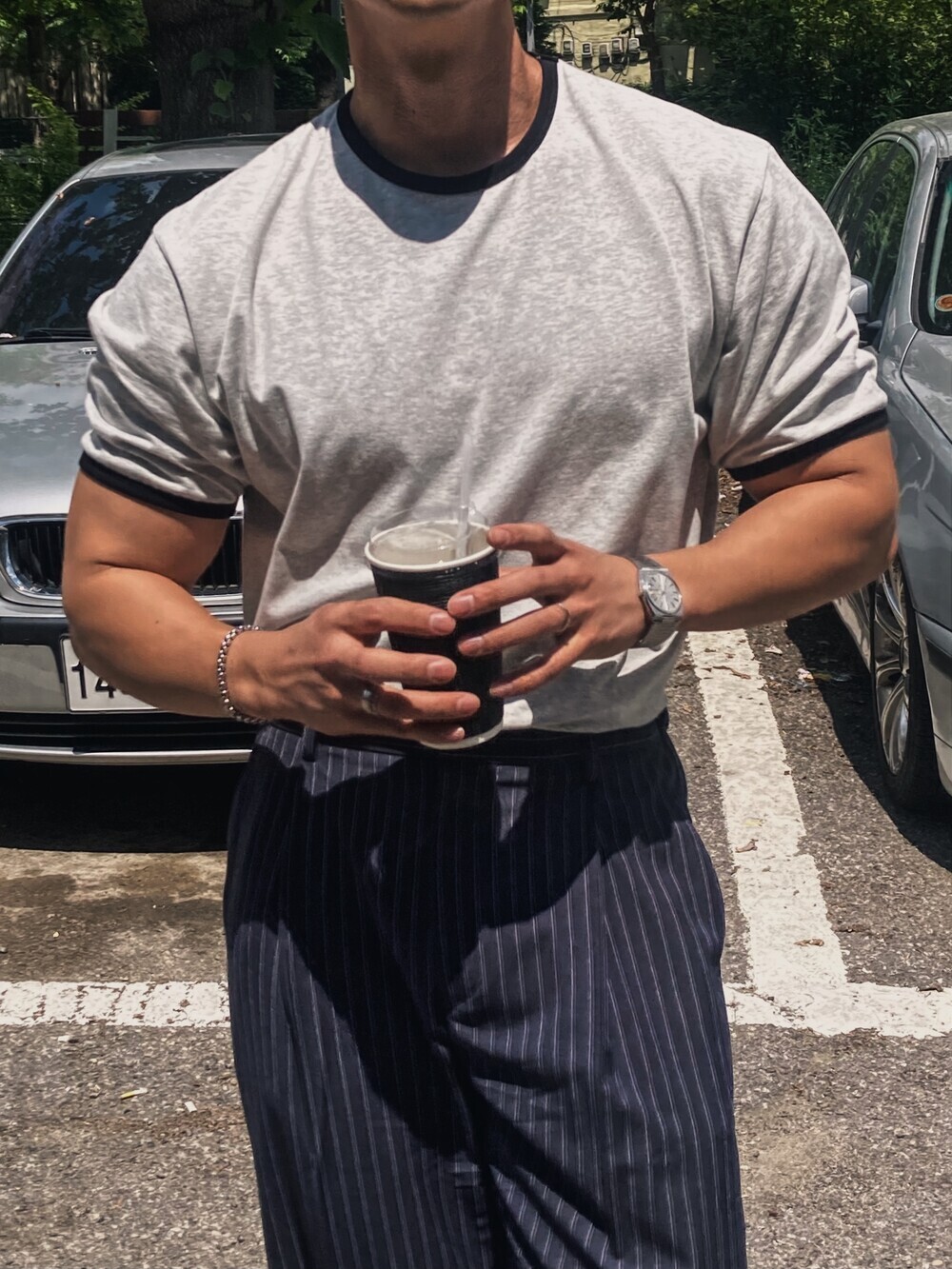85. 스판 머슬라인 스티치 반팔 티 (검정L) - 13,000 WON
