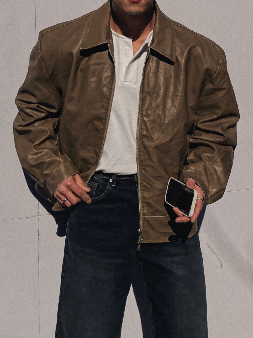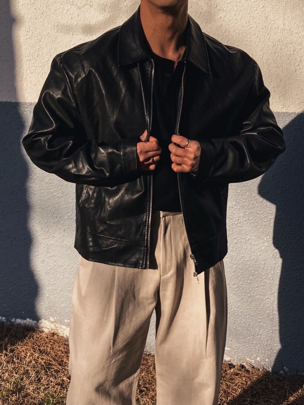 - 어깡핏 레더 자켓