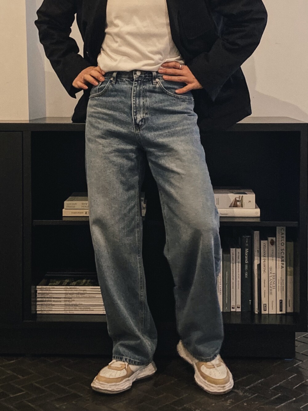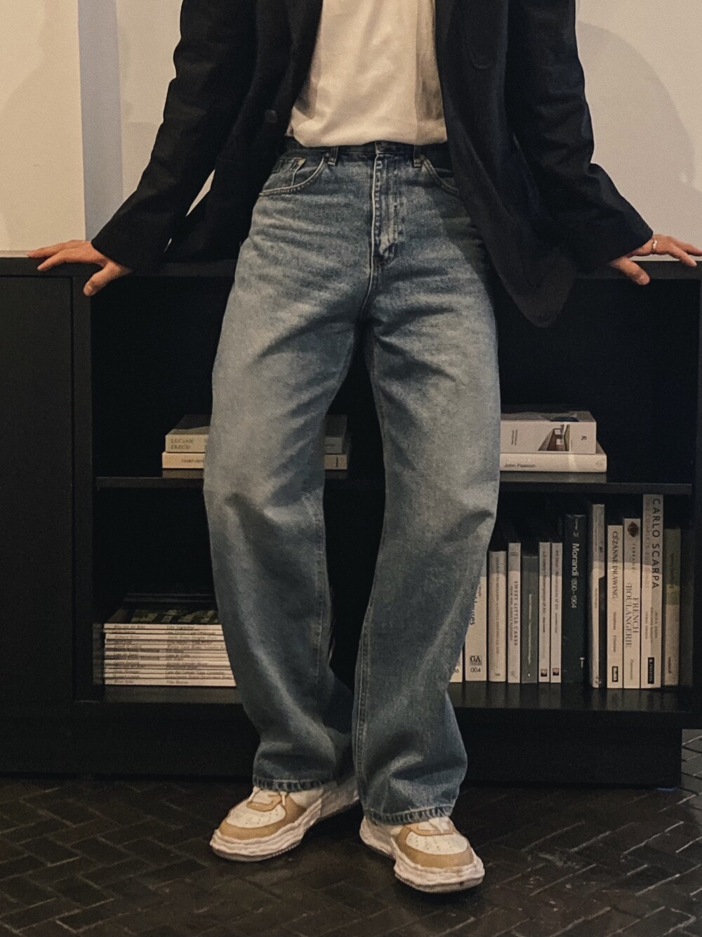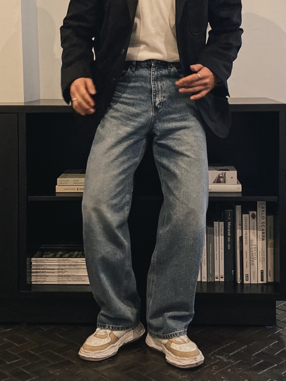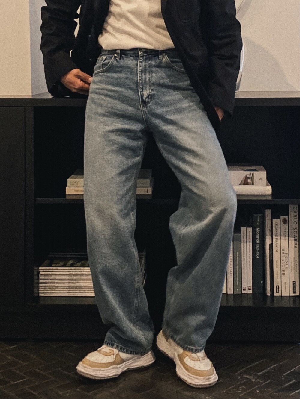- 기본 스탠다드 오버핏의 연청 데님 팬츠
