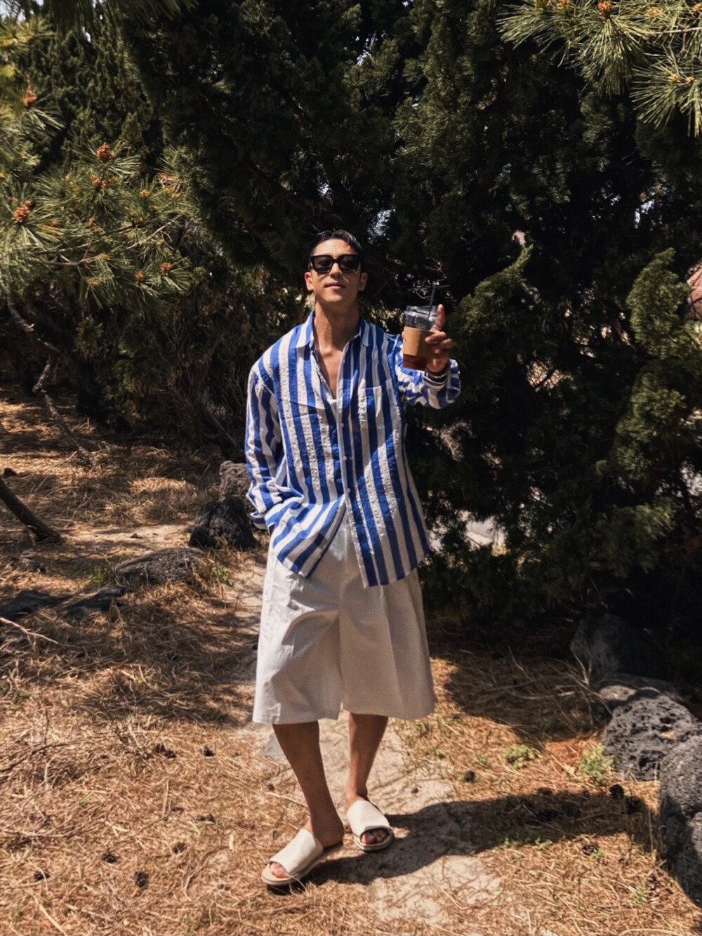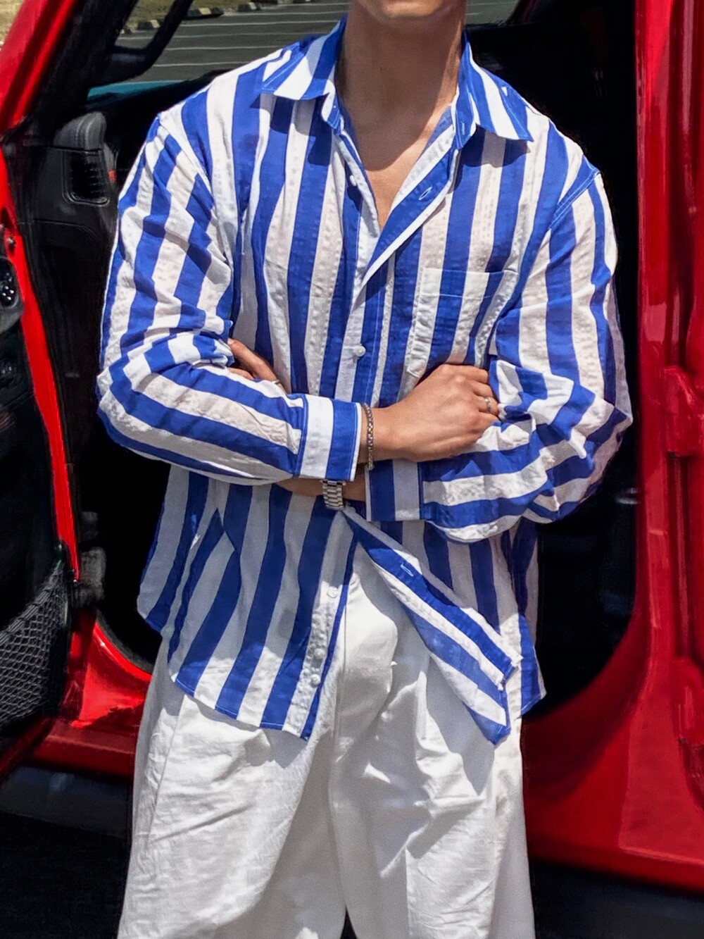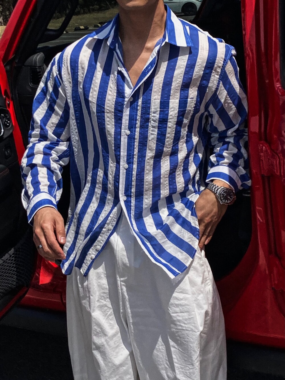 [Tomtyler] Pokari Stripe Linen Shirts [blue]