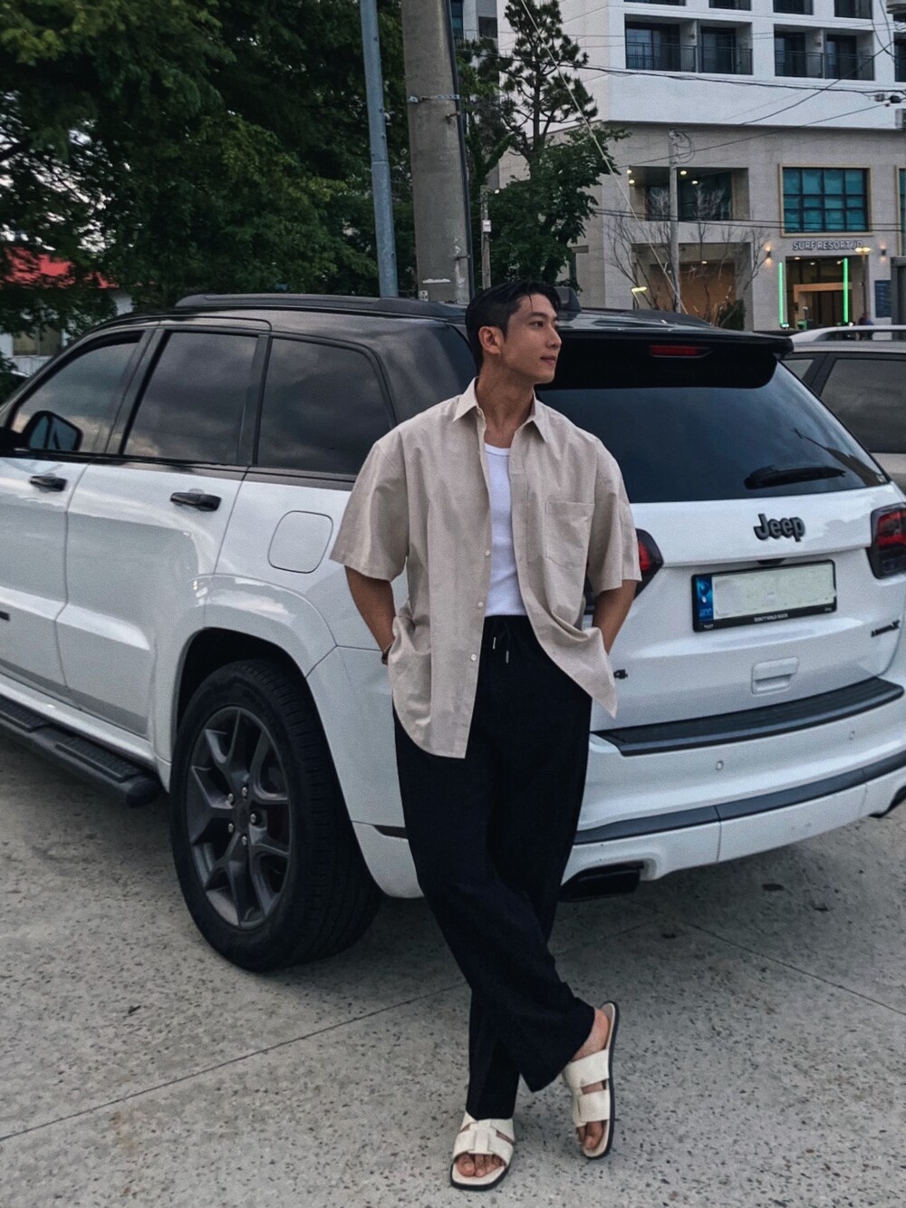 - 두꺼운 린넨 코튼 소재의 딱 잡혀있는 핏