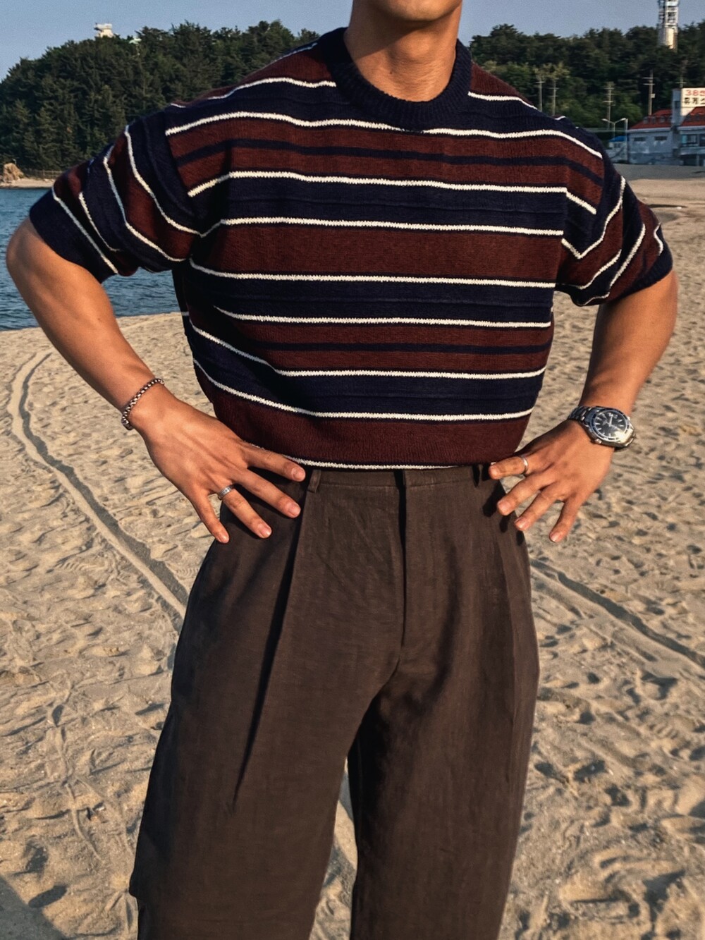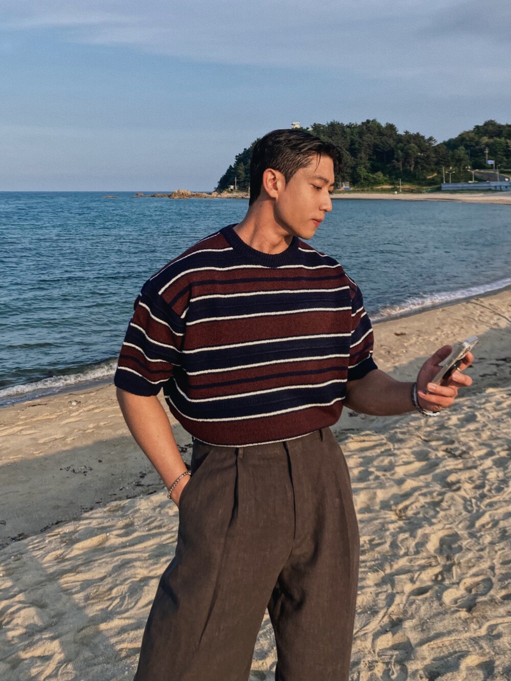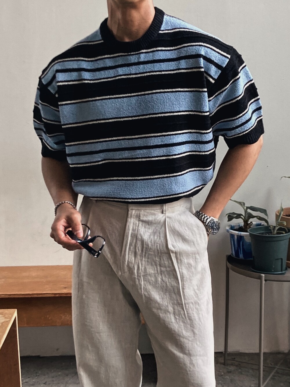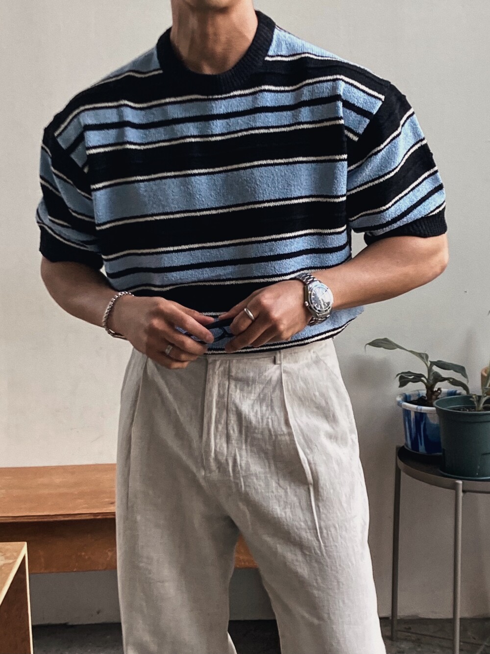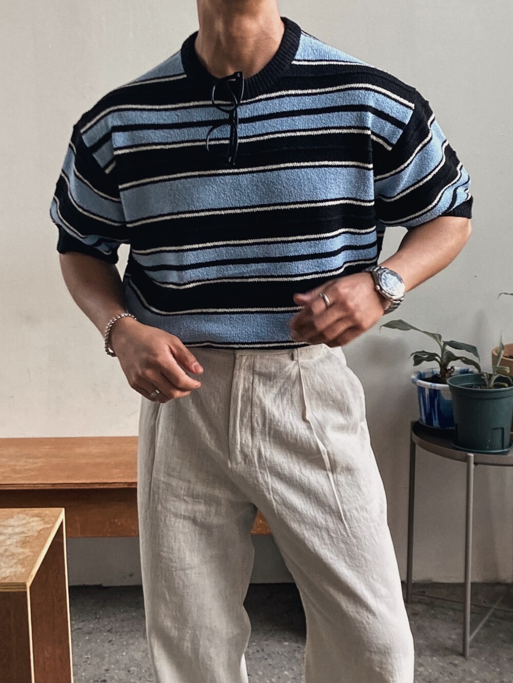 [Tomtyler] Wave Stripe Half Knit [3color]