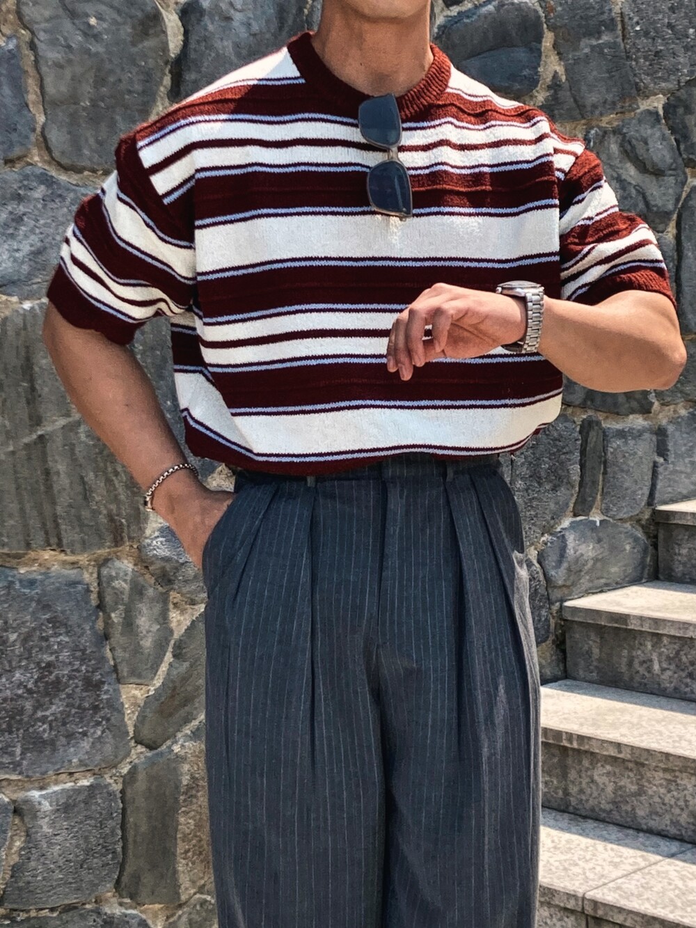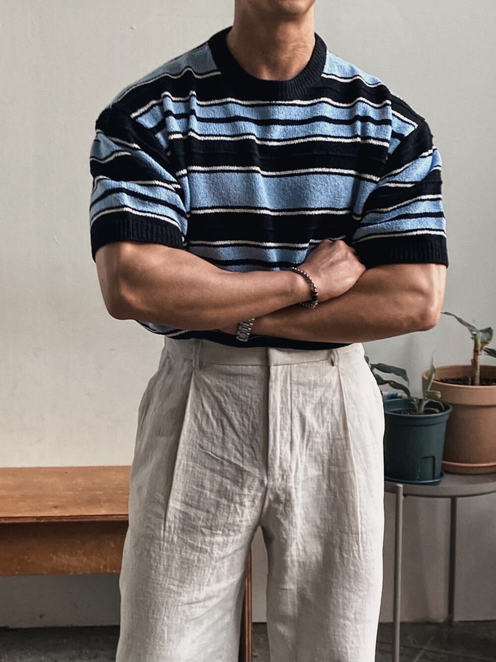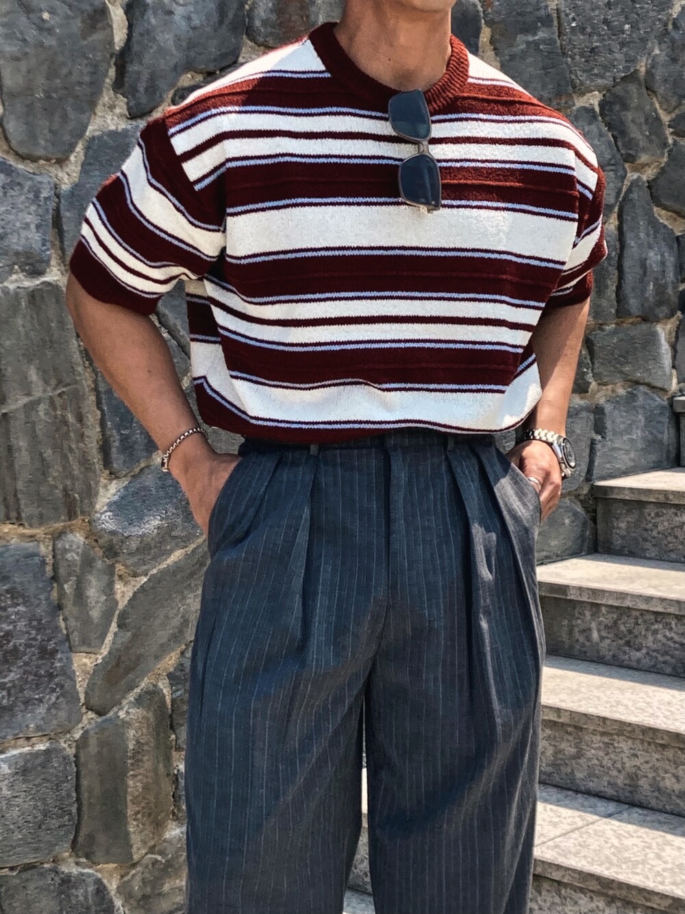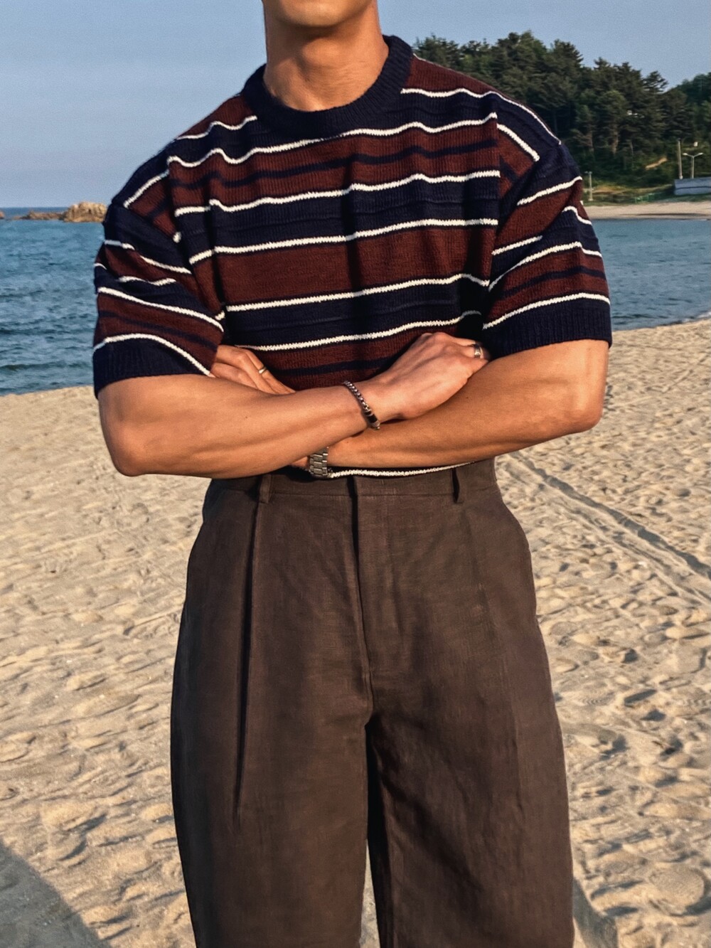 [Tomtyler] Wave Stripe Half Knit [3color]