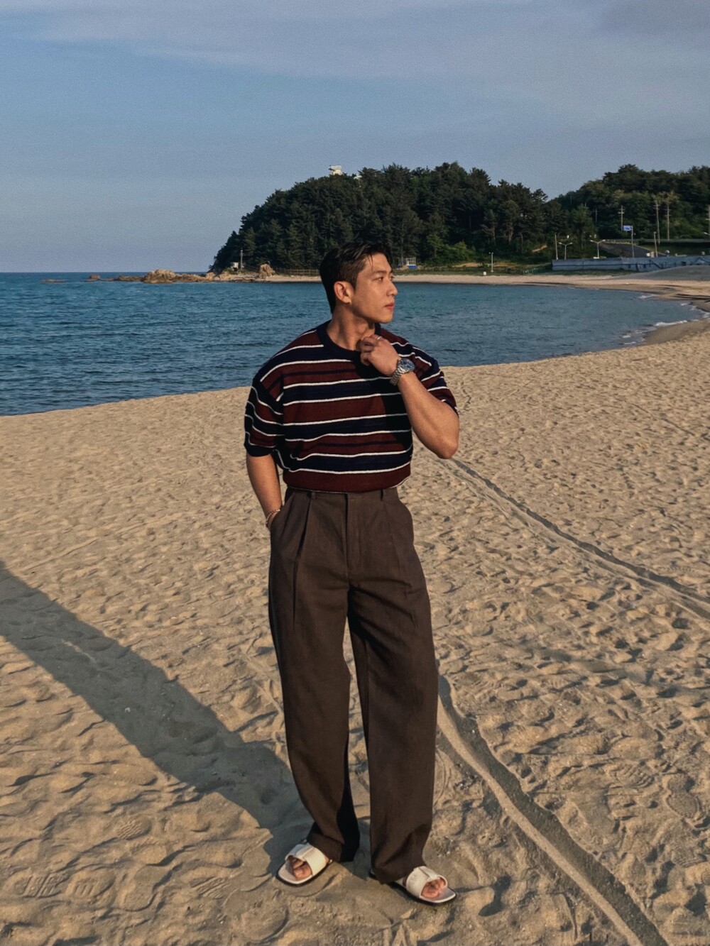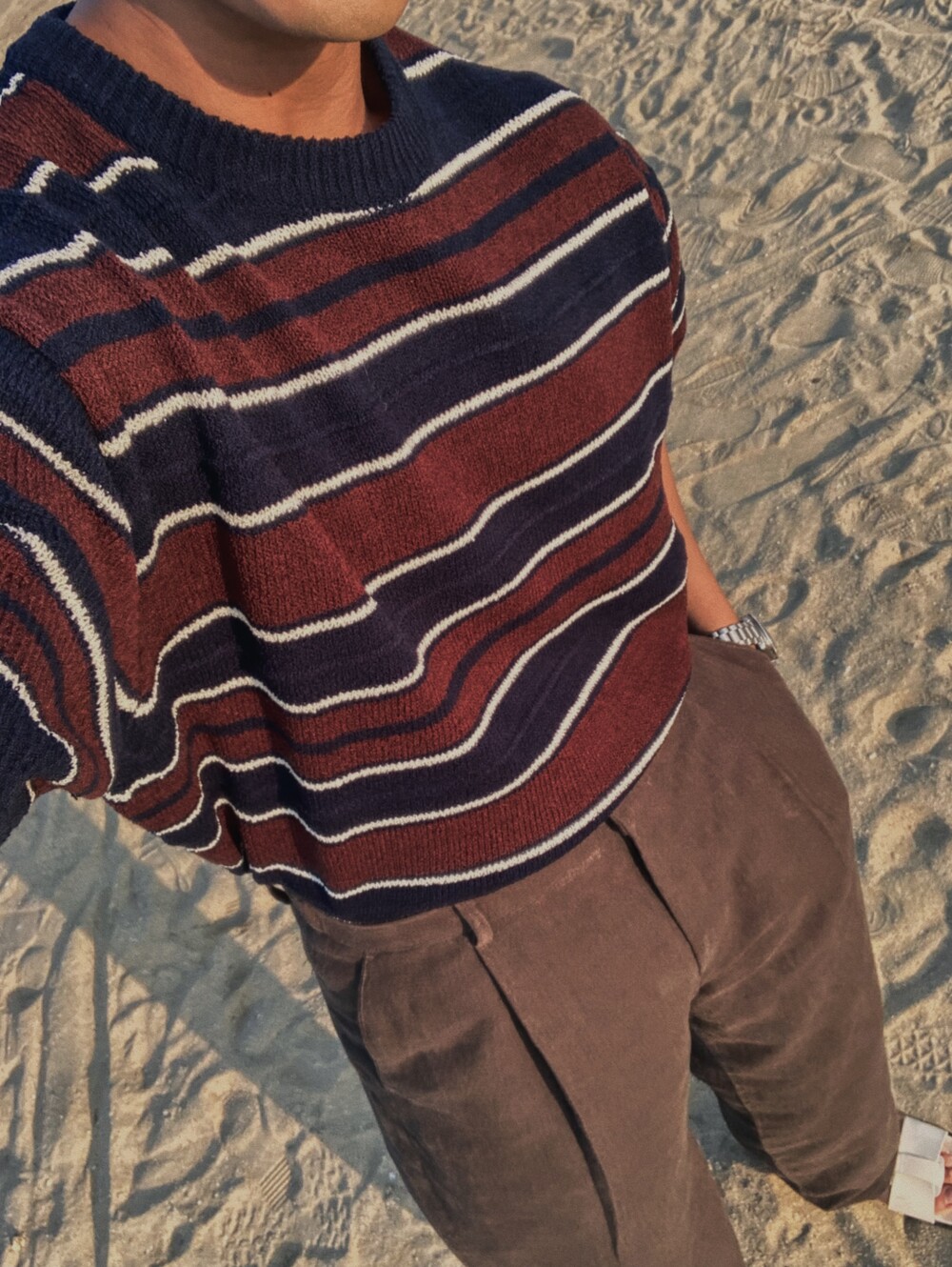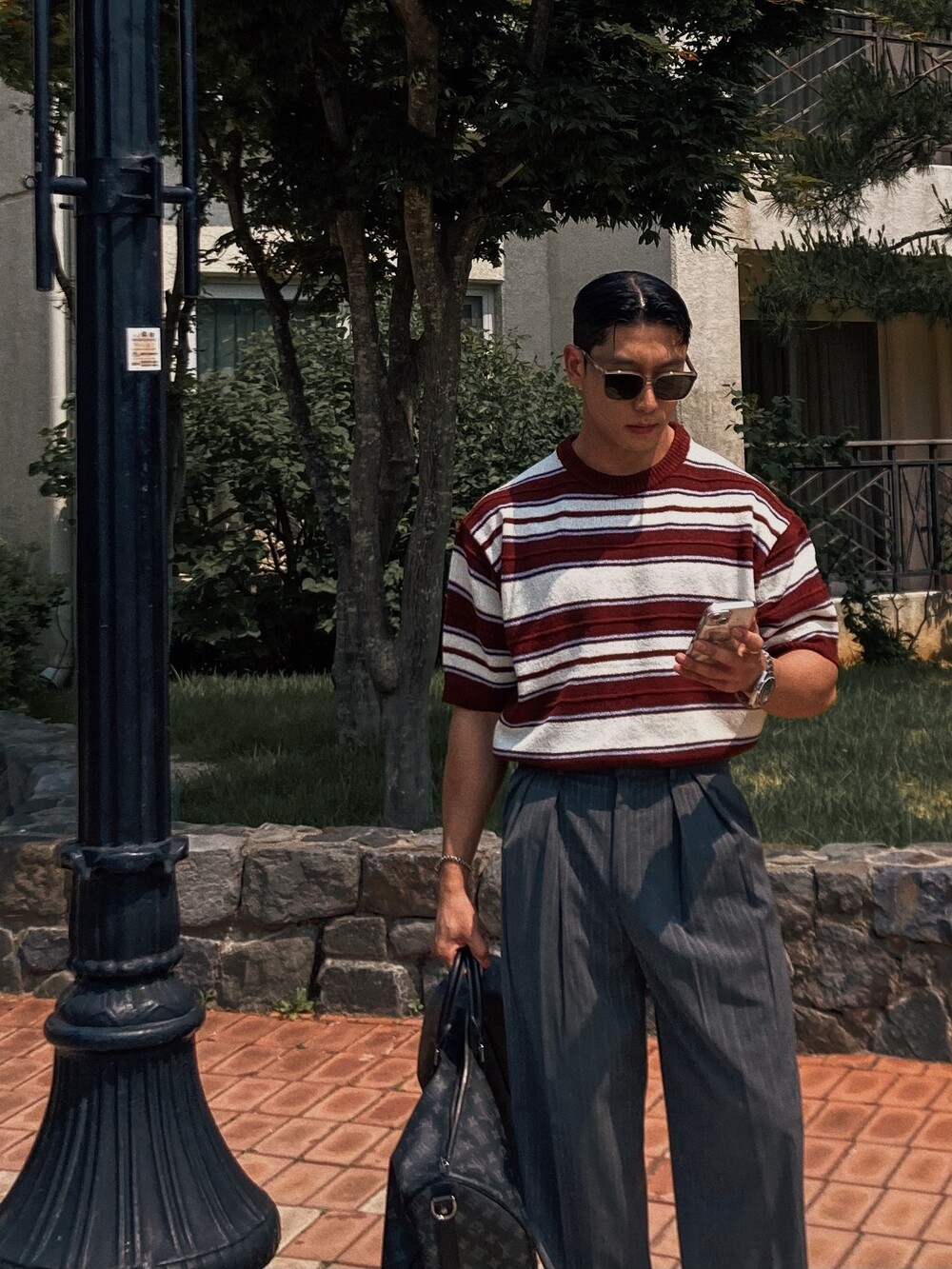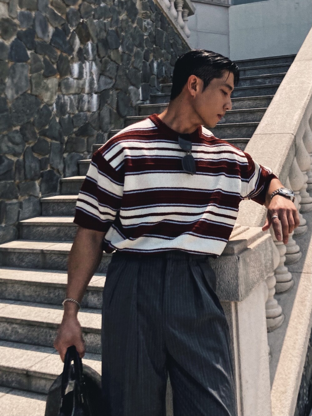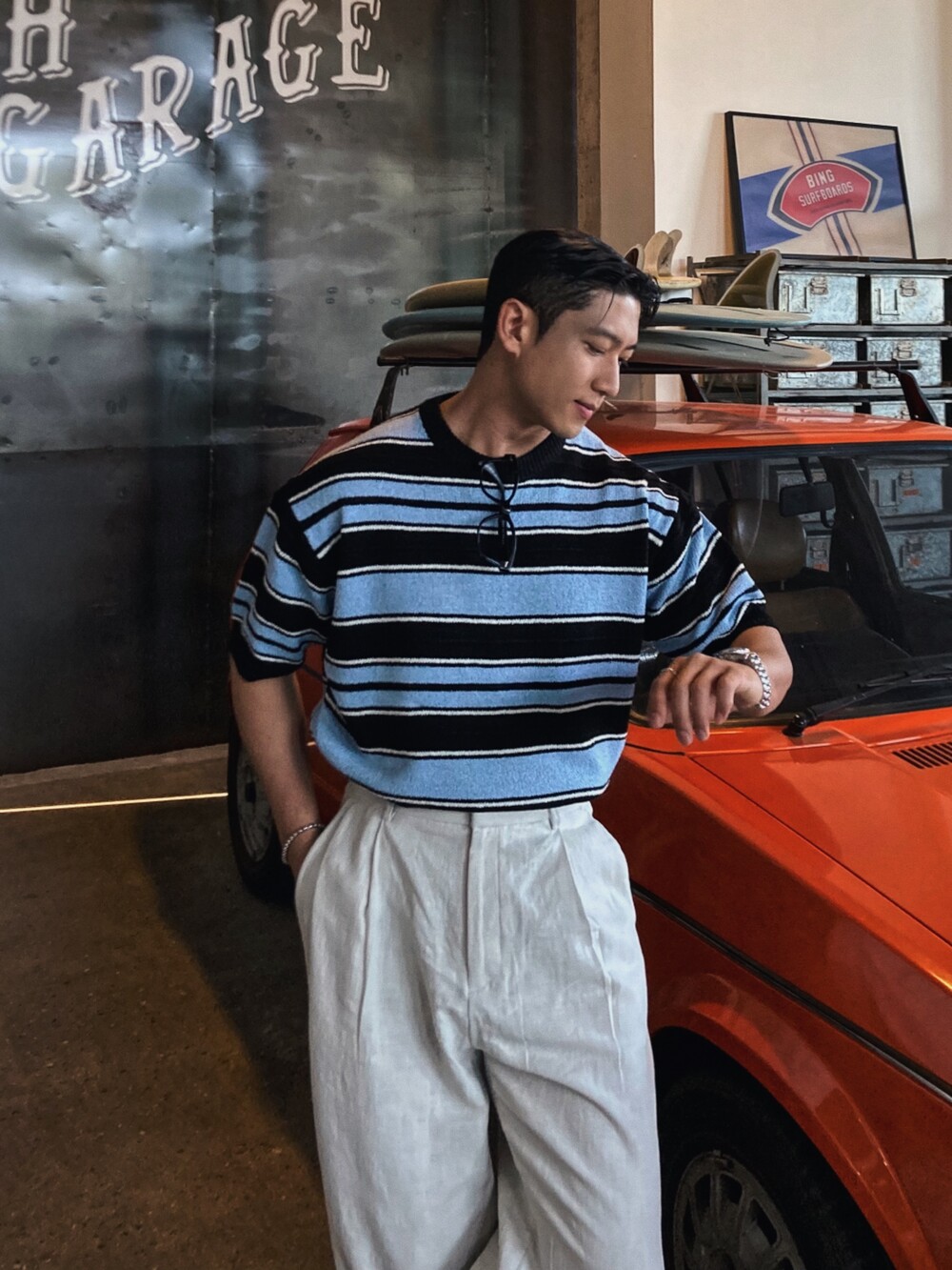 [Tomtyler] Wave Stripe Half Knit [3color]