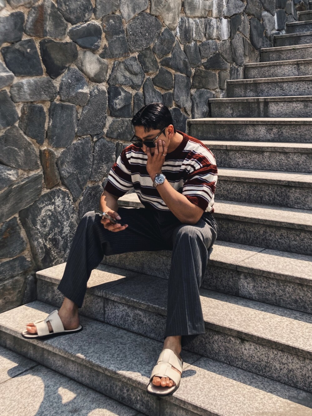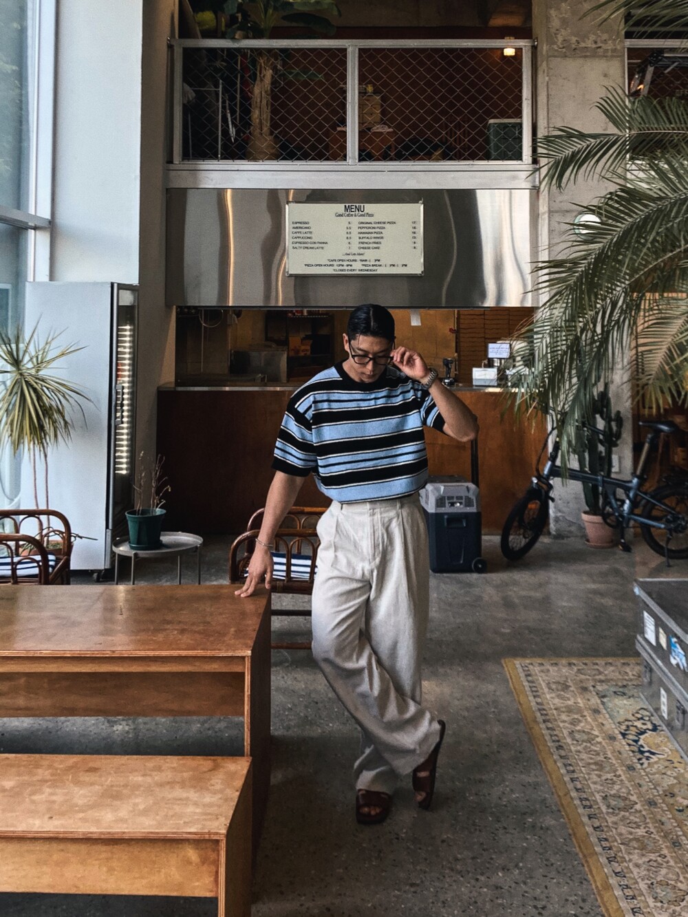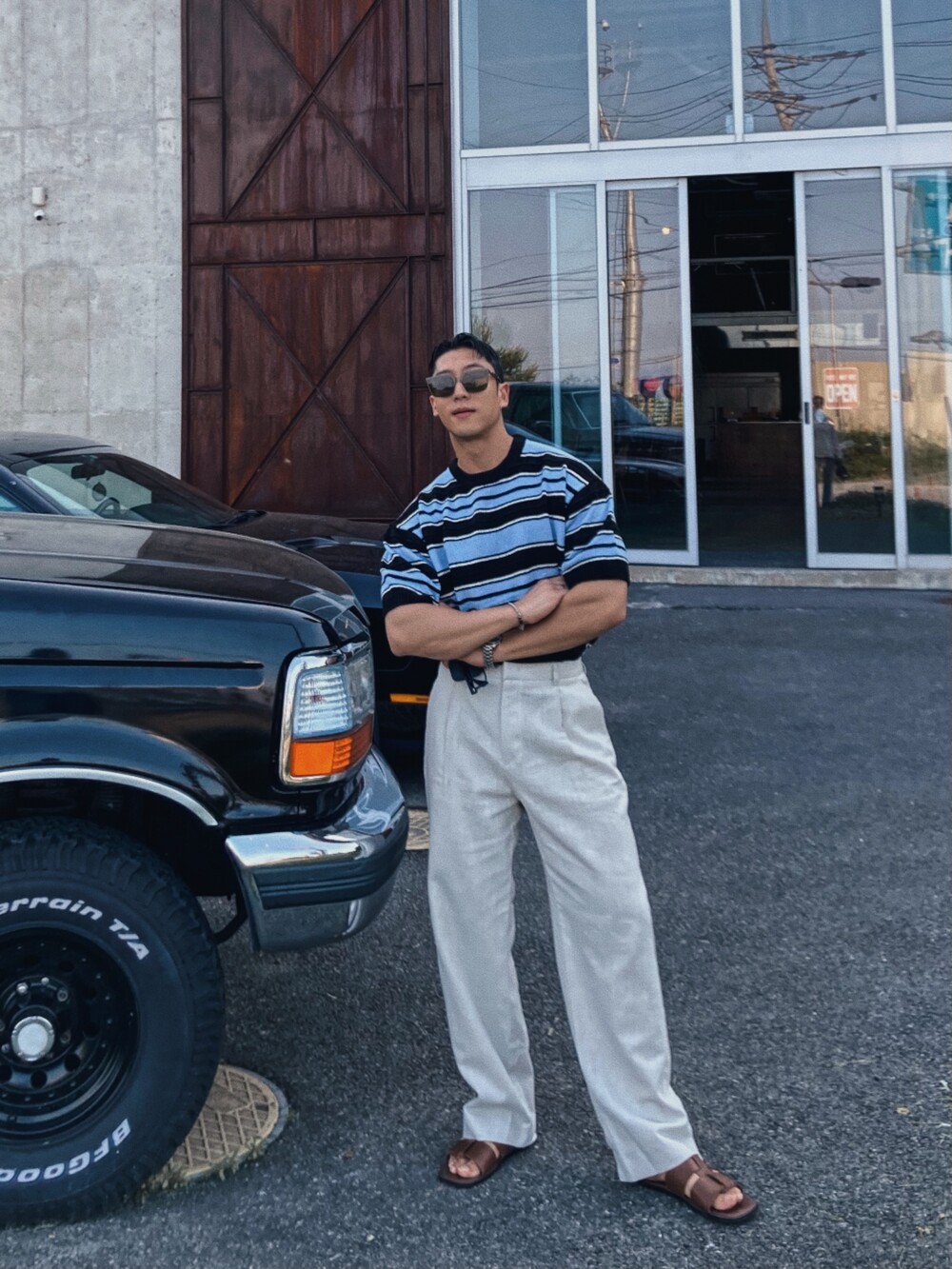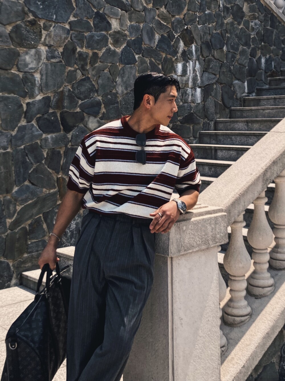 - 굵은 선 얇은 선 스트라이프 배색 포인트