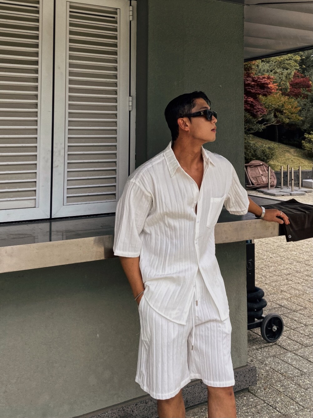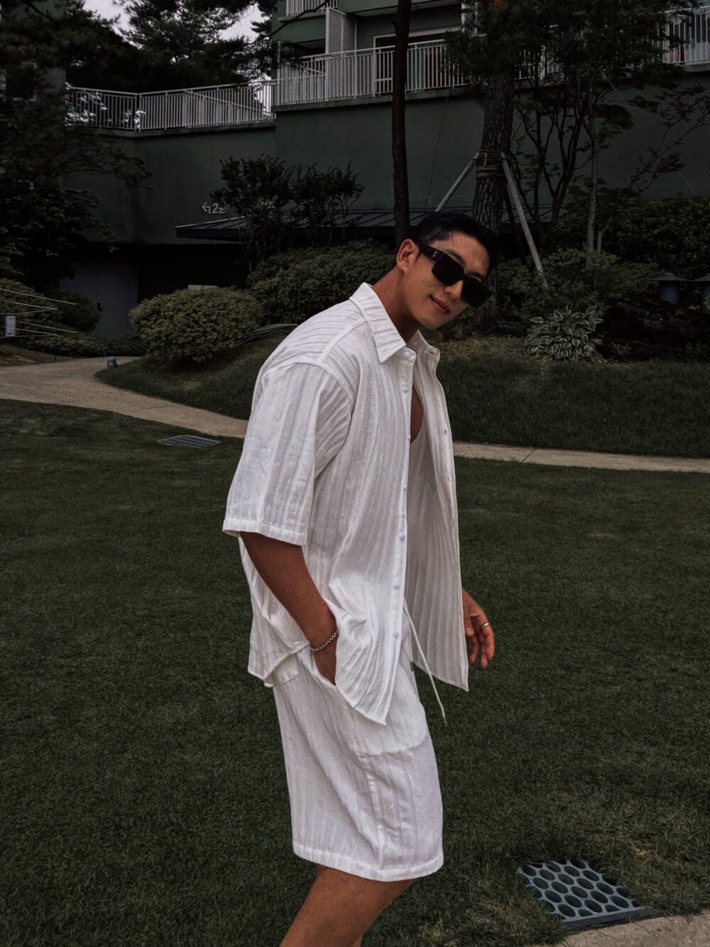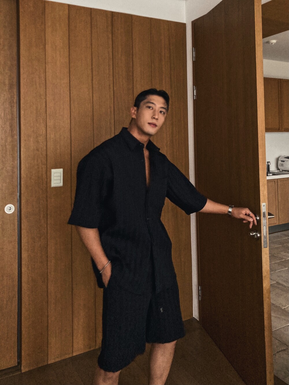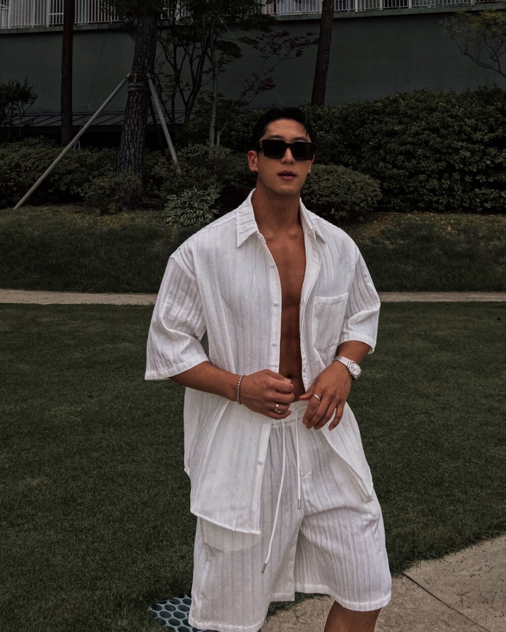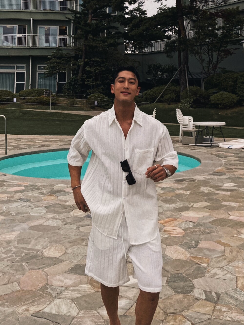 - 잘 잡아주는 원단감으로 몸이 커보이는 핏