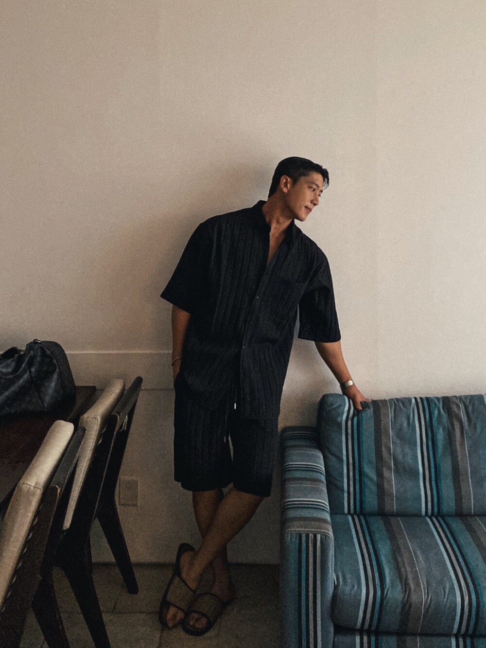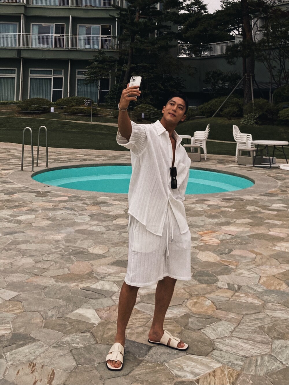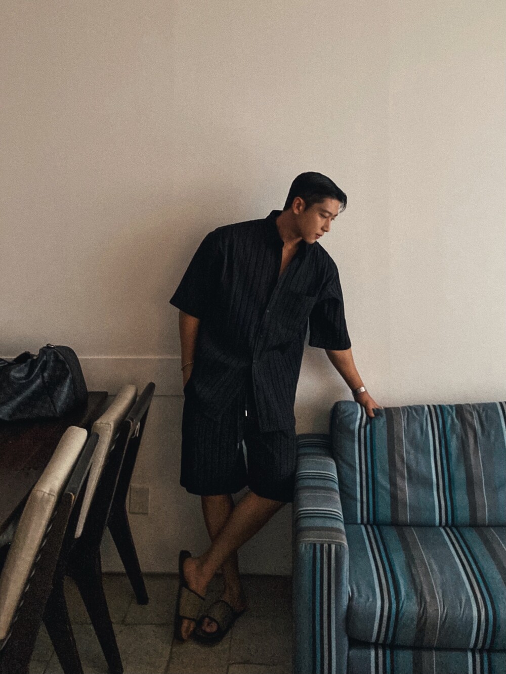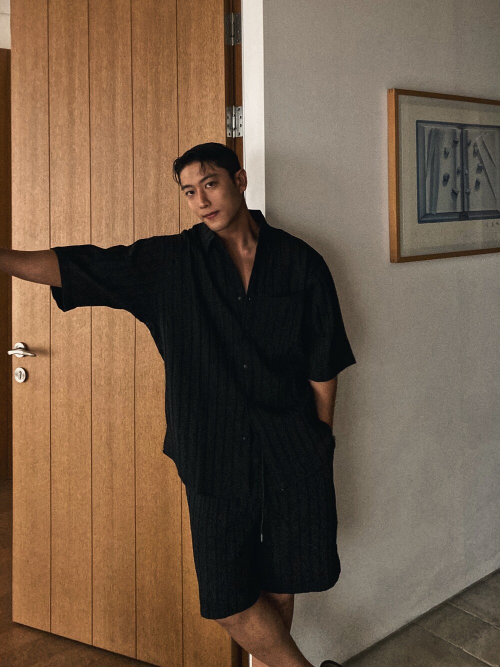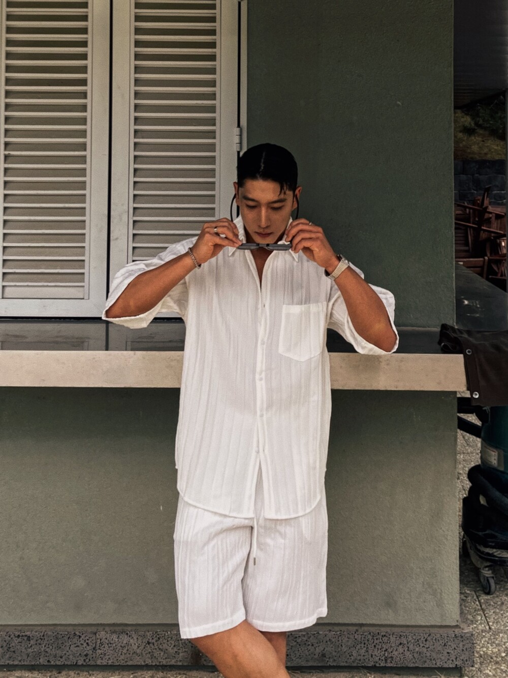 - 잘 잡아주는 원단감으로 몸이 커보이는 핏