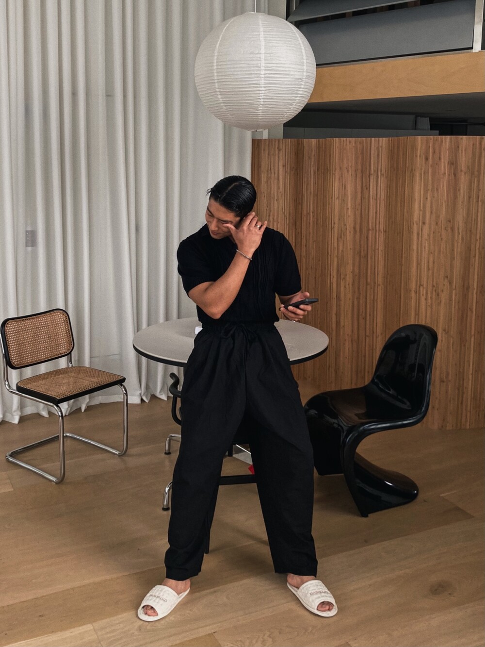 총장 101cm l 허리(전체 밴딩) 37cm l 허벅지 37cm l 밑단 27cm