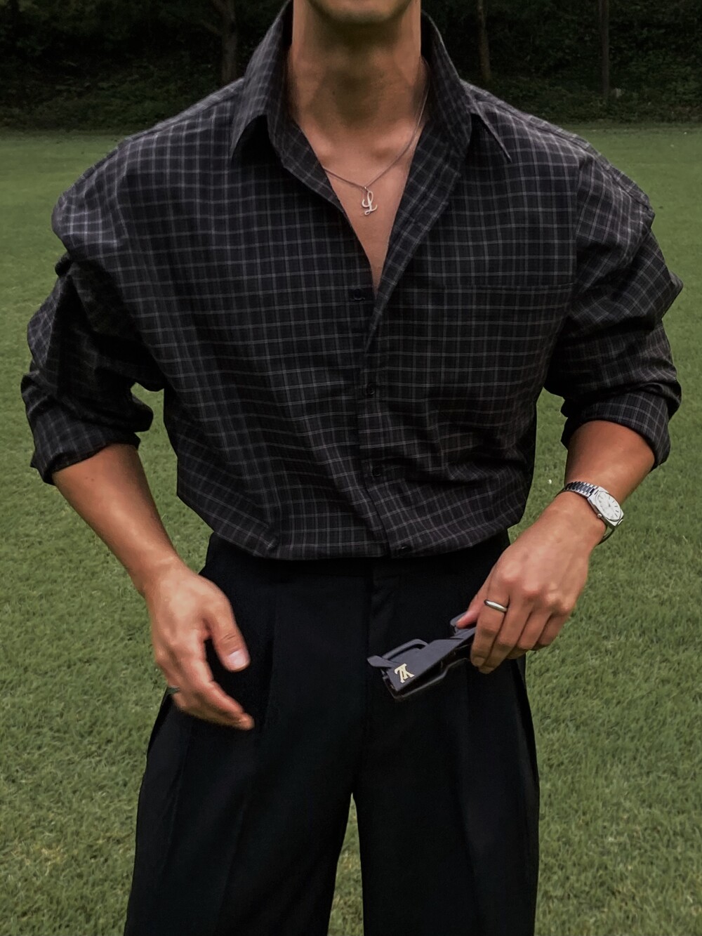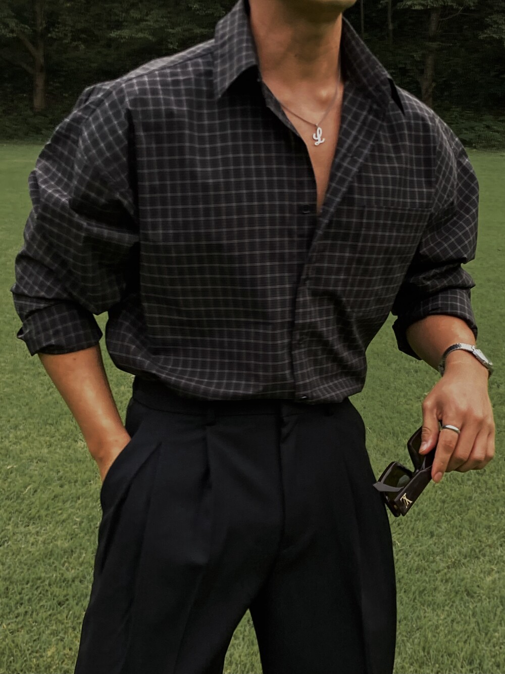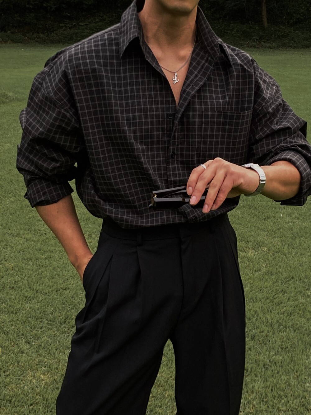 - 사각 체크 패턴 포인트