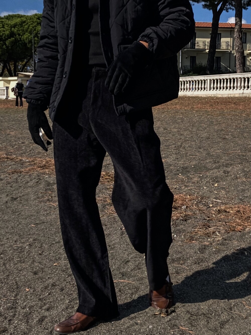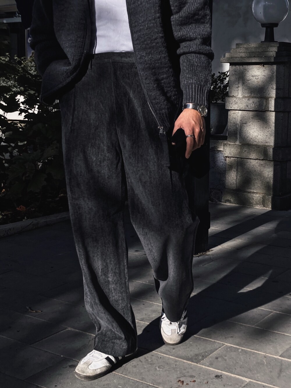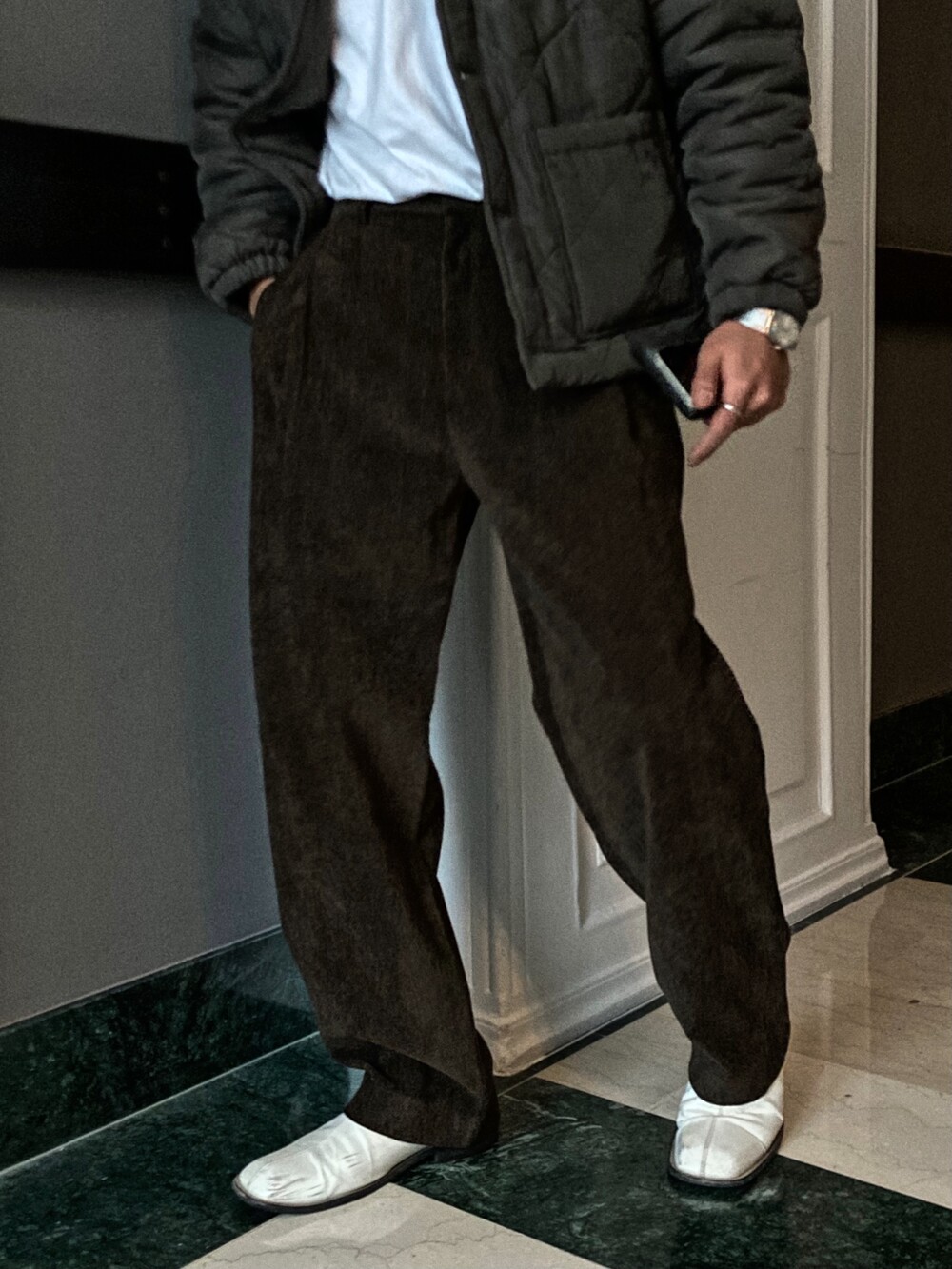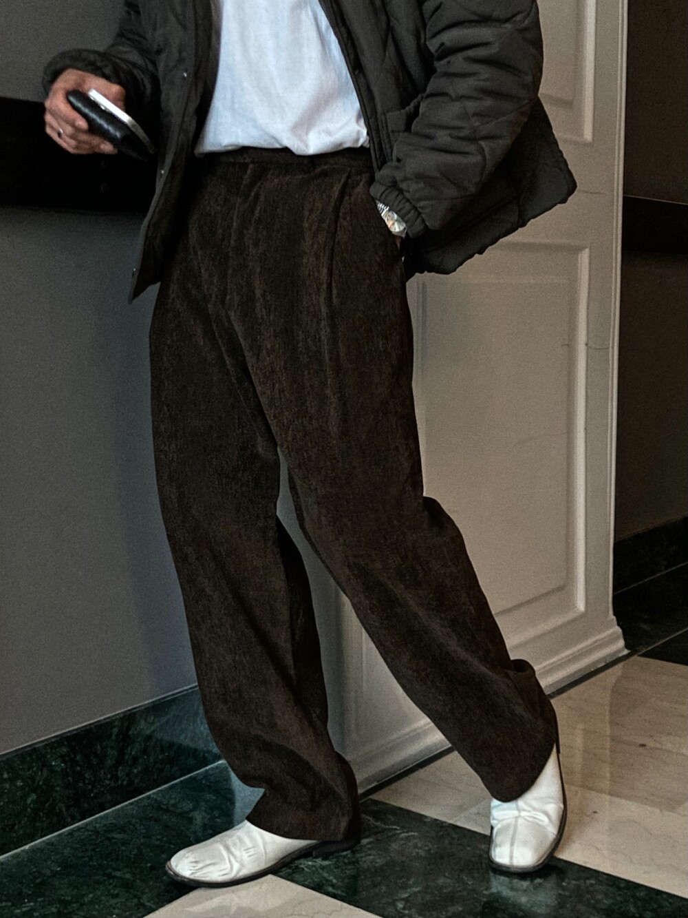 - 사선으로 처리된 잔잔한 골덴 원단감 포인트