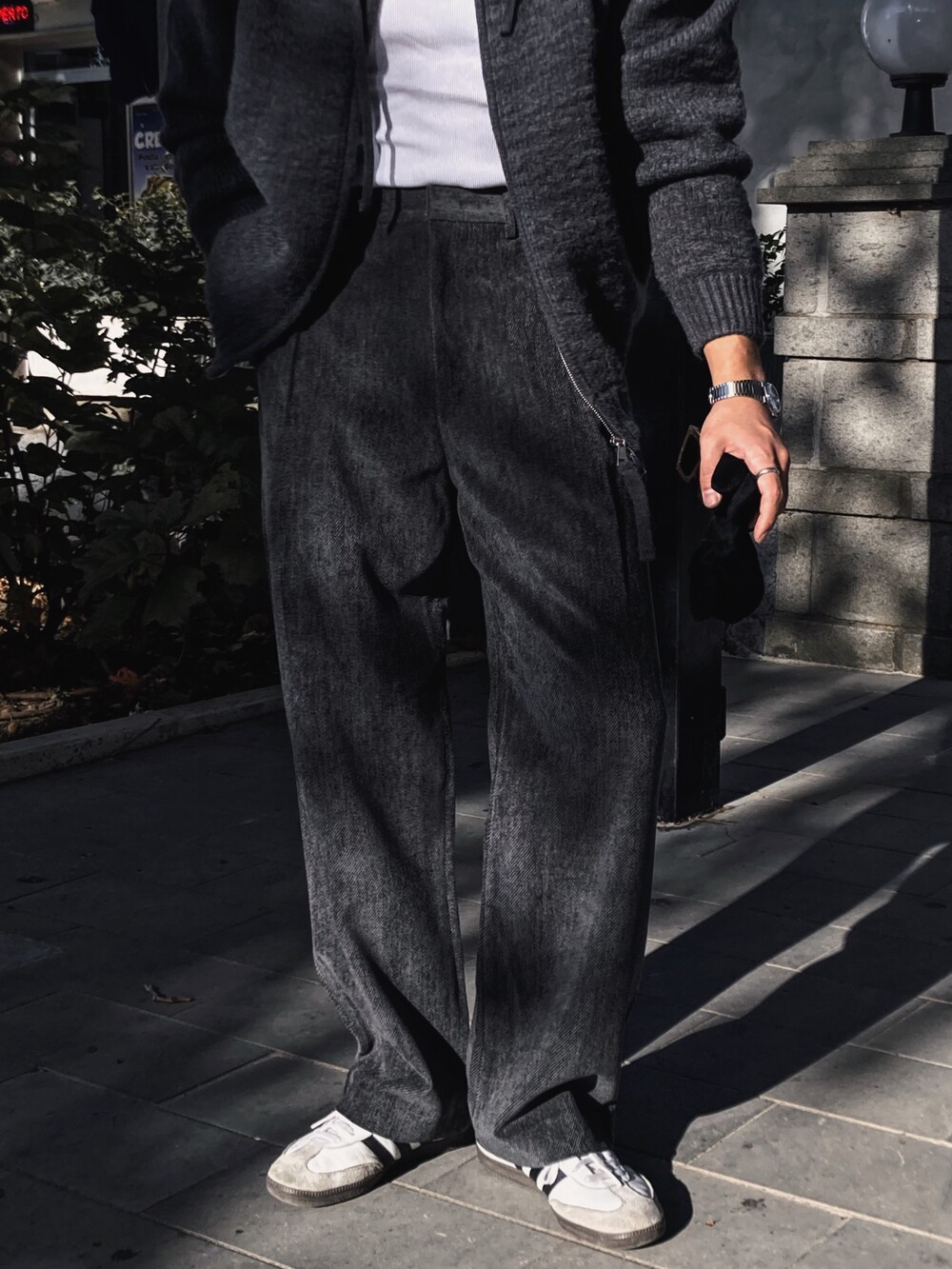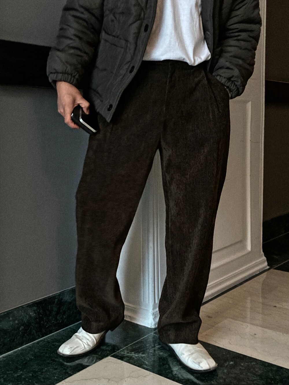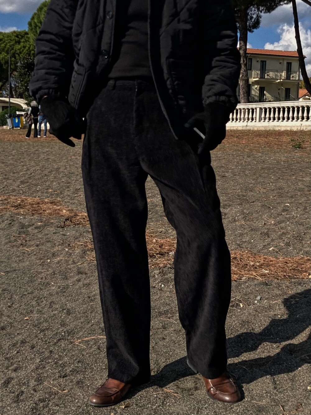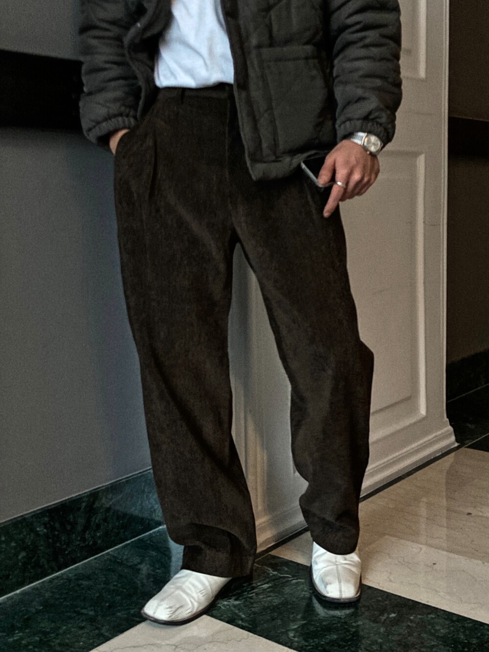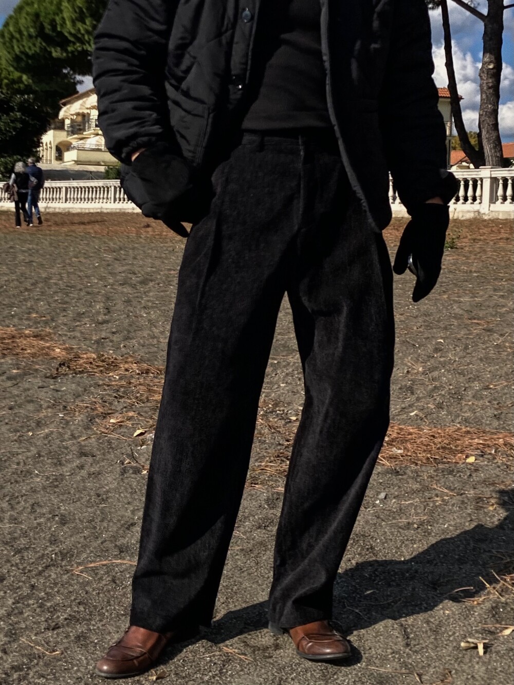 - 사선으로 처리된 잔잔한 골덴 원단감 포인트