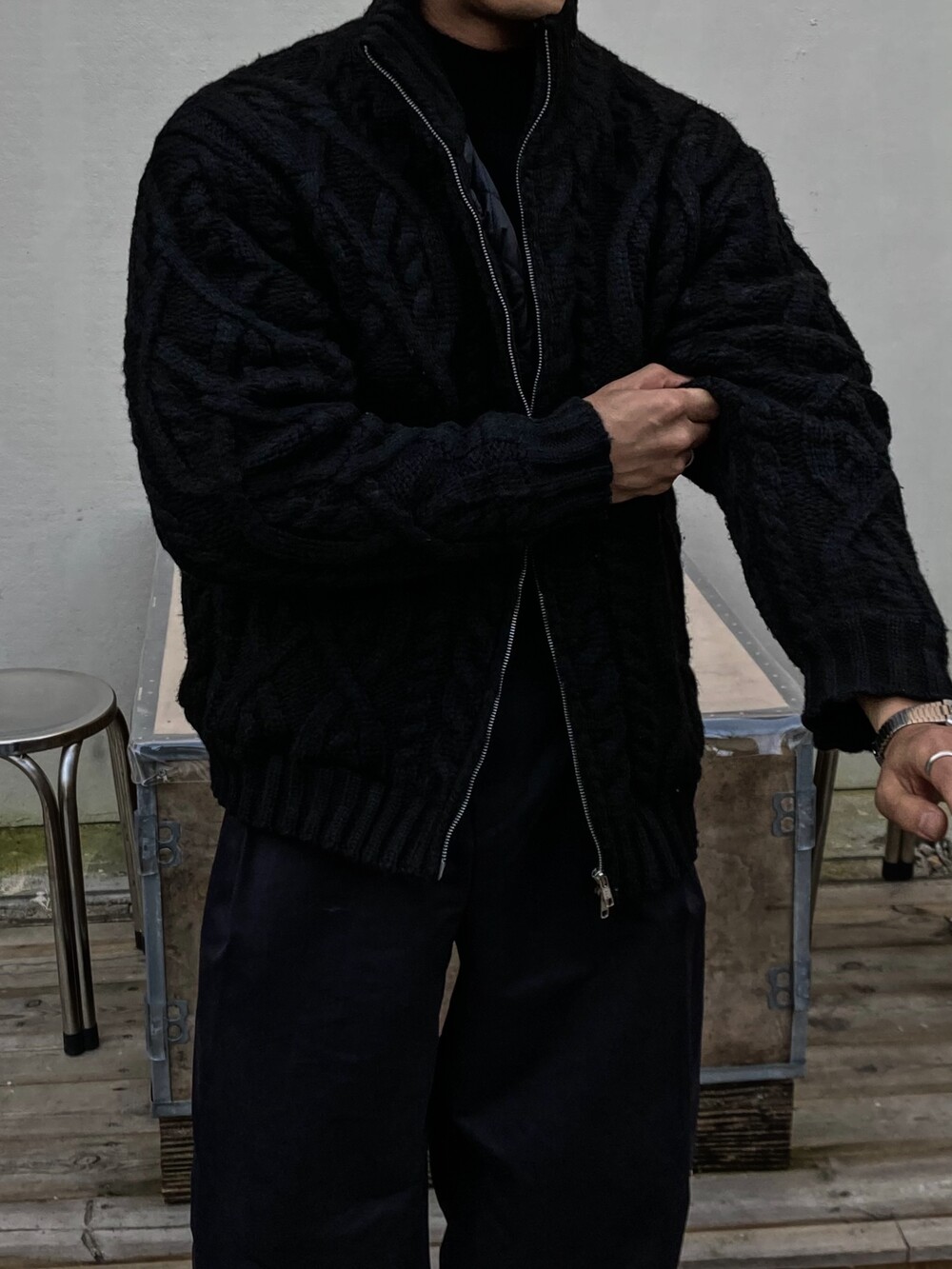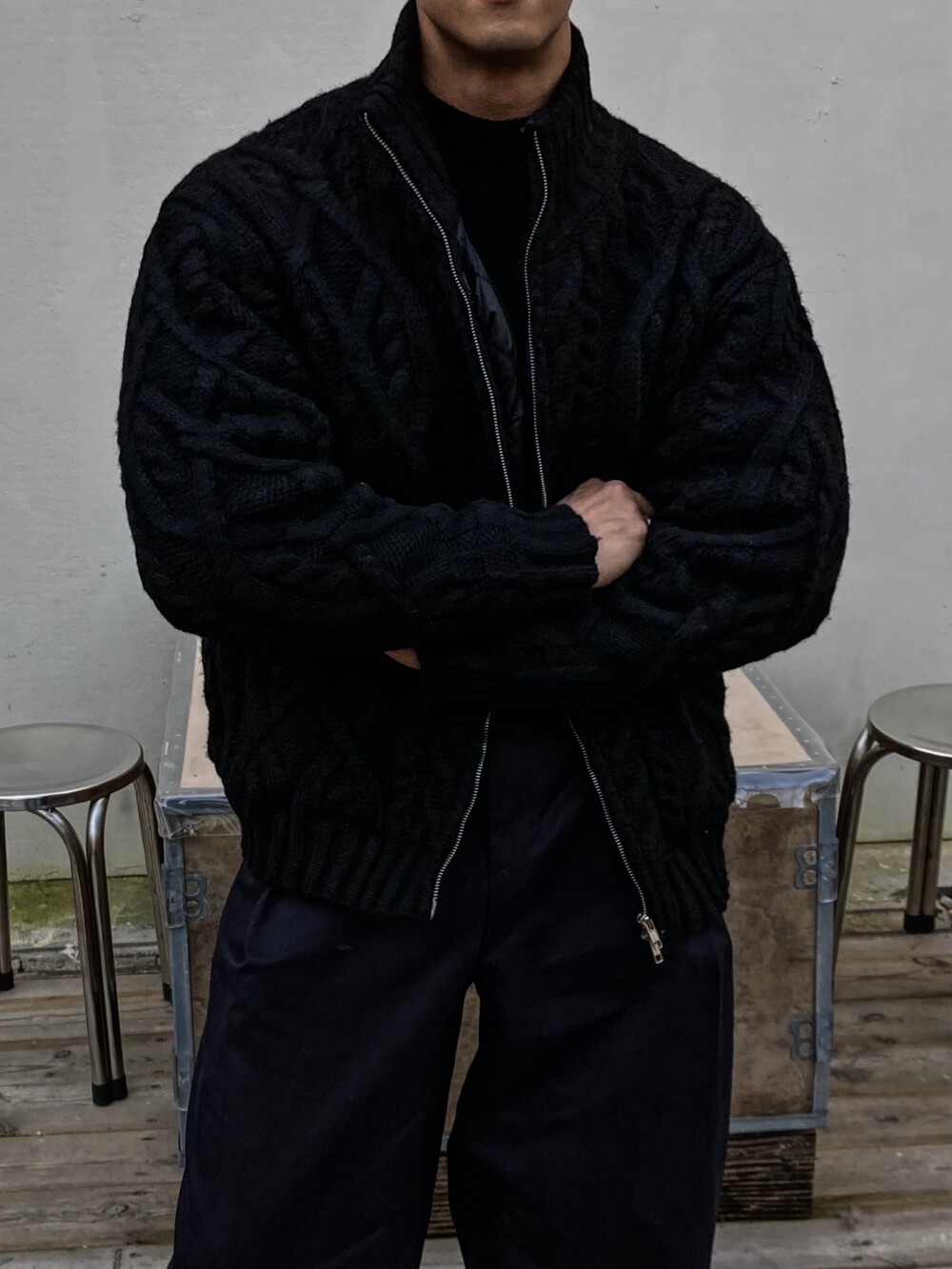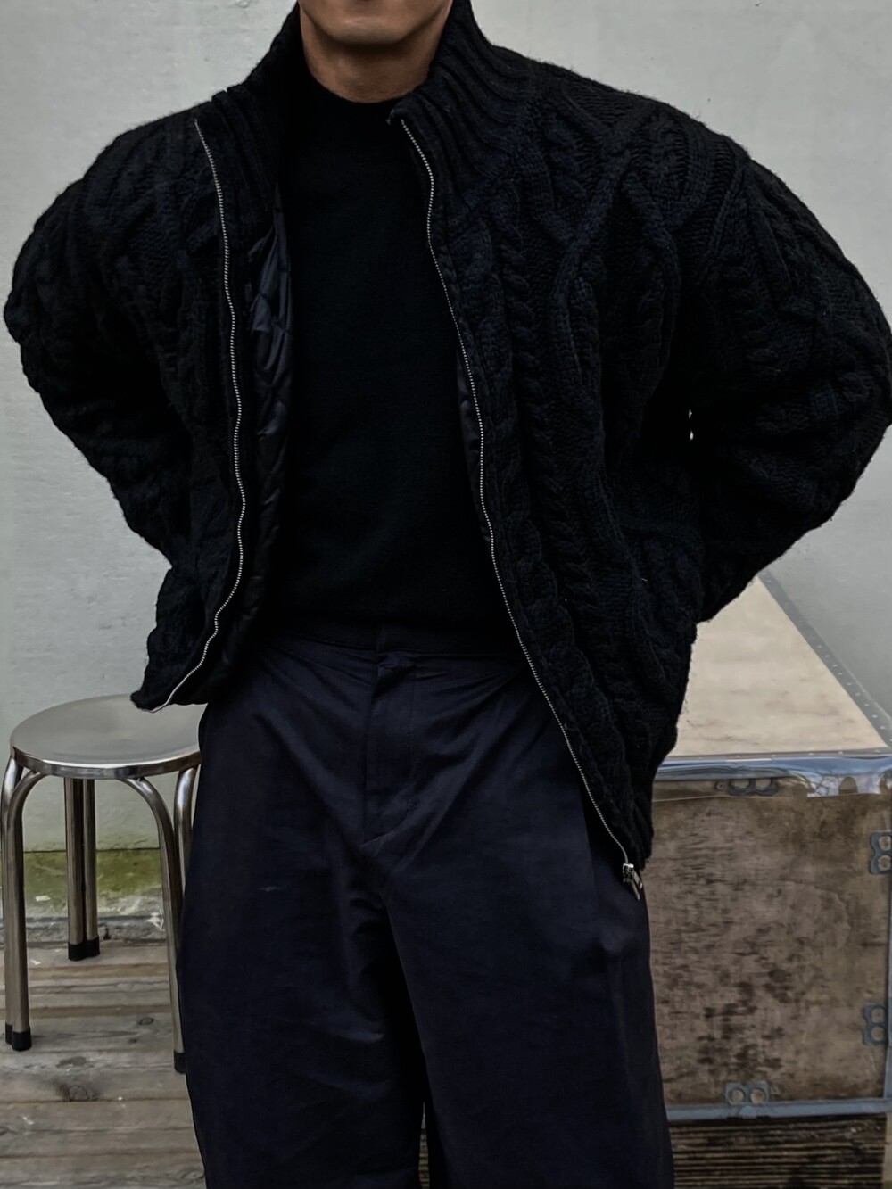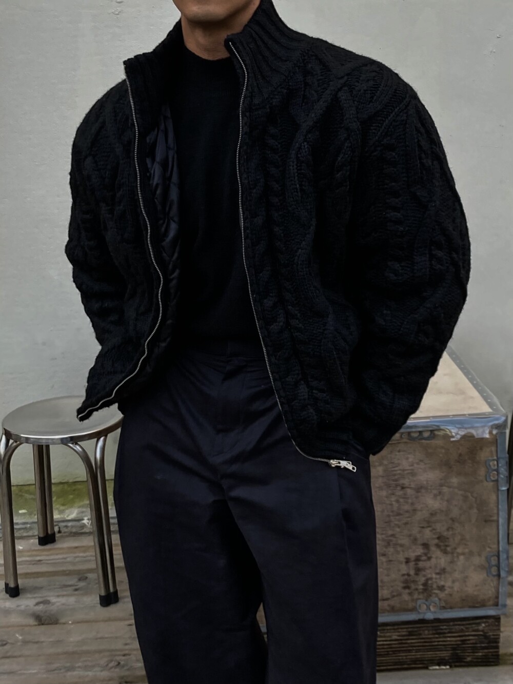 - 패딩 안감의 꽈배기 니트 하이넥 집업