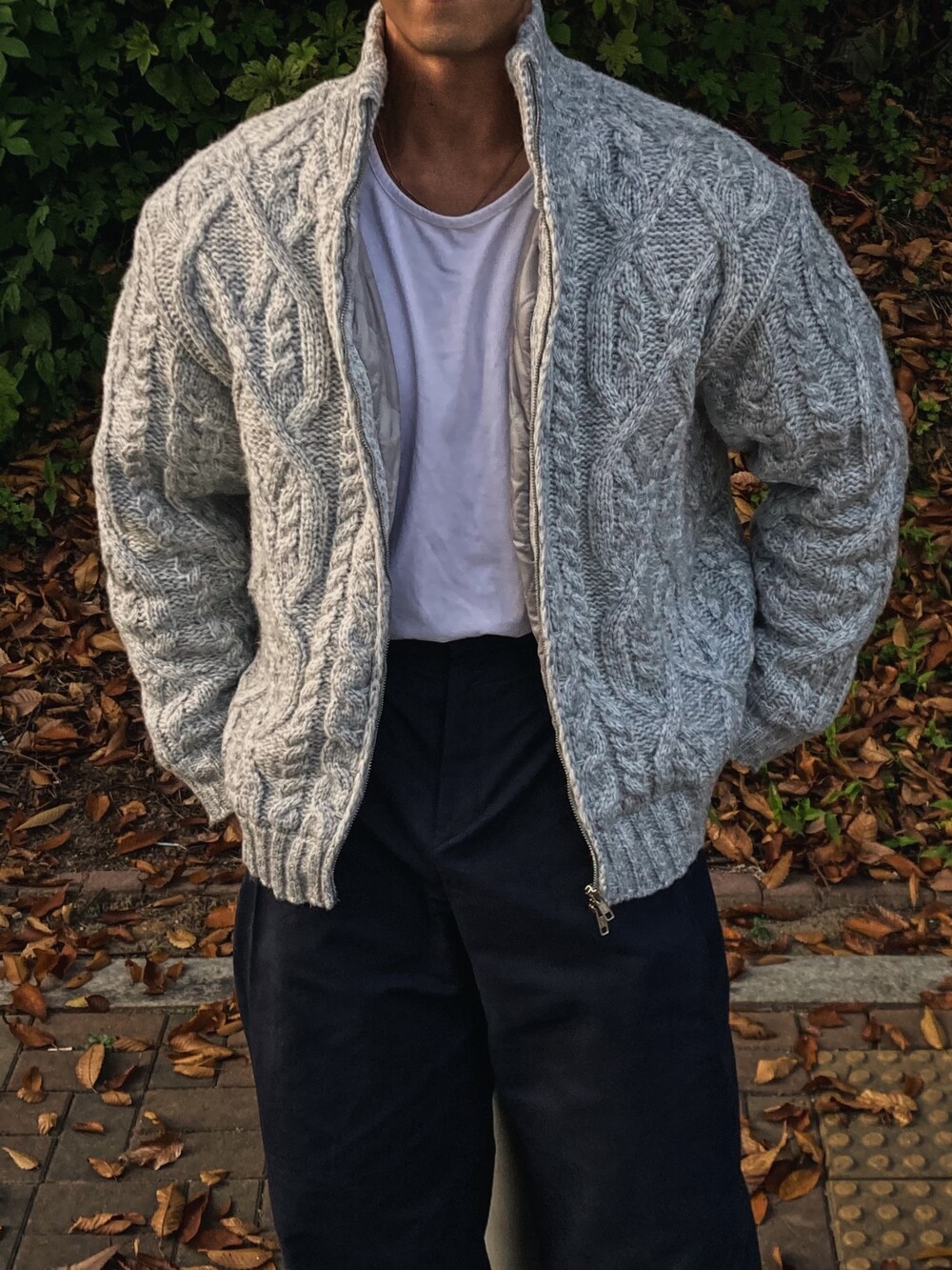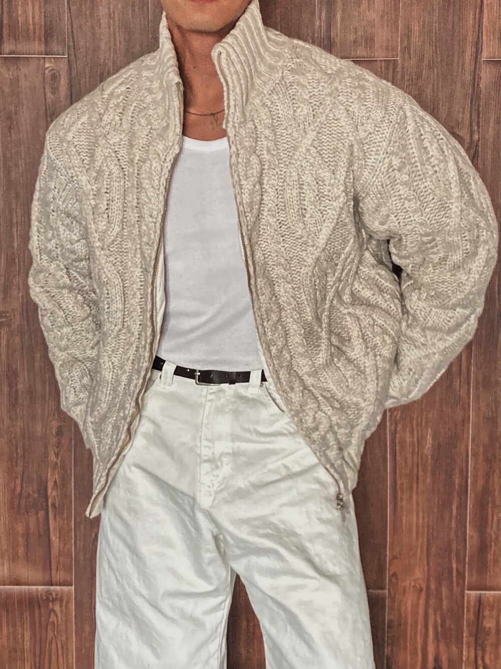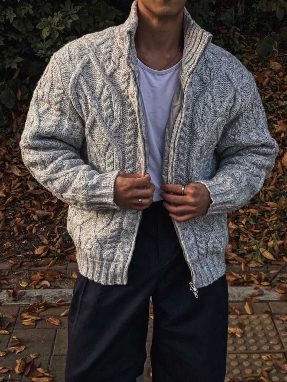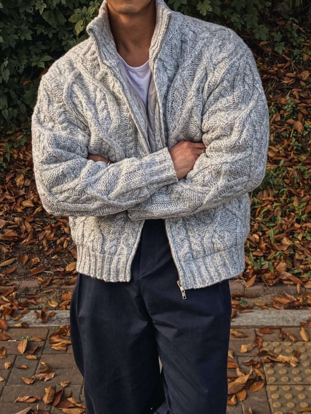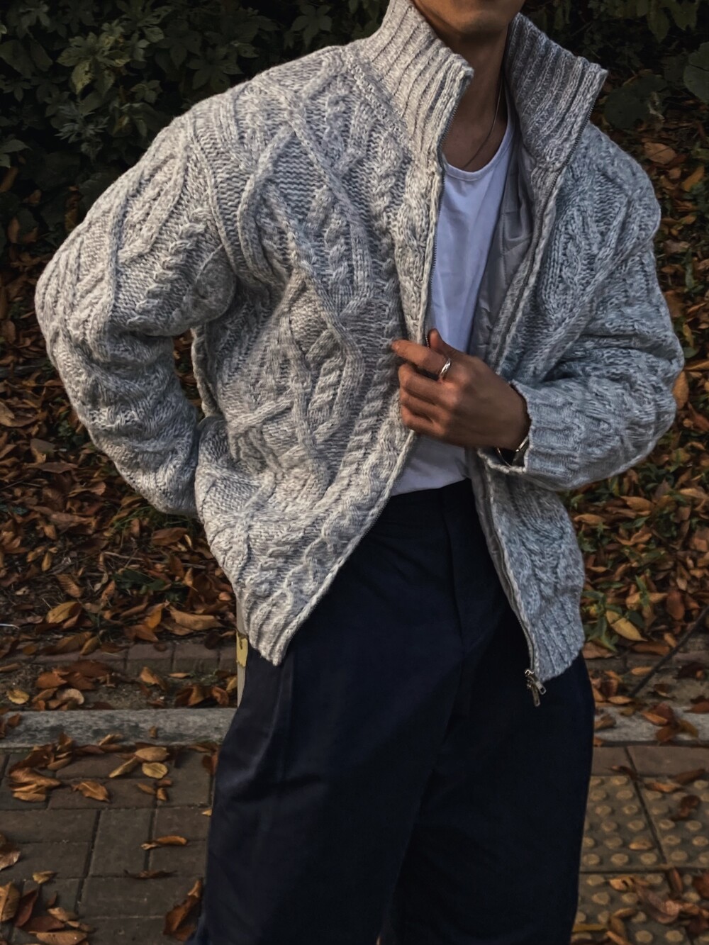 - 패딩 안감의 꽈배기 니트 하이넥 집업