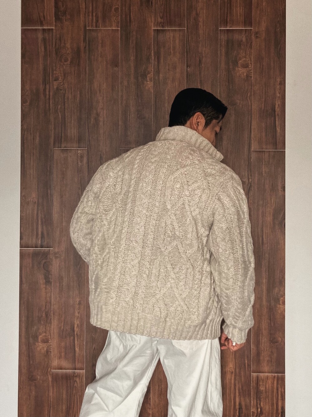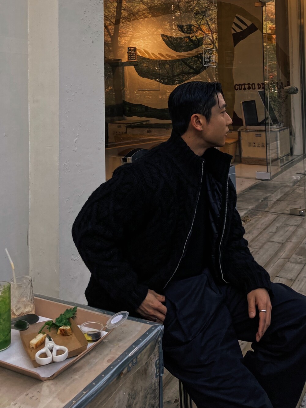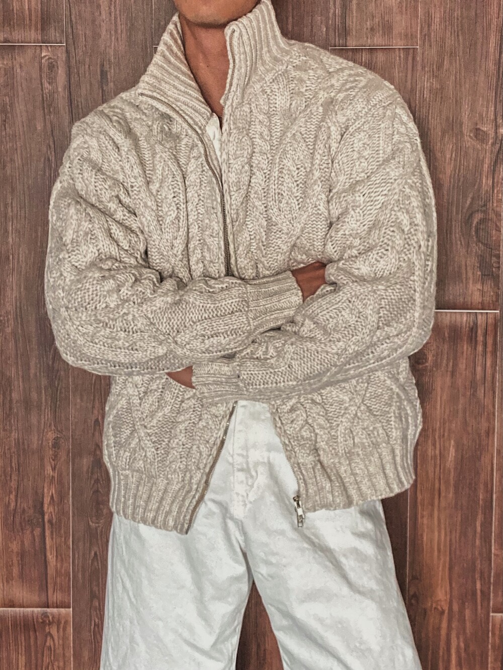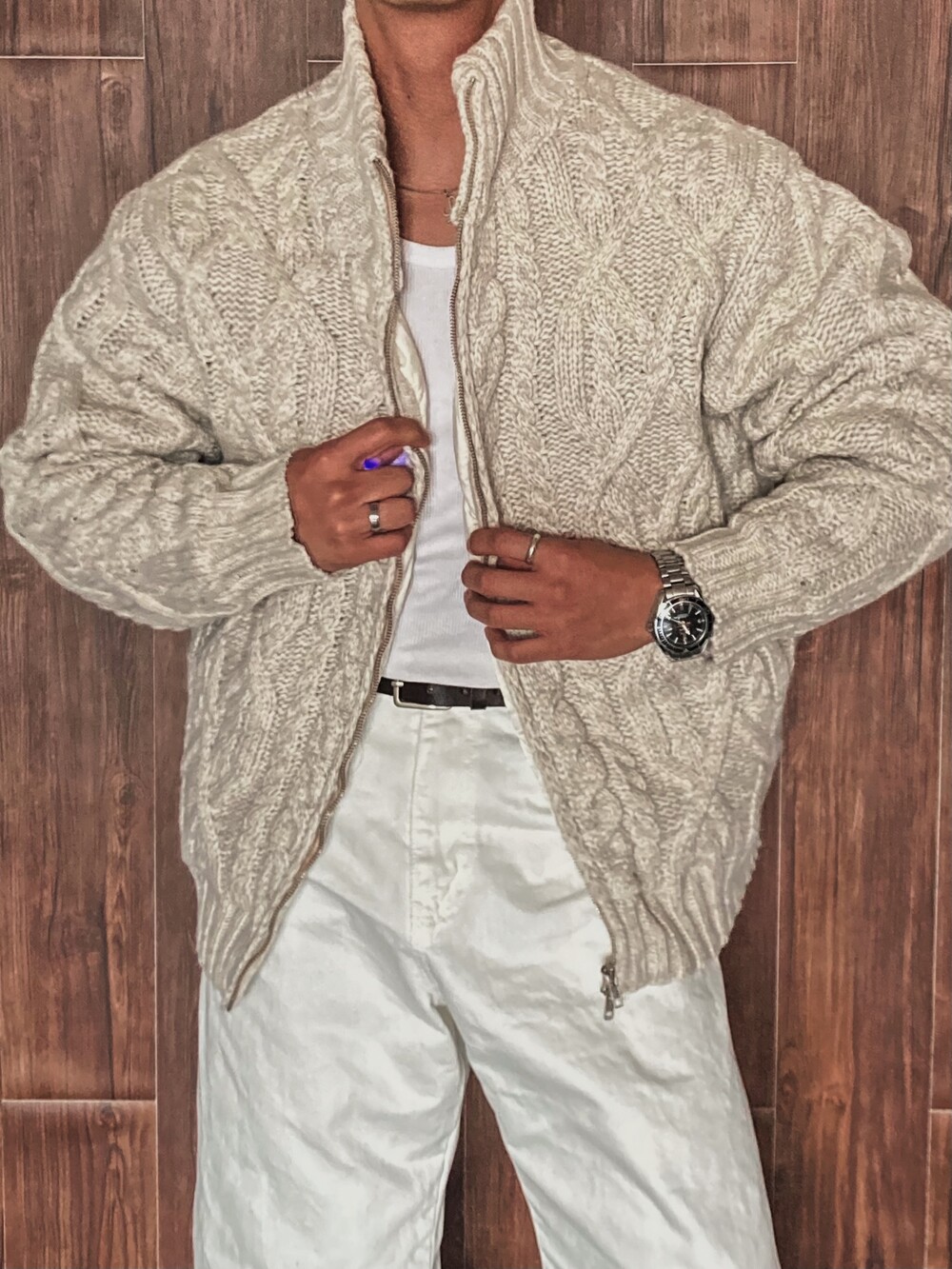 - 패딩 안감의 꽈배기 니트 하이넥 집업