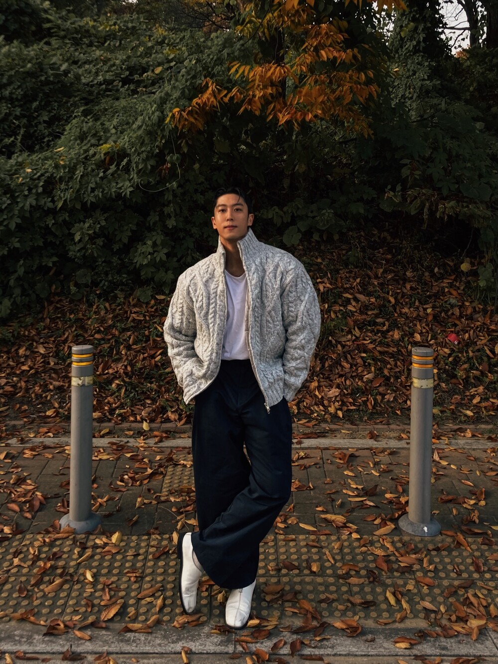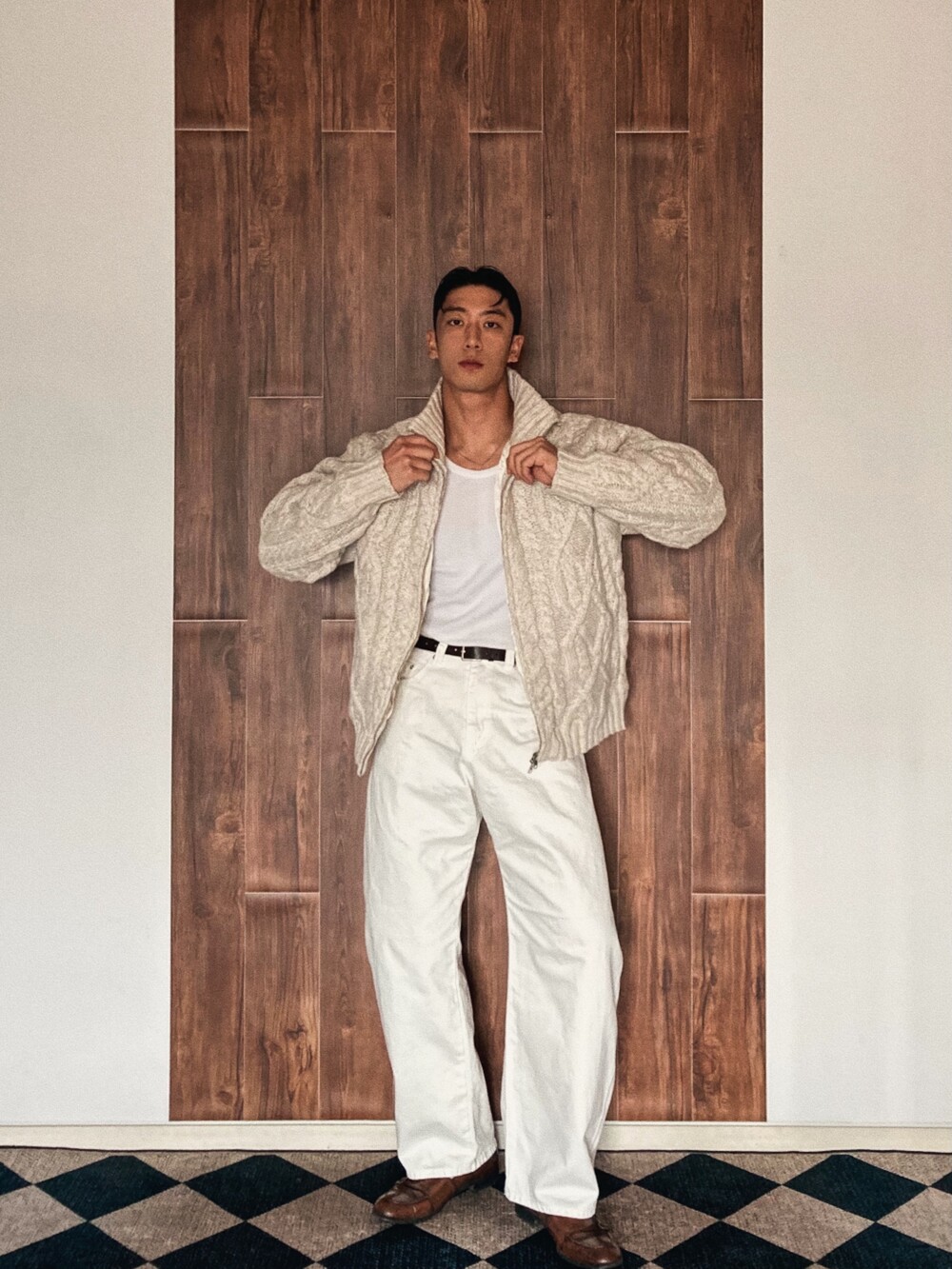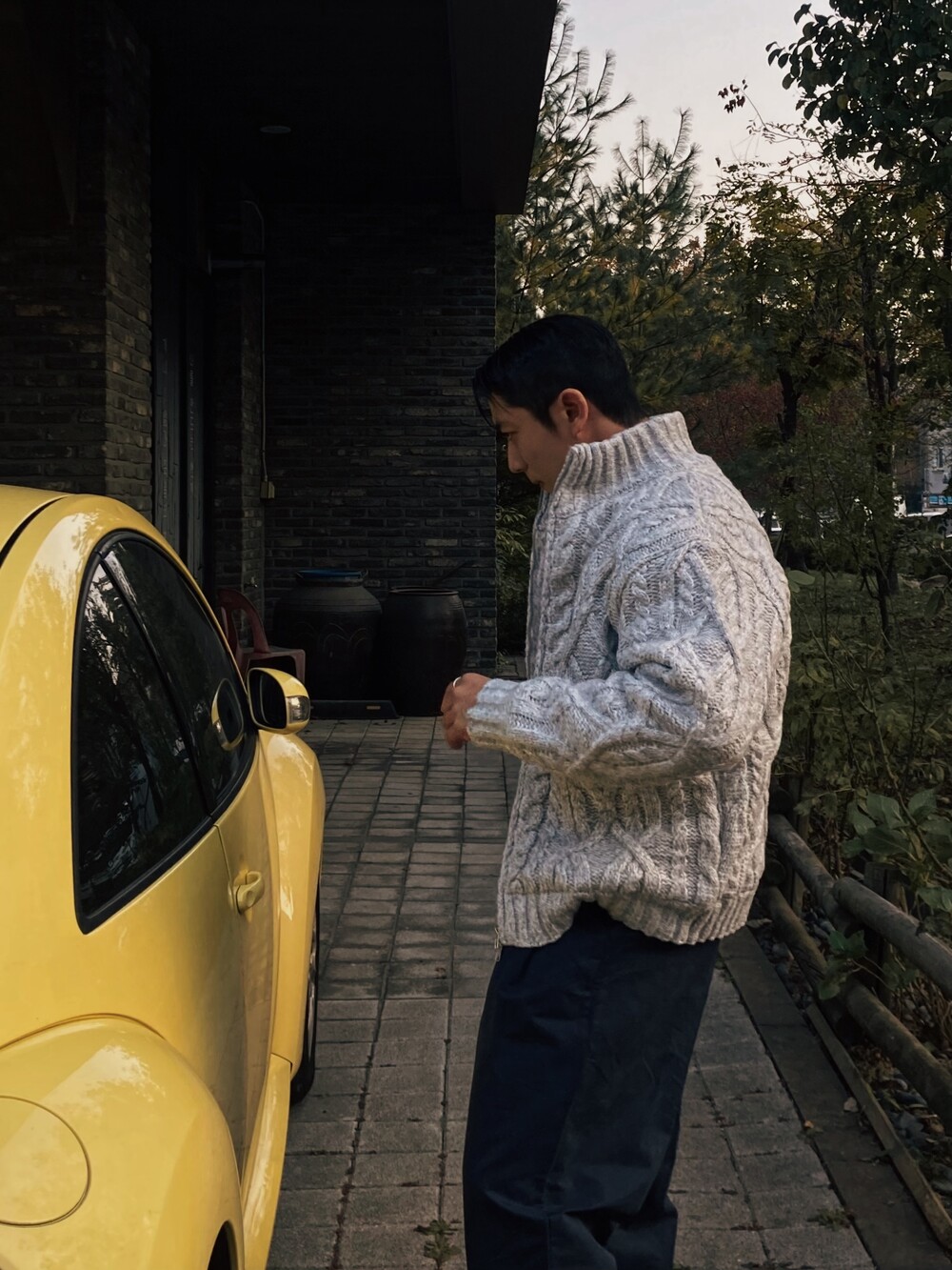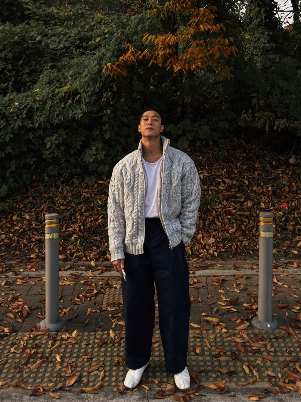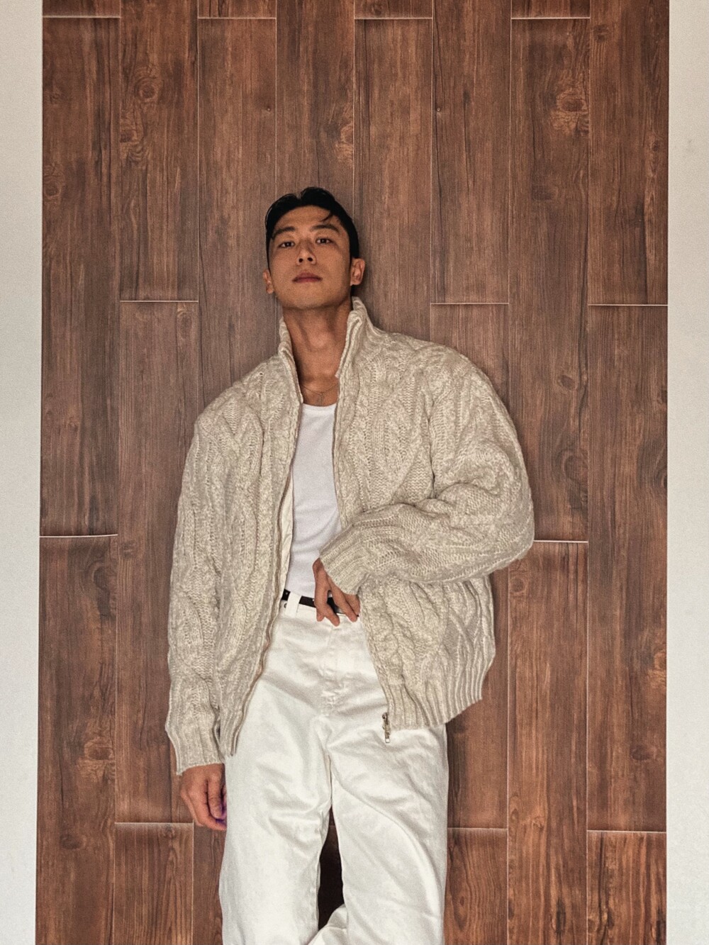 - 패딩 안감의 꽈배기 니트 하이넥 집업