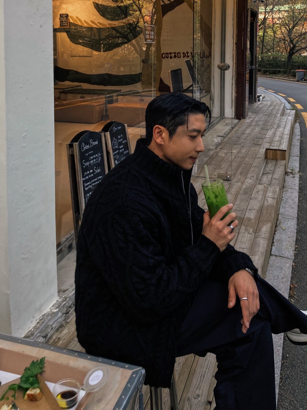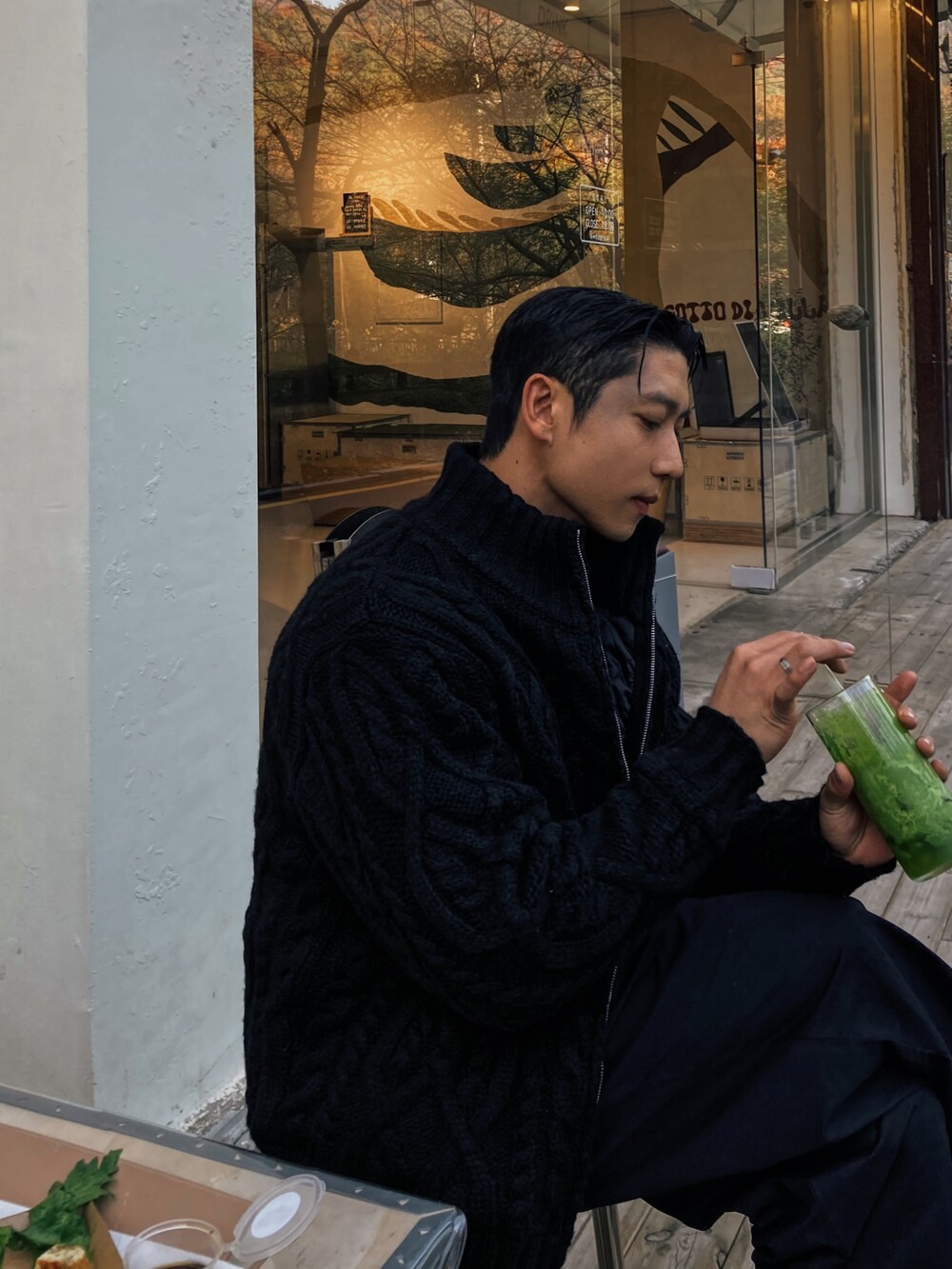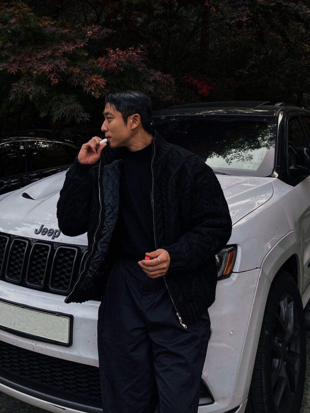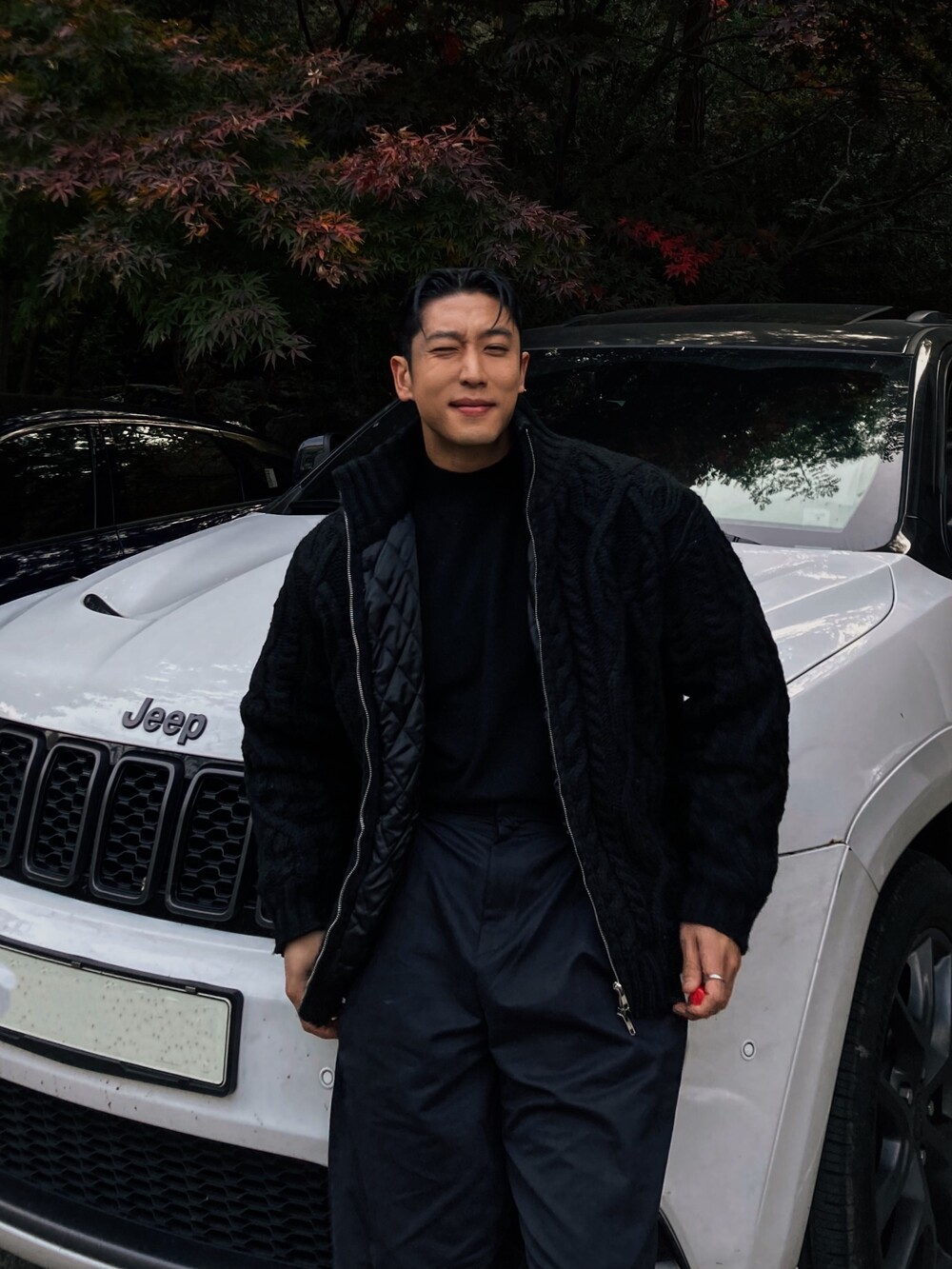 - 패딩 안감의 꽈배기 니트 하이넥 집업