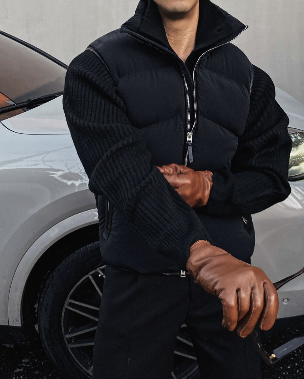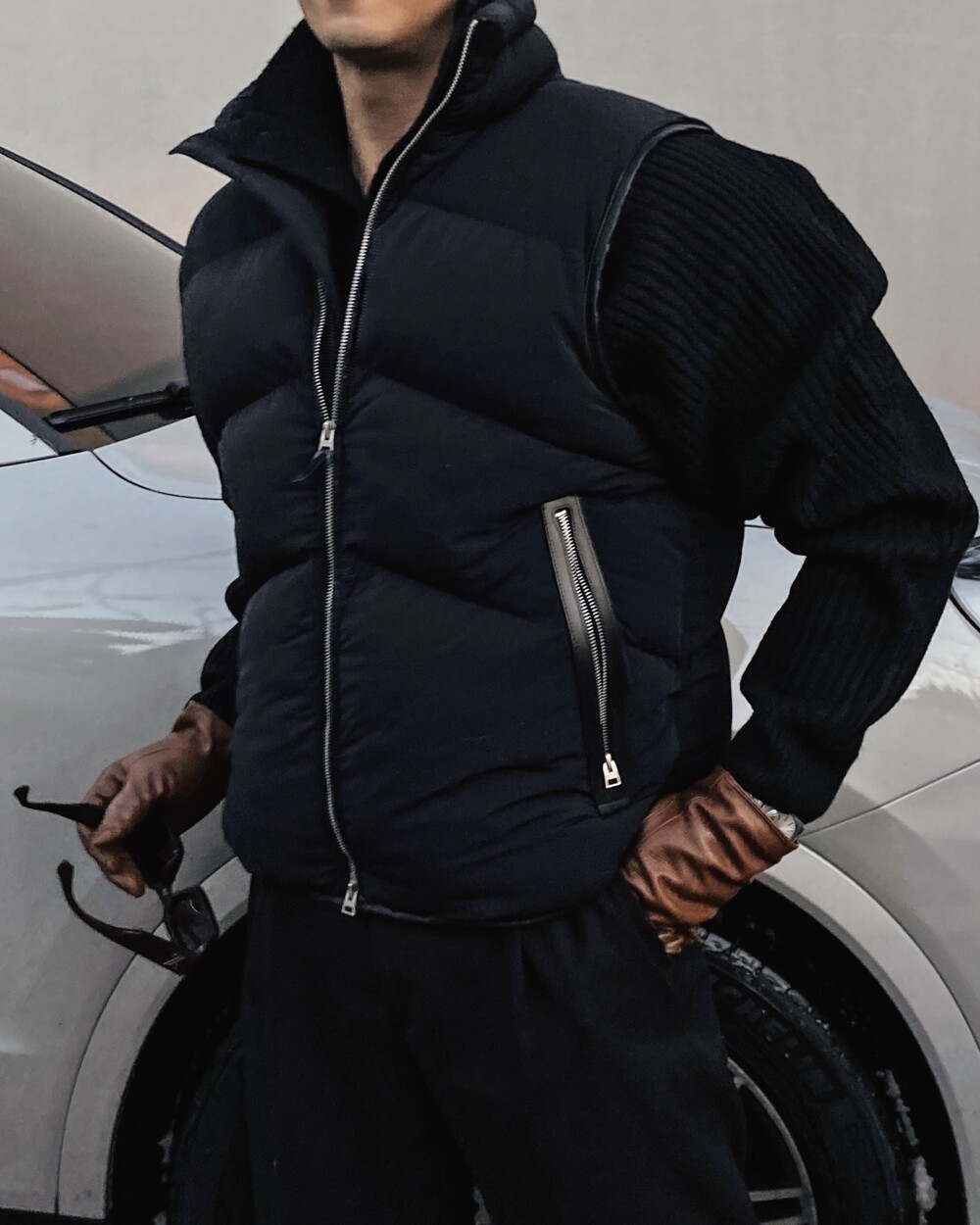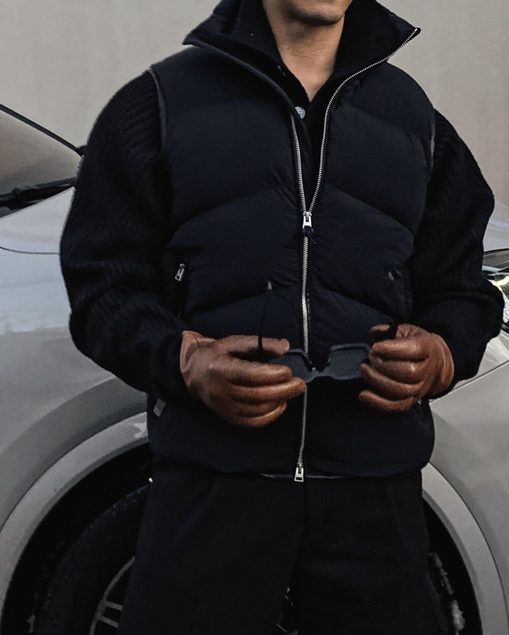 - 소매 끝부분, 지퍼 라인 가죽 마감 포인트