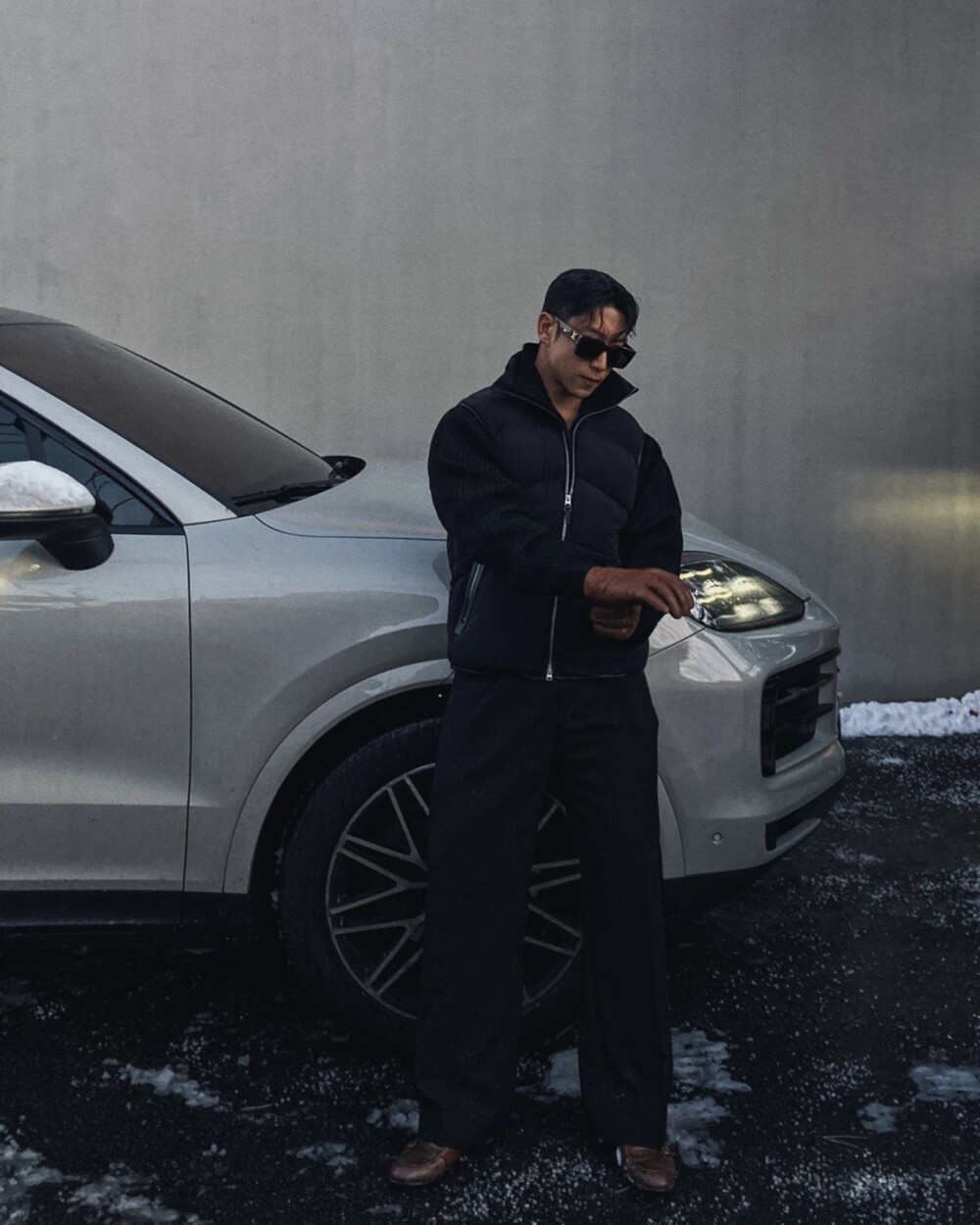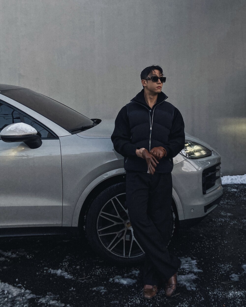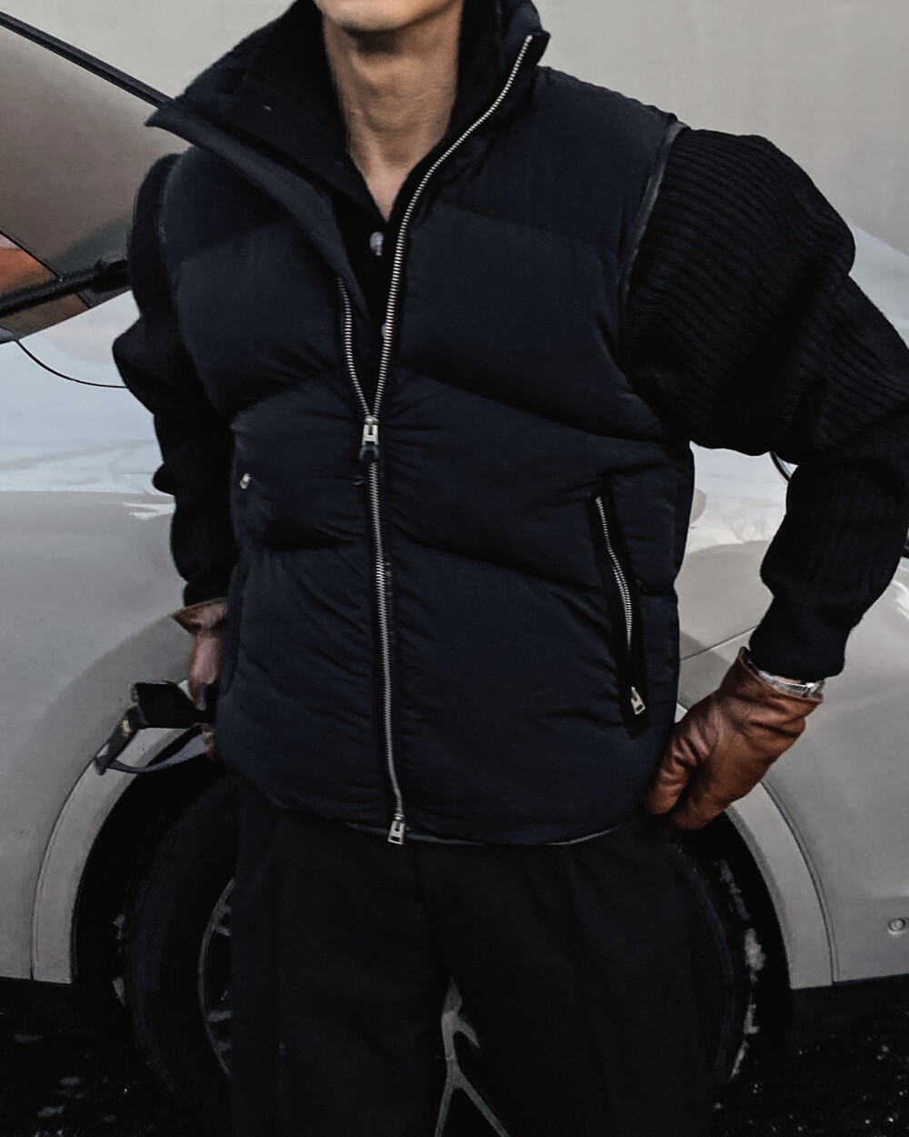 - 소매 끝부분, 지퍼 라인 가죽 마감 포인트