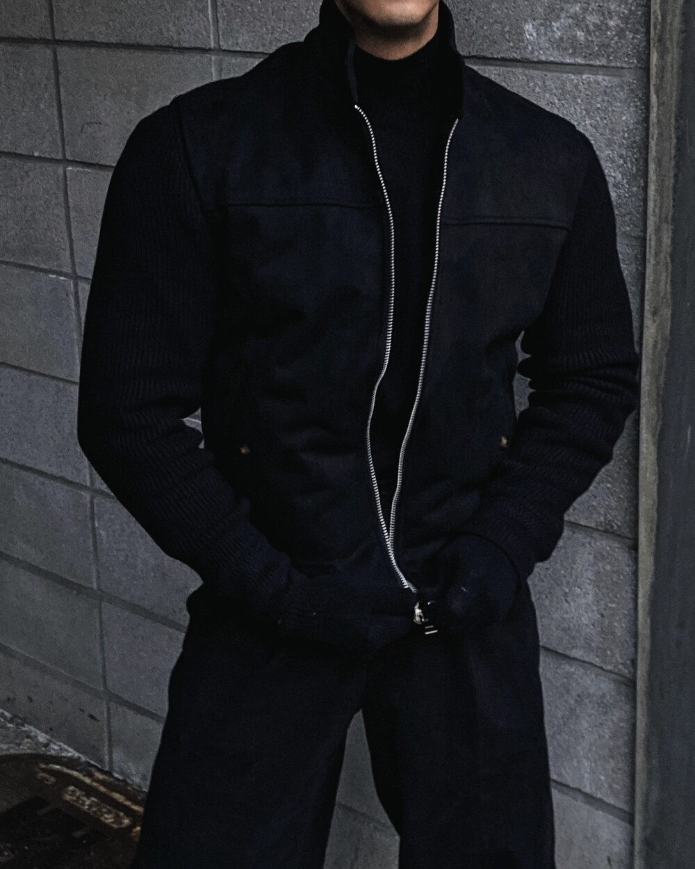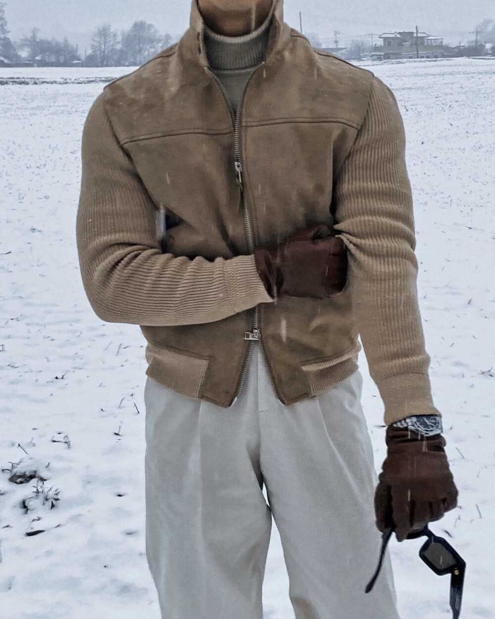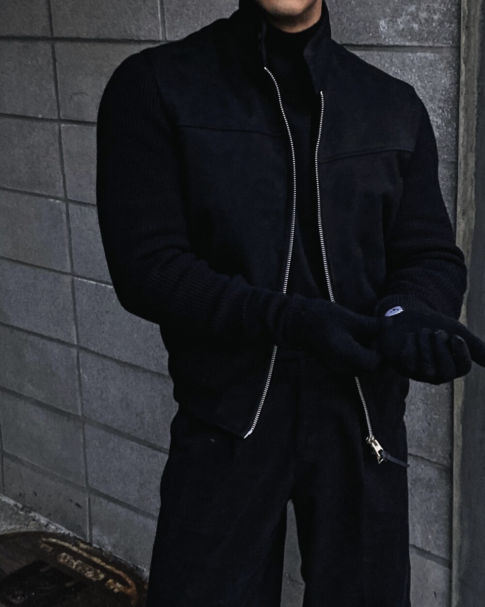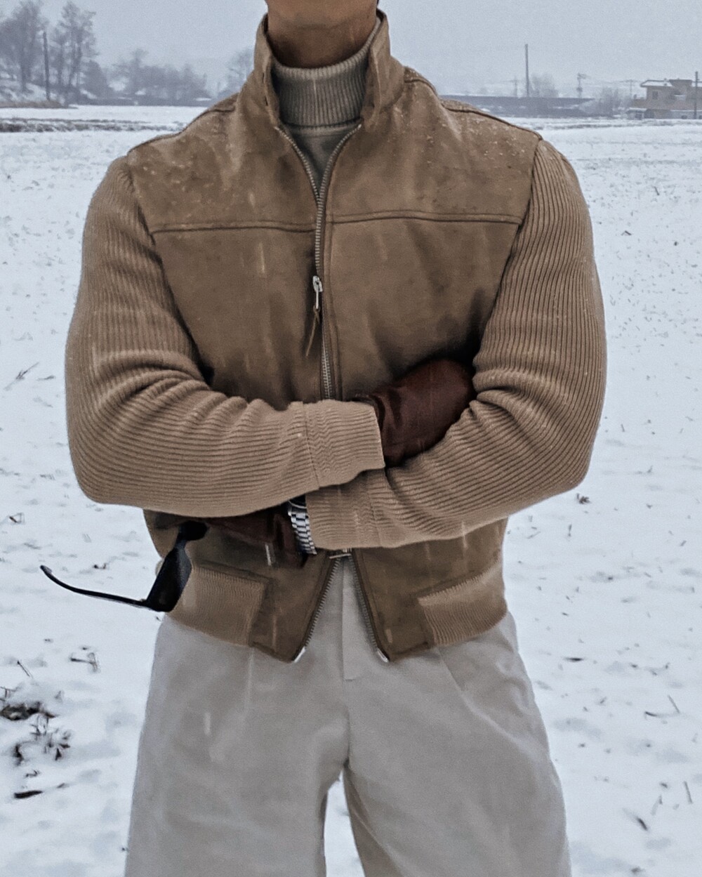 - 프론트 스웨이드 겉감, 소매/백 울 니트