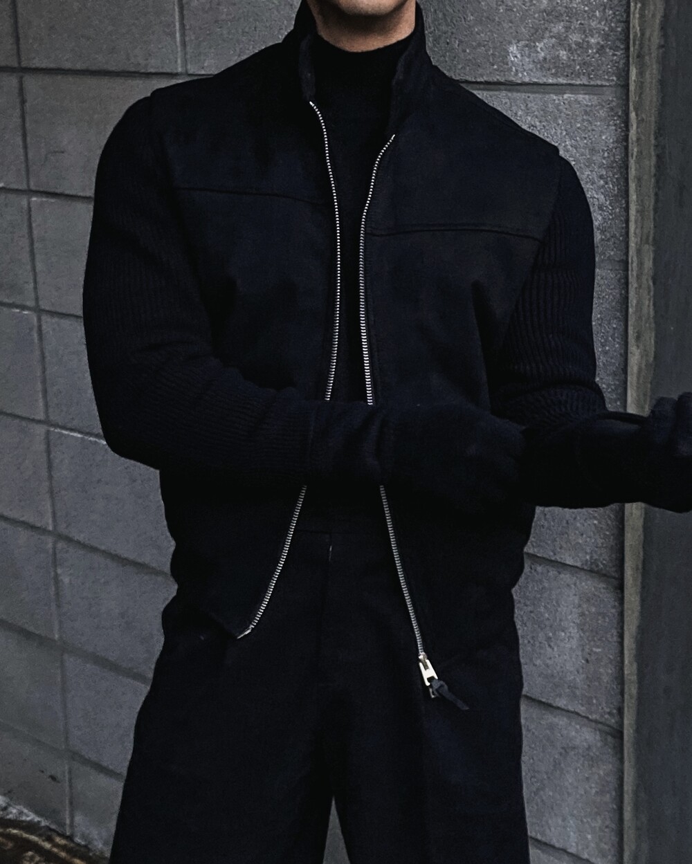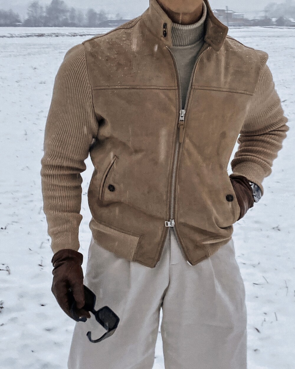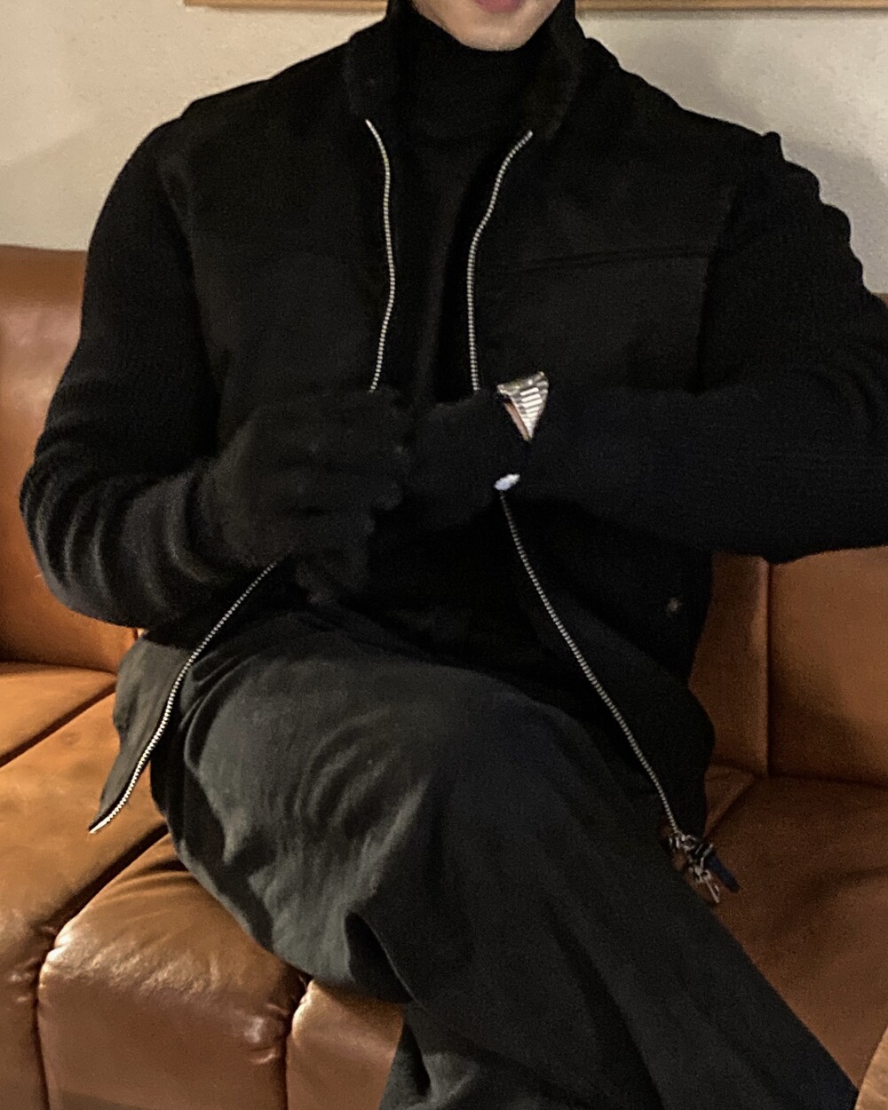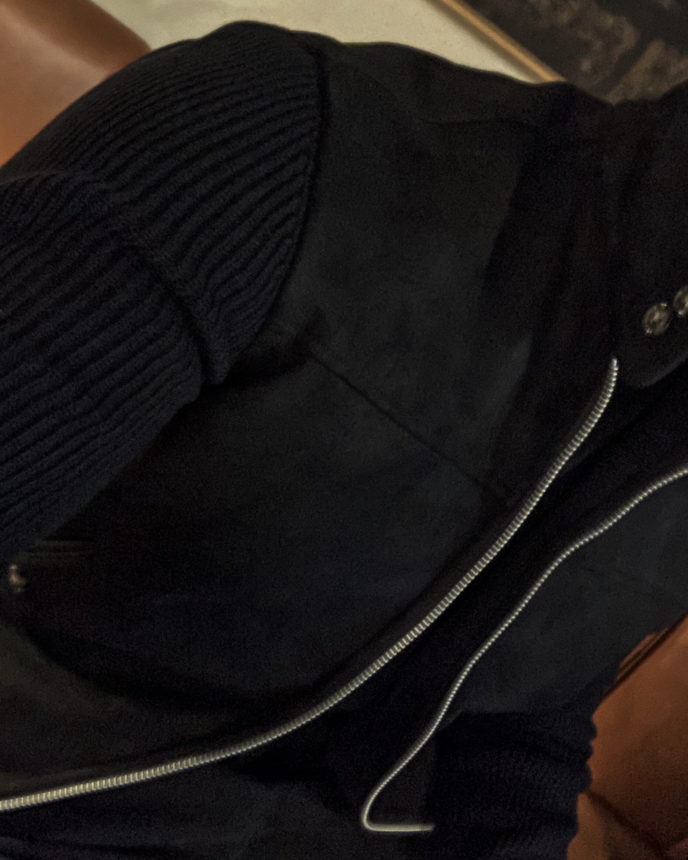 - 프론트 스웨이드 겉감, 소매/백 울 니트