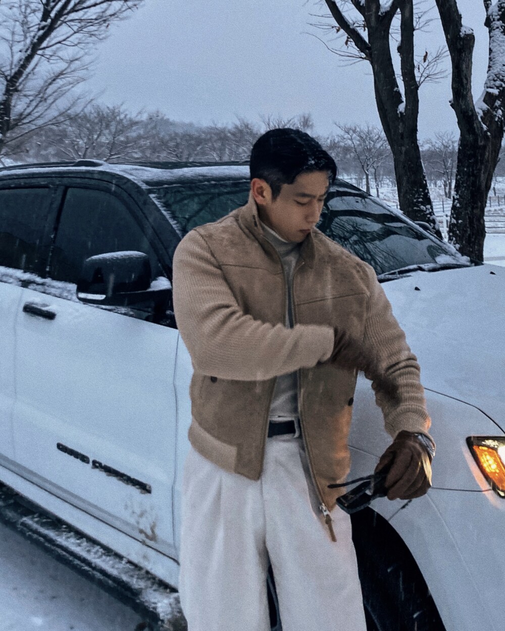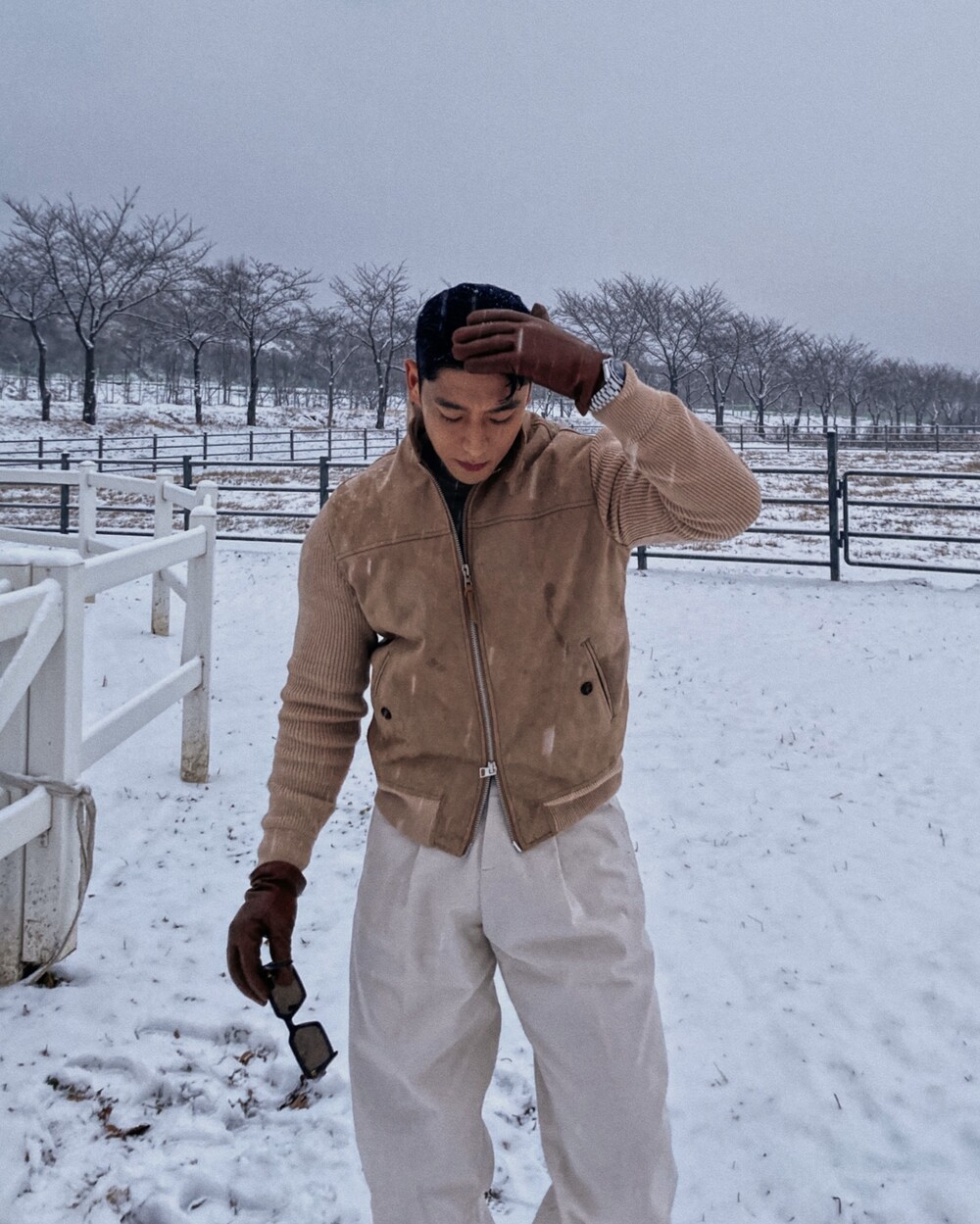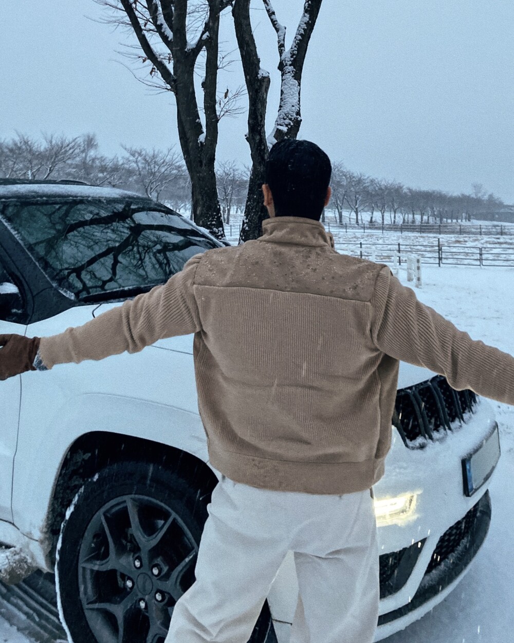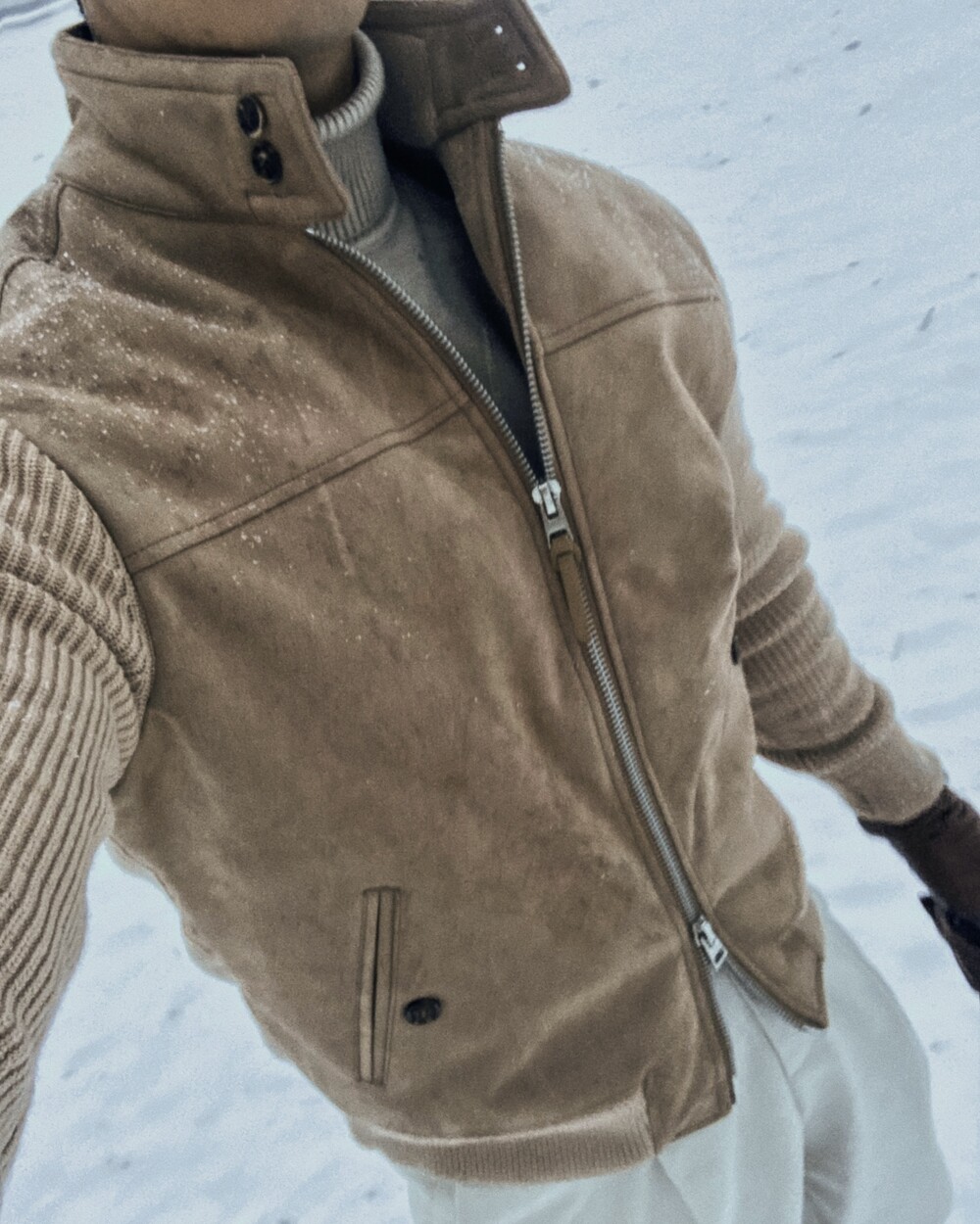 - 프론트 스웨이드 겉감, 소매/백 울 니트
