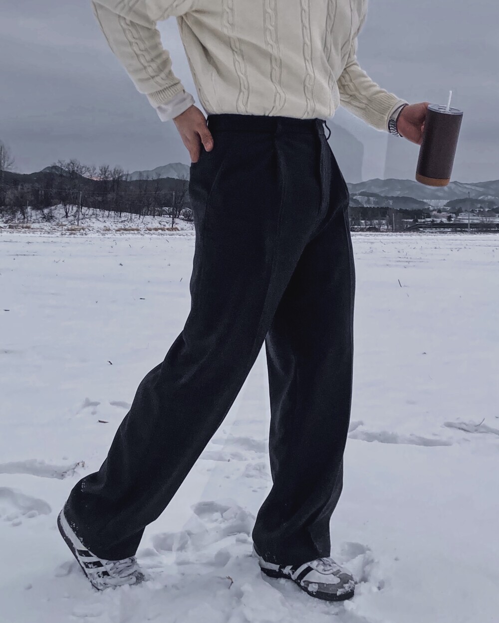 - 깔끔하게 떨어지는 세미 와이드 핏