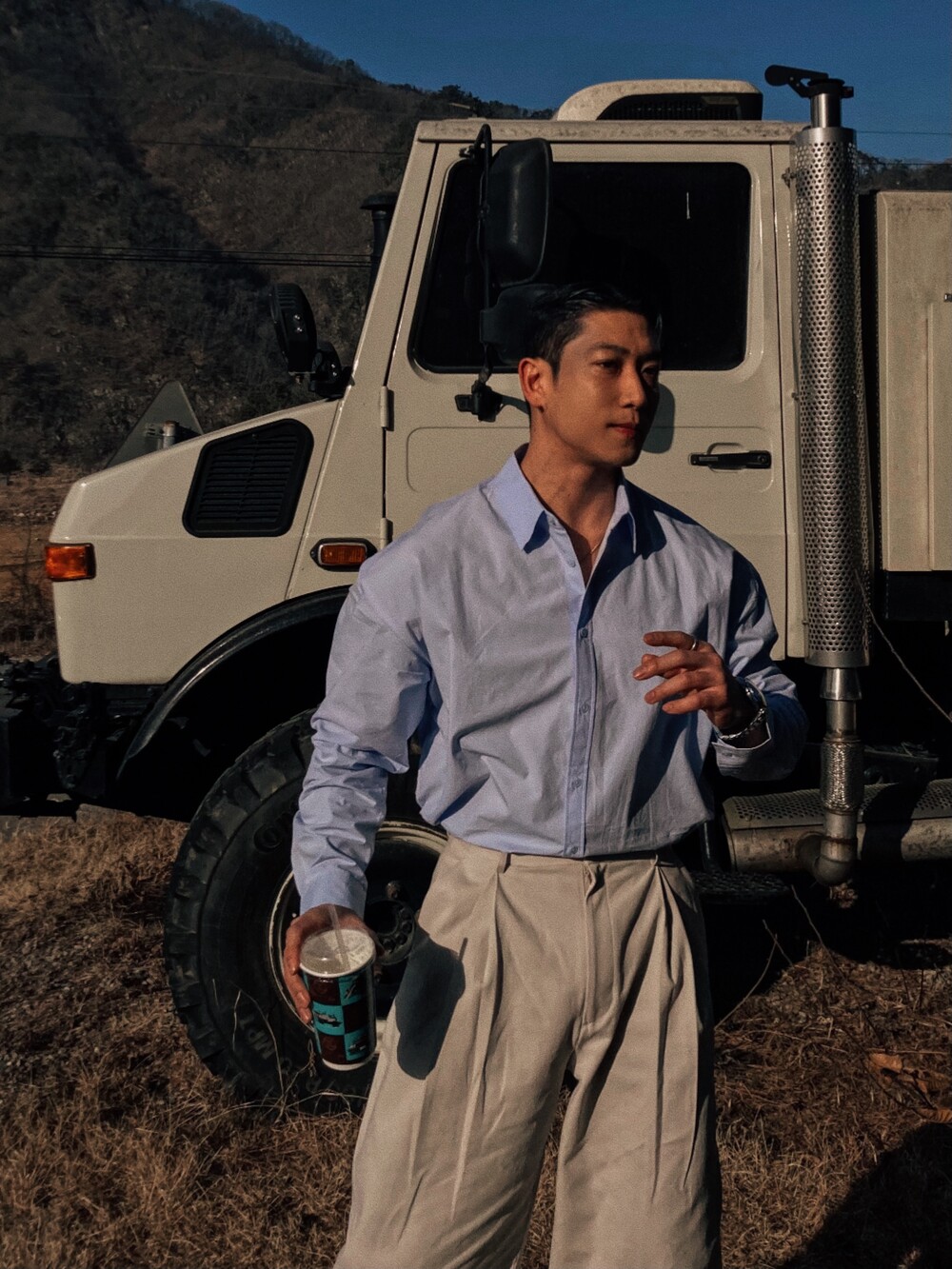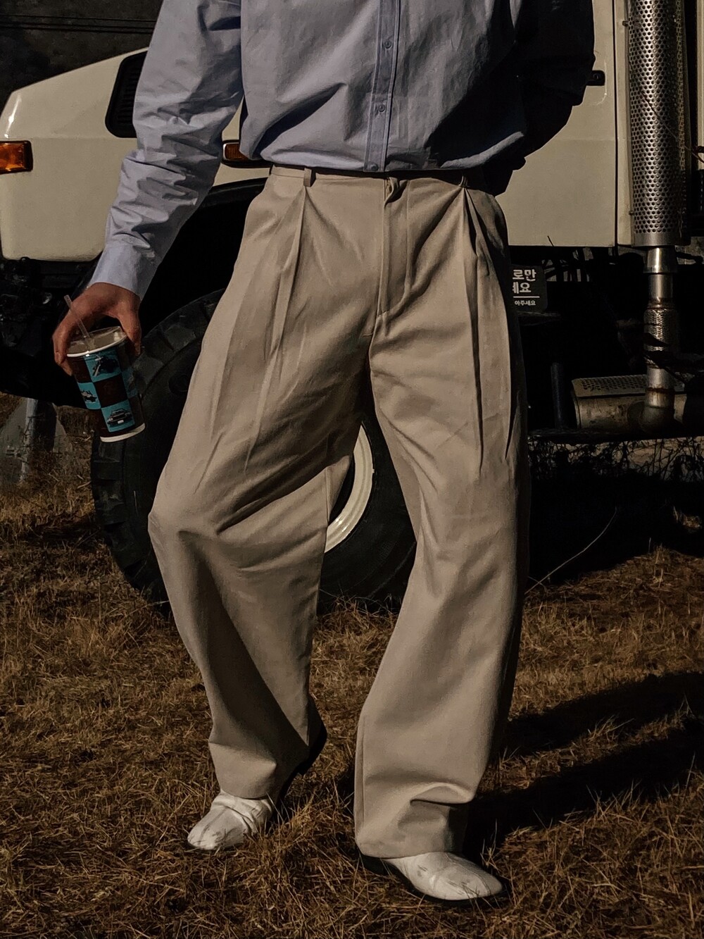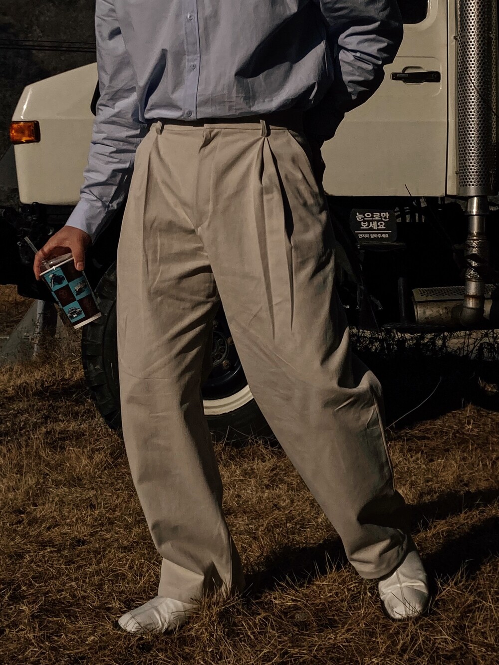 L _ 총장 107cm l 허리 43cm l 허벅지 37cm l 밑단 25cm