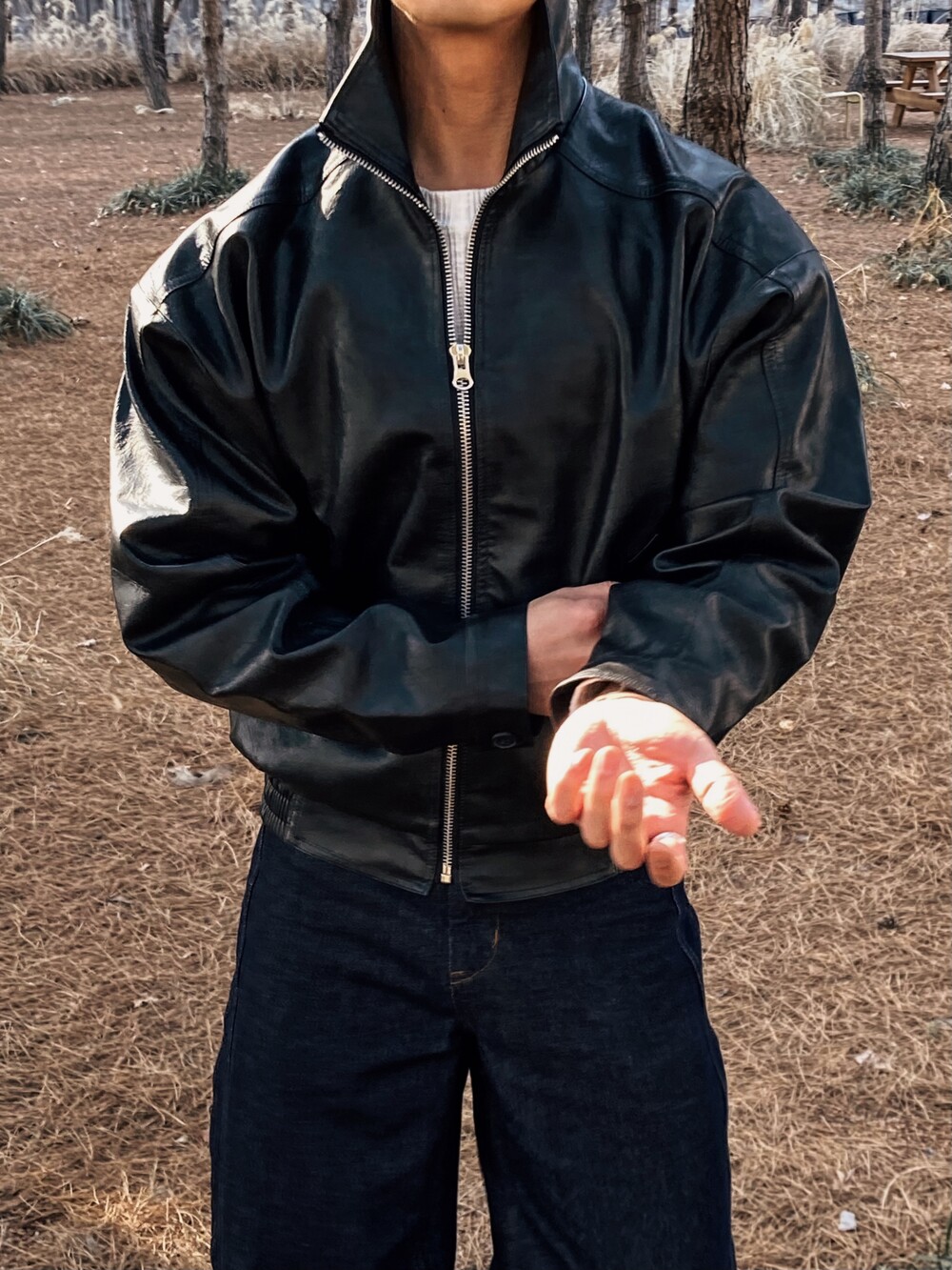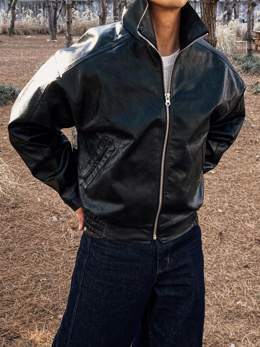 - 목 까지 올라오는 지퍼로 하이넥 연출 가능
