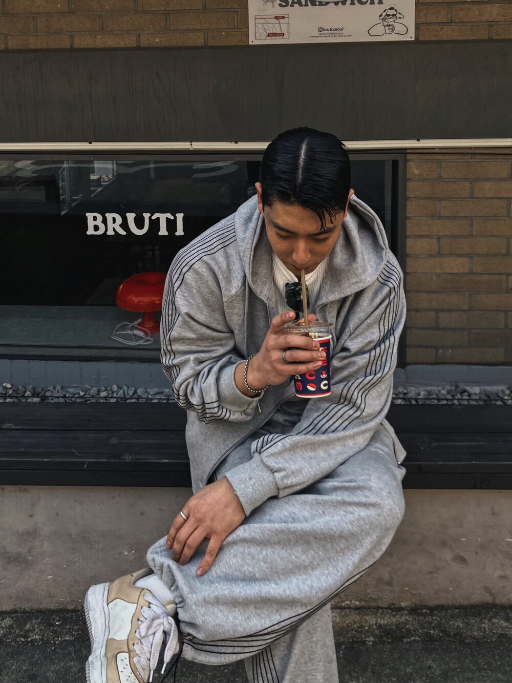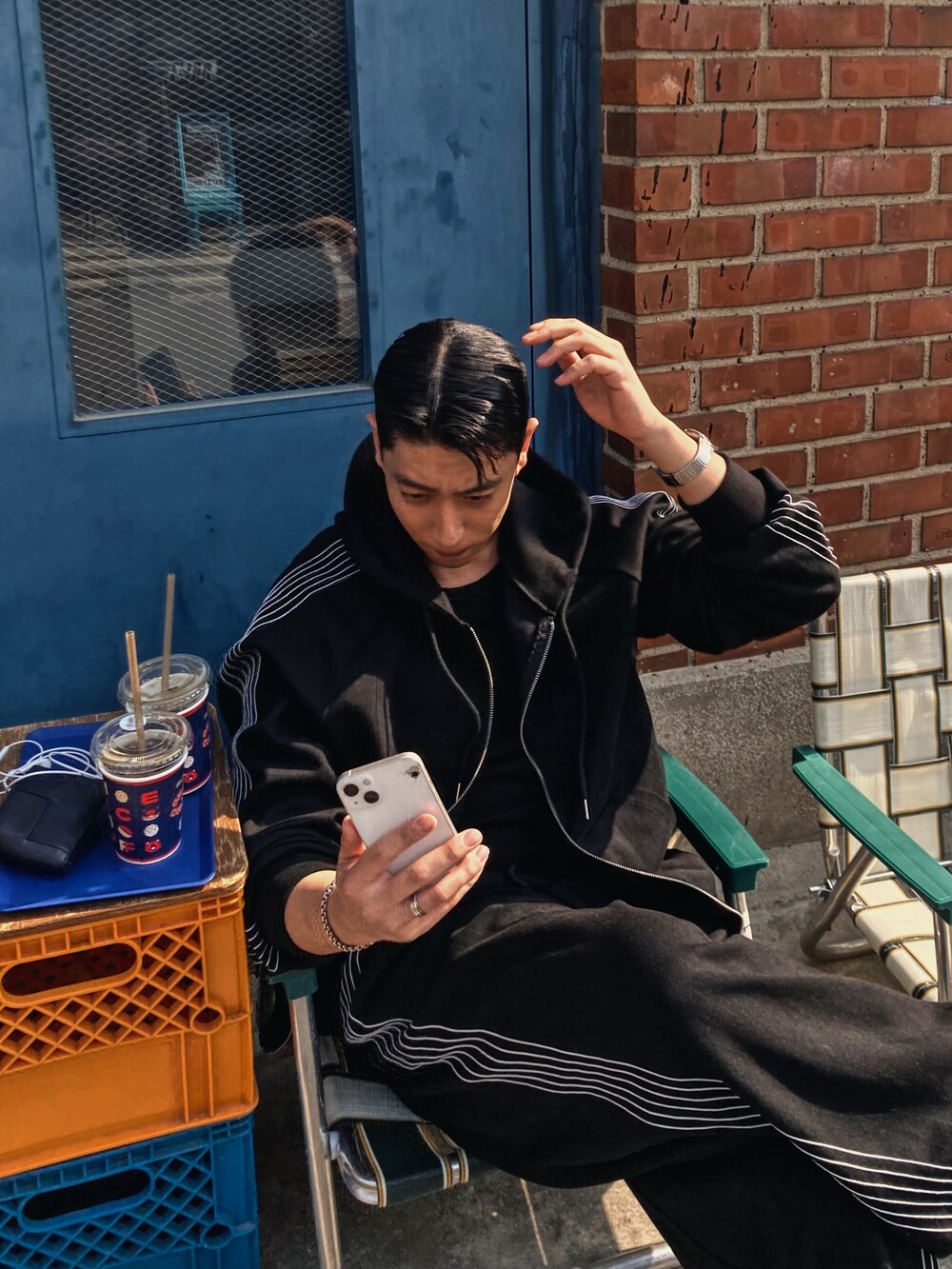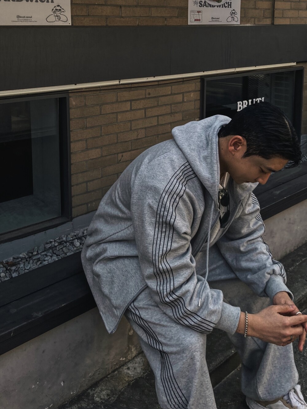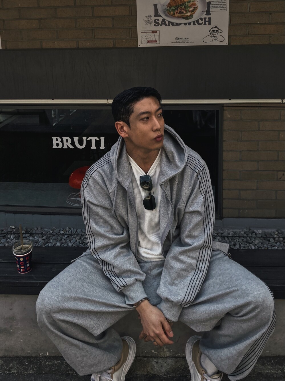 - Track sweat line hood zipup 과 셋업으로 착용 가능