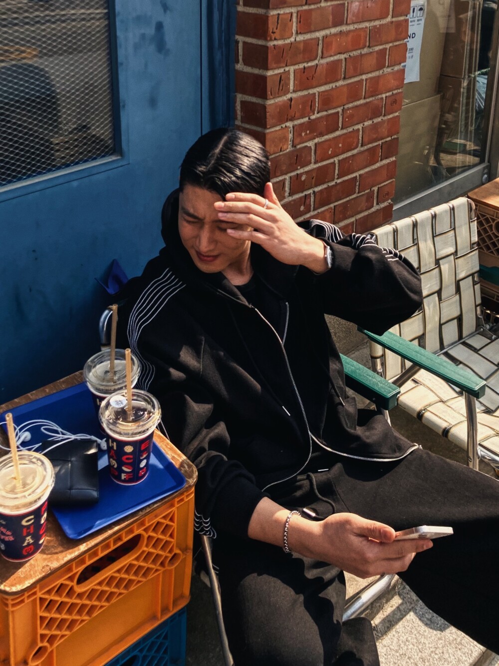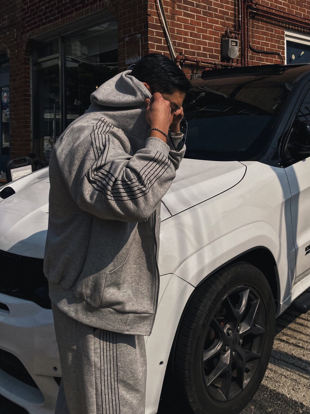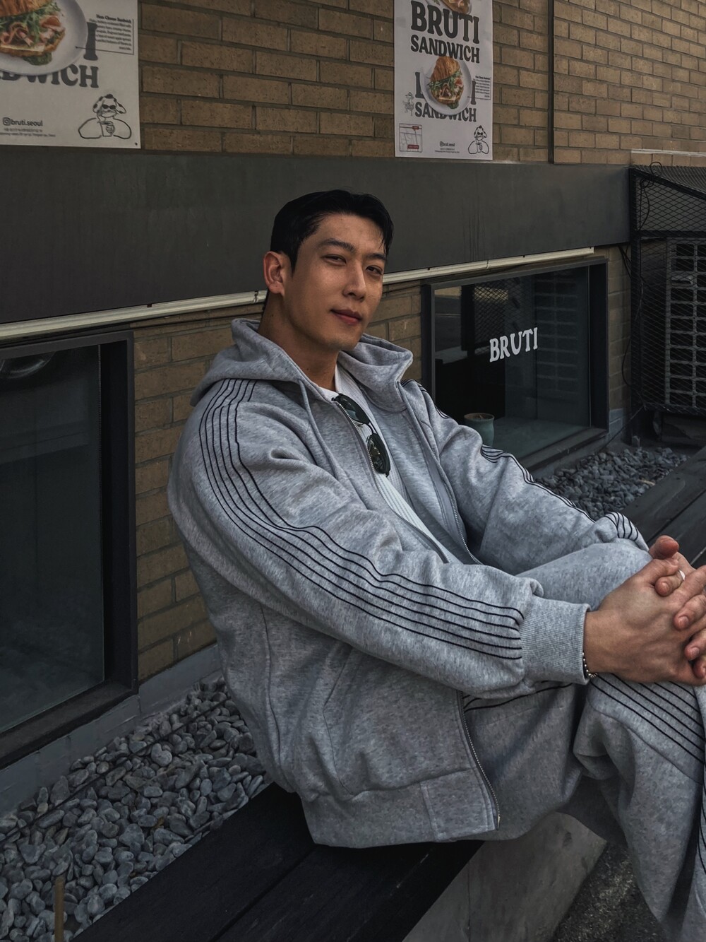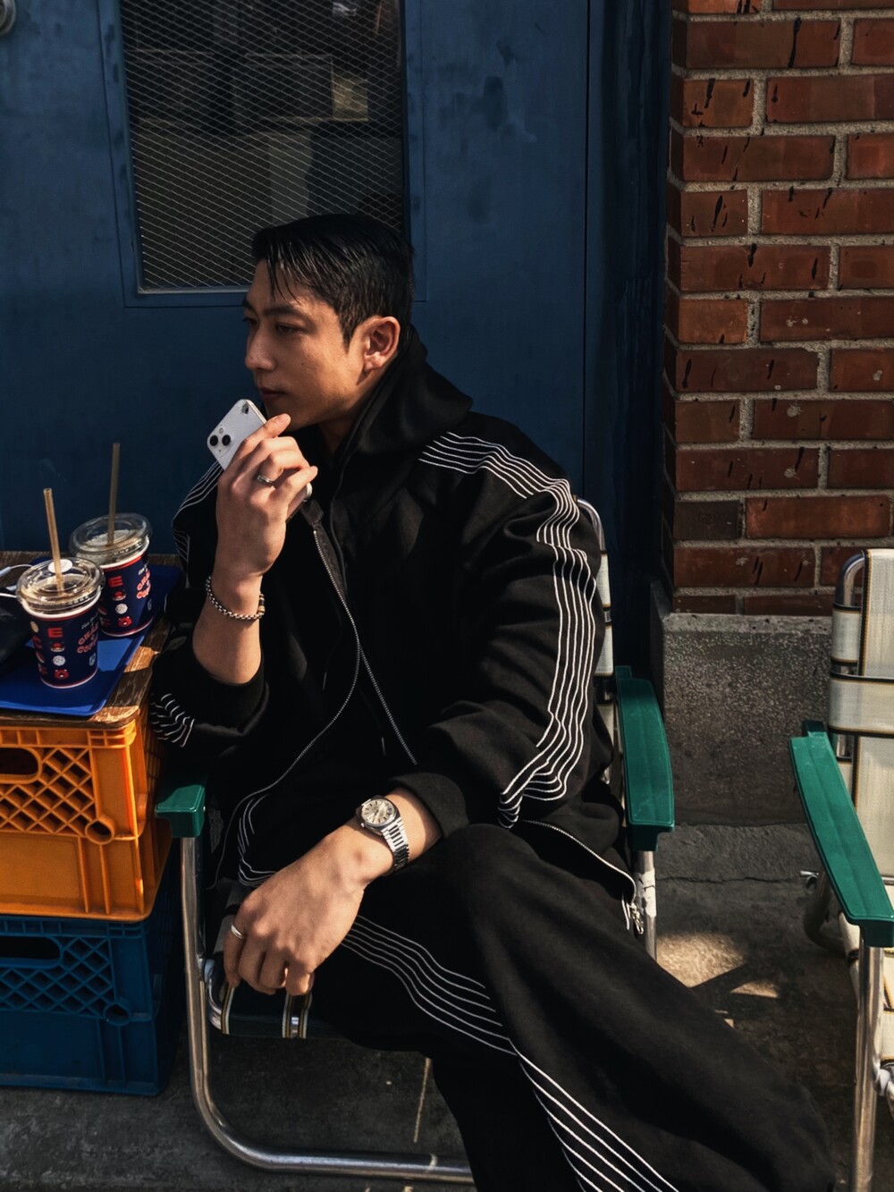 - Track sweat line hood zipup 과 셋업으로 착용 가능